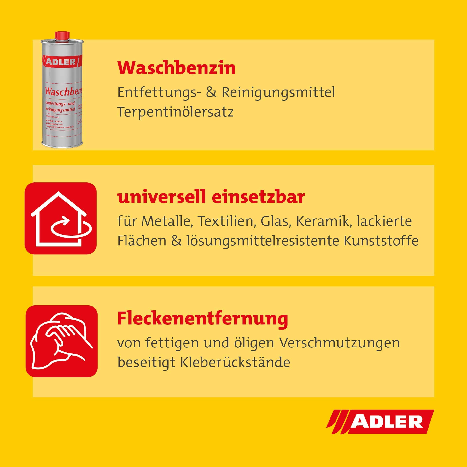 ADLER Waschbenzin - 500 ml - Reinigungsbenzin, Reinigungsmittel und Fleckenentferner, zur gezielten Reinigung von fettigen und öligen Verschmutzungen