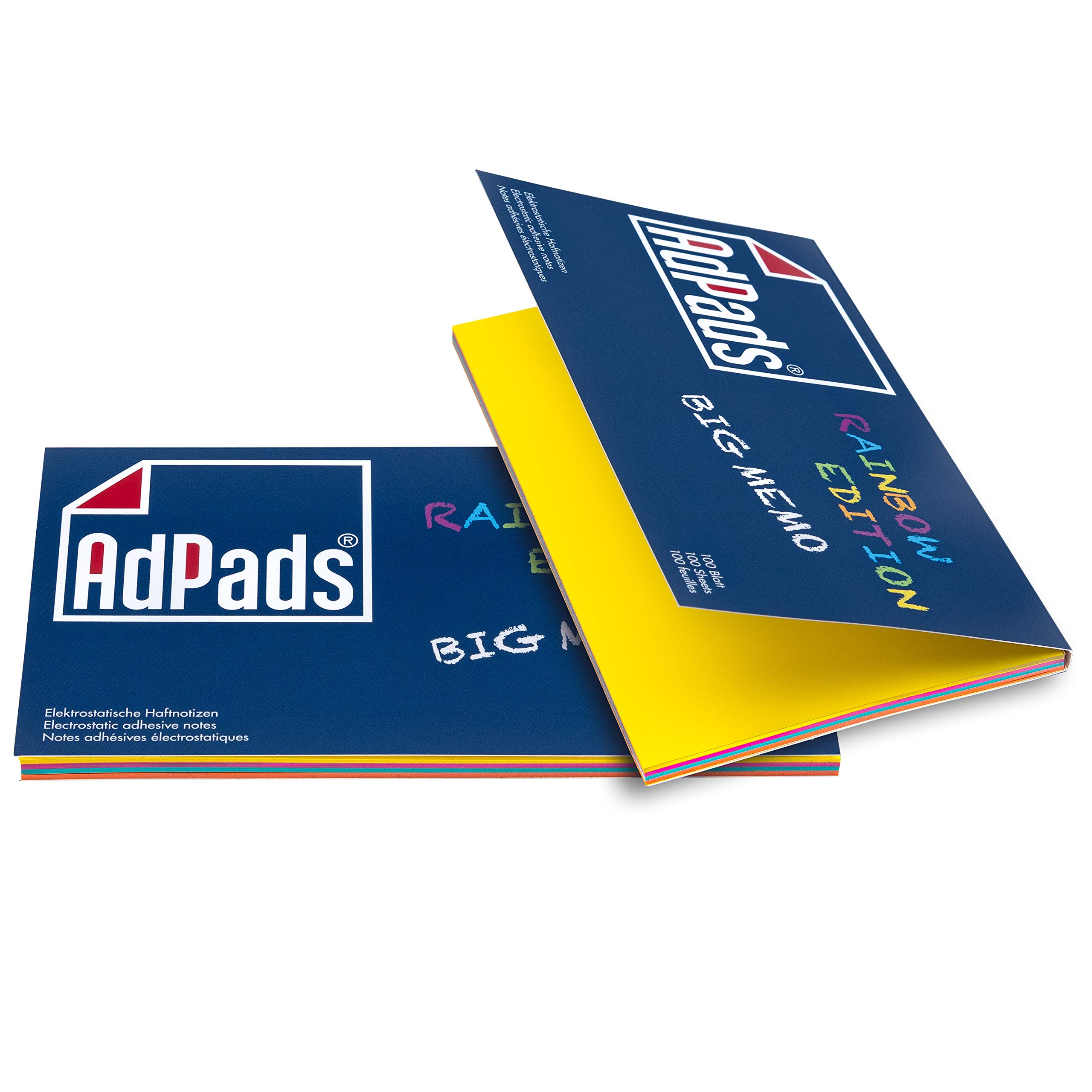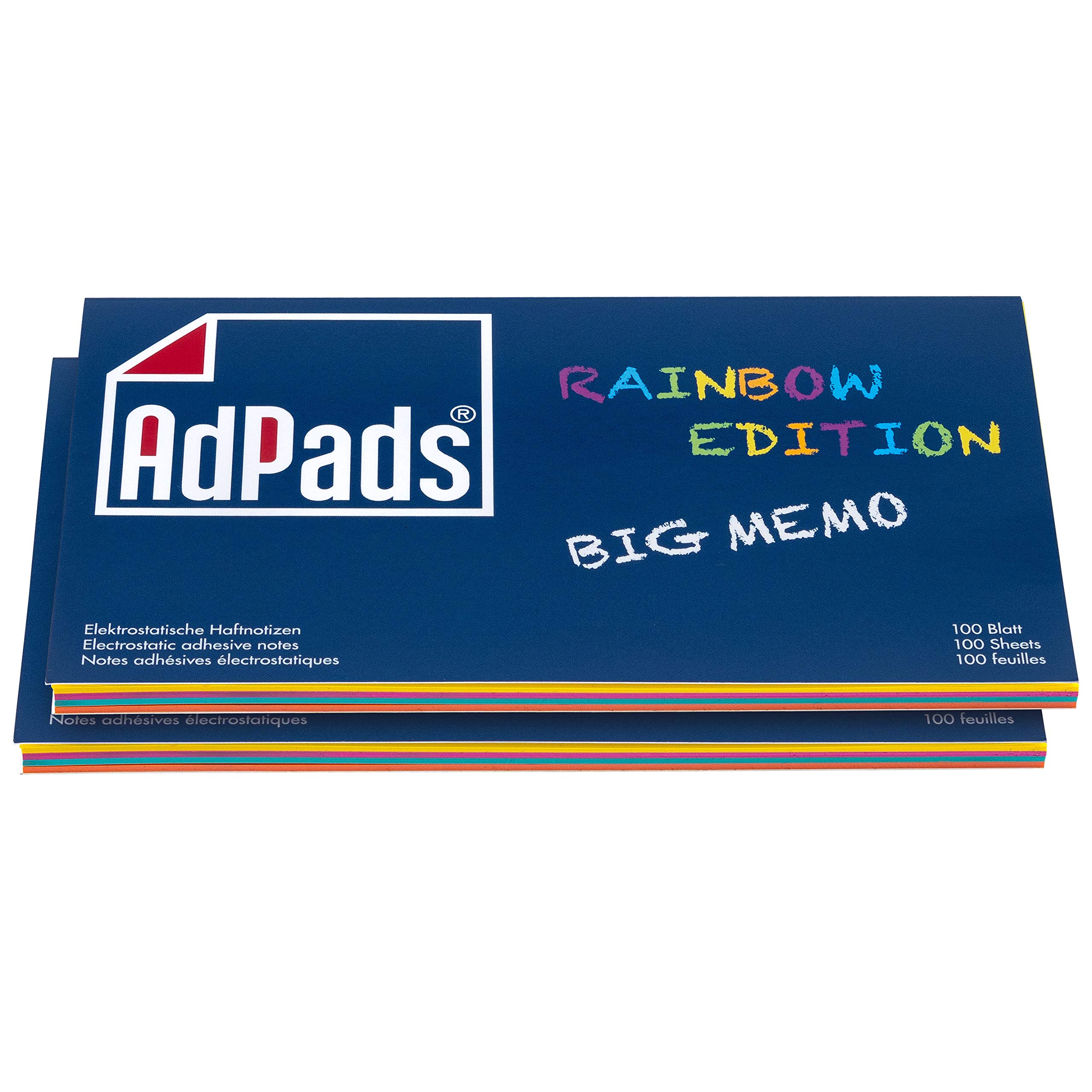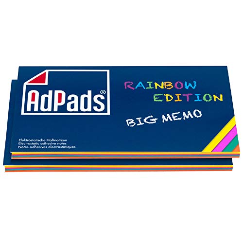 AdPads® elektrostatisch selbstklebende Haftnotiz-Moderationskarten, Rainbow Edition Big Memo | 170 x 100mm, 200 Blatt, Bunt | Mixed Static Sticky Notes