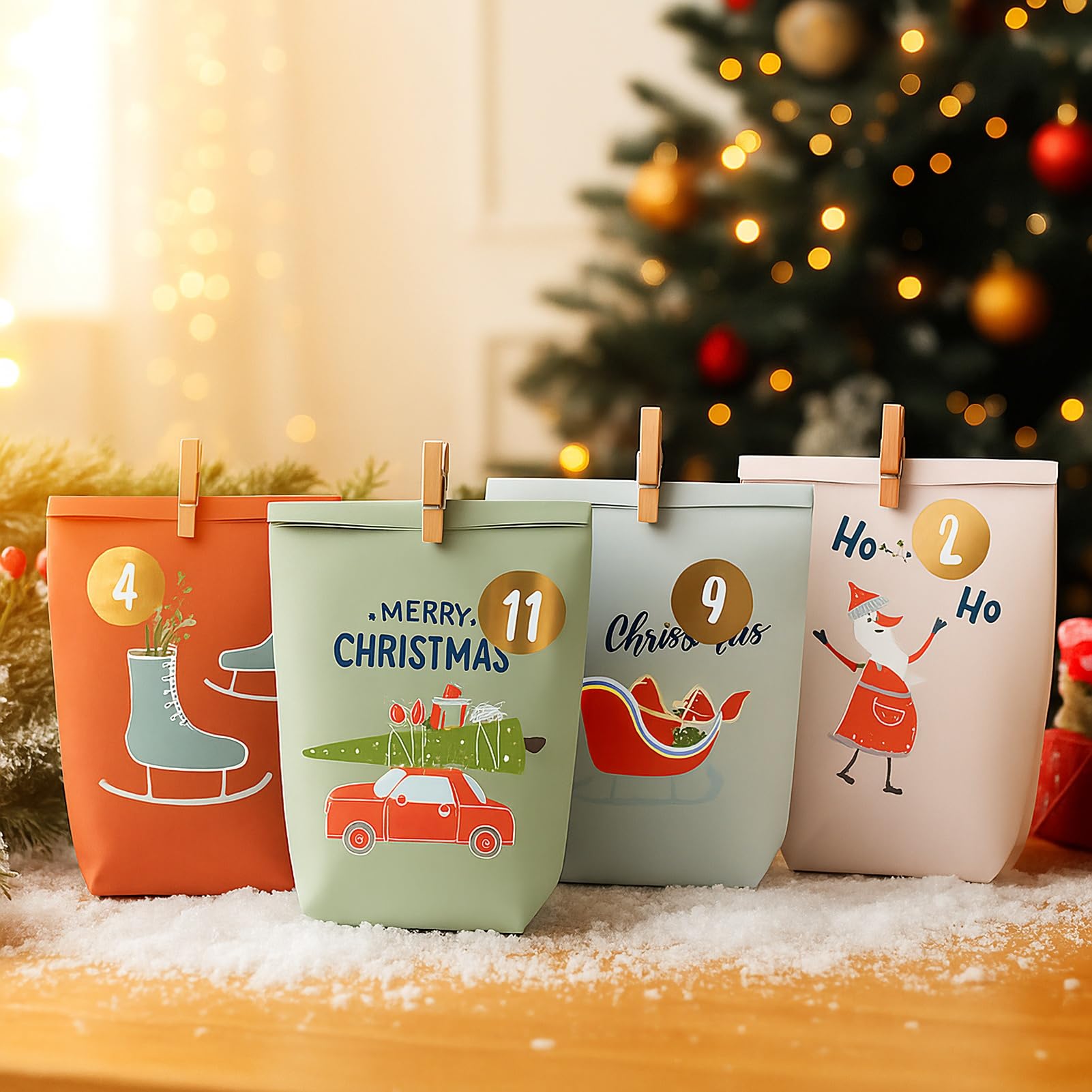 - Adventskalender tüten zum Befüllen: Xmas geschenk papiertüte sack mit Advents Aufkleber zahlen passt perfekt zur Countdown-Funktion erinnerungsfunktion. Unser einzigartiger Bedruckte Advent calendar tüte ist die perfekte Überraschungsidee und ein echtes Adventserlebnis. Mit denen Sie Ihrem Liebling viel Freude im heimischen Kinderzimmer bereiten können. Die Erinnerung an den Countdown von Weihnachten in der Kindheit ist eine Tradition, die eine Person ein Leben lang wertschätzen wird.