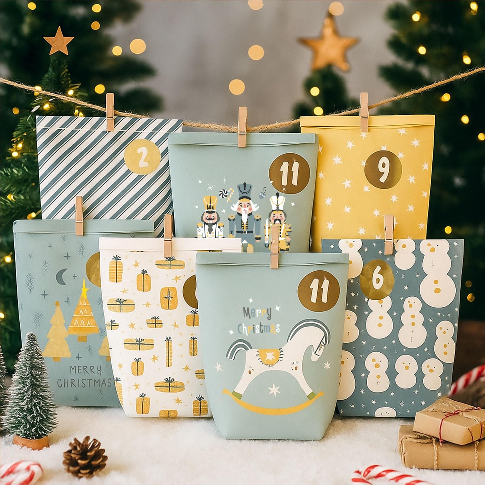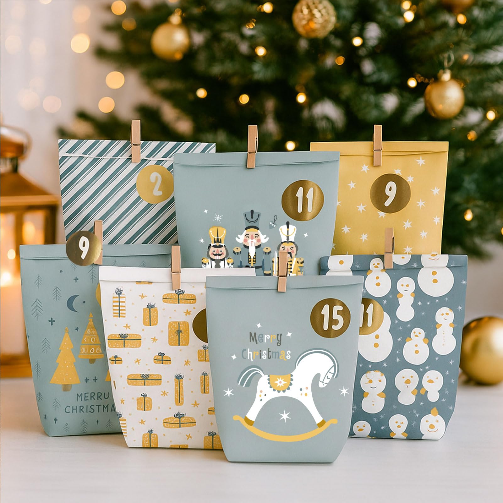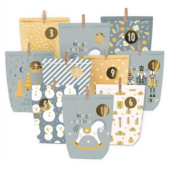 Adventskalender zum Befüllen, Weihnachtskalender zum selber befüllen, 24 Bedruckt Adventstüten zum selbst füllen, Geschenk Papiertüten mit Zahlen Aufkleber zum Selbstbefüllen (Blau)