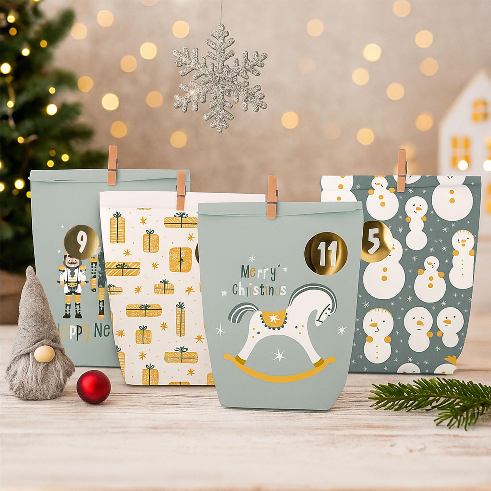 Adventskalender zum Befüllen - 24 Papier Adventstüten zum Basteln für Weihnachten - Papier Weihnachtstüten mit Zahlenaufkleber