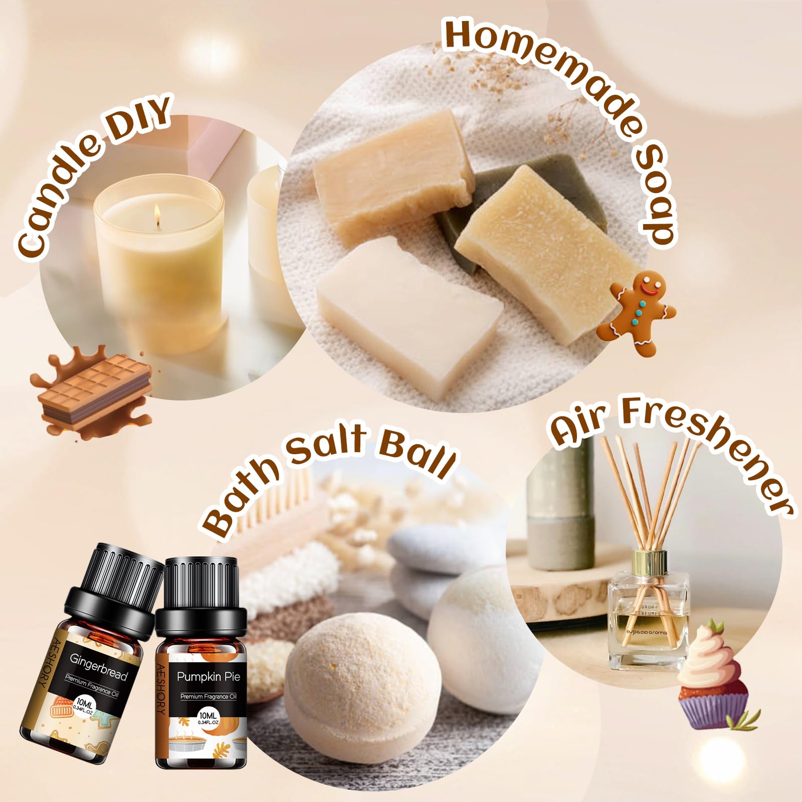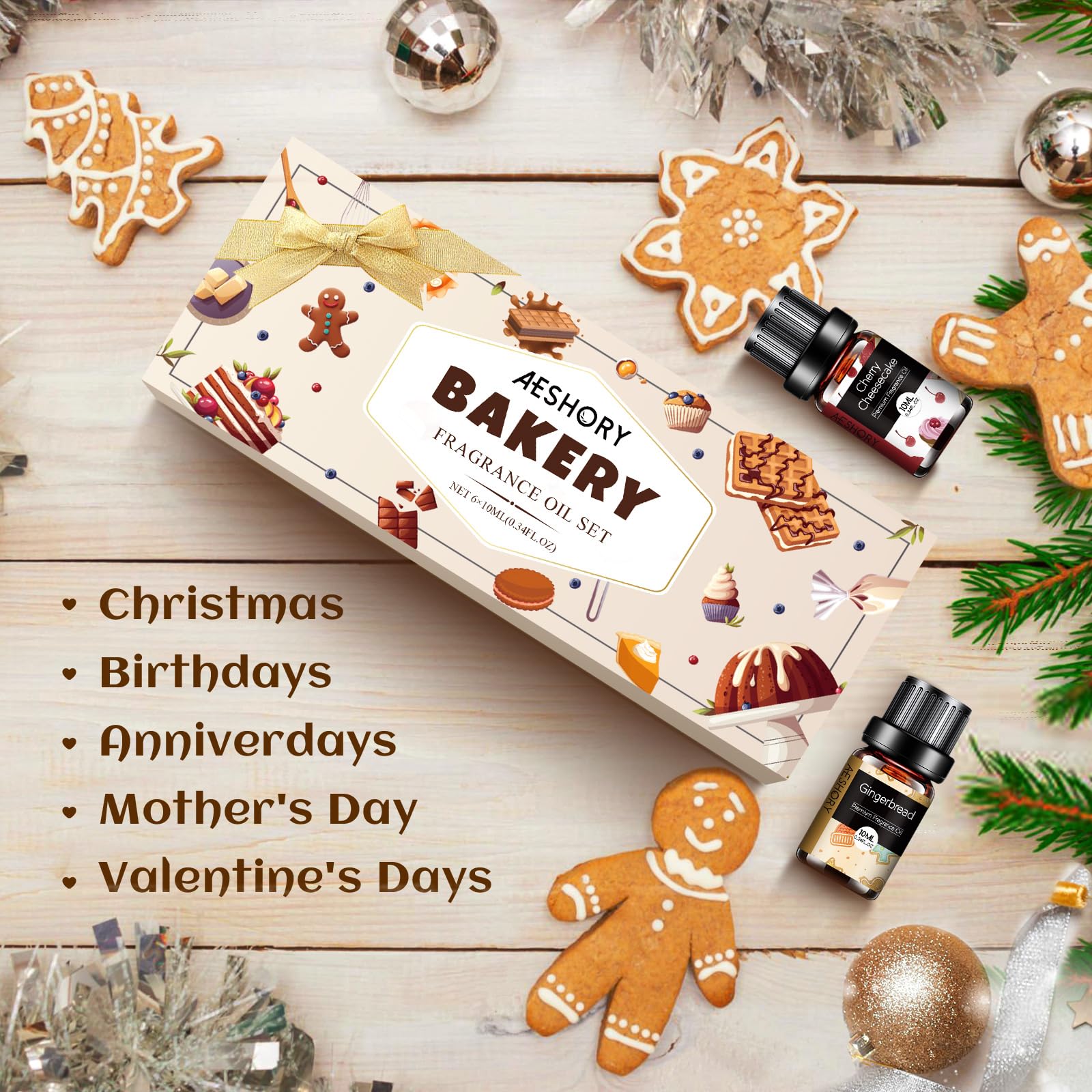 • ????【6x10ML Ätherischen Öle Backen】— Aeshory ätherisches Öl Set umfasst Lebkuchen, Kürbiskuchen, Kürbis-Pekannuss-Waffeln, Schokoladenkeks, Kirsch-Käsekuchen, Kaffeekuchen. Das süsse Aroma gibt Ihnen das Gefühl, in einer Bäckerei zu sein, und gibt Ihnen gute Laune für den Tag.
