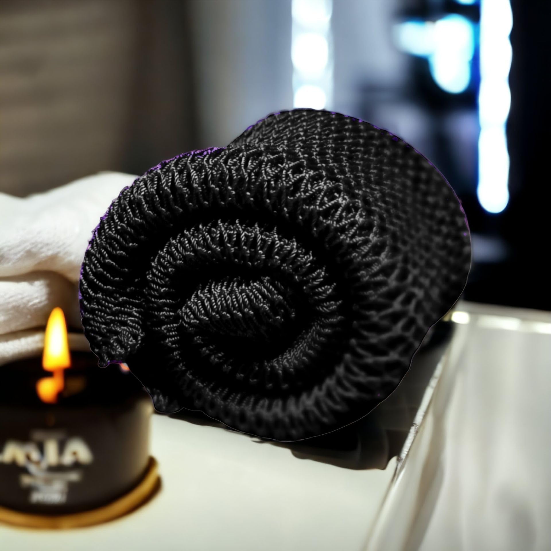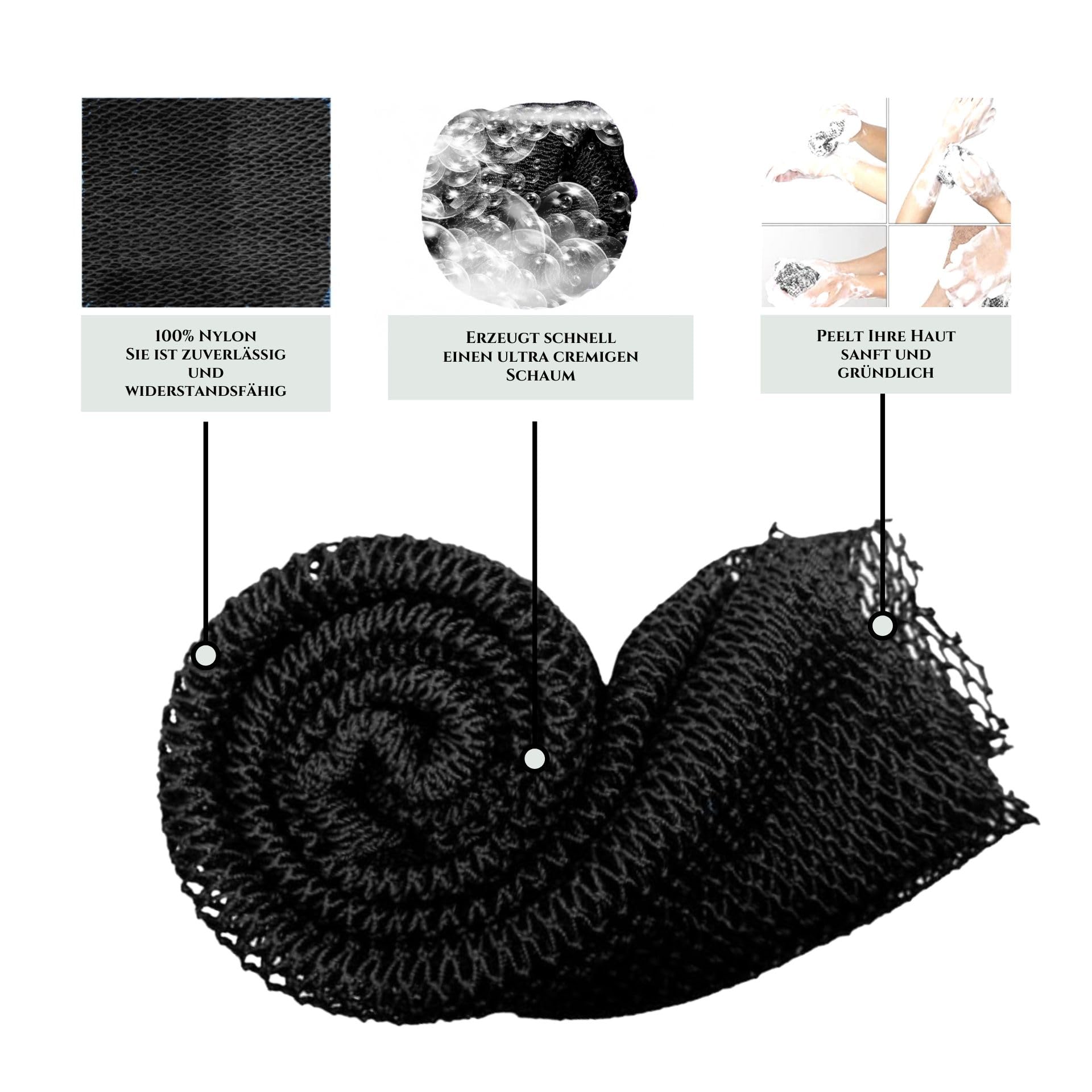 Afrikanischer Netzschwamm XL – 80 cm, Djampe, Badeschwamm, Peeling-Handschuh, Für Damen, Herren & Kinder, Schwarzes Duschnetz, Körperpeeling