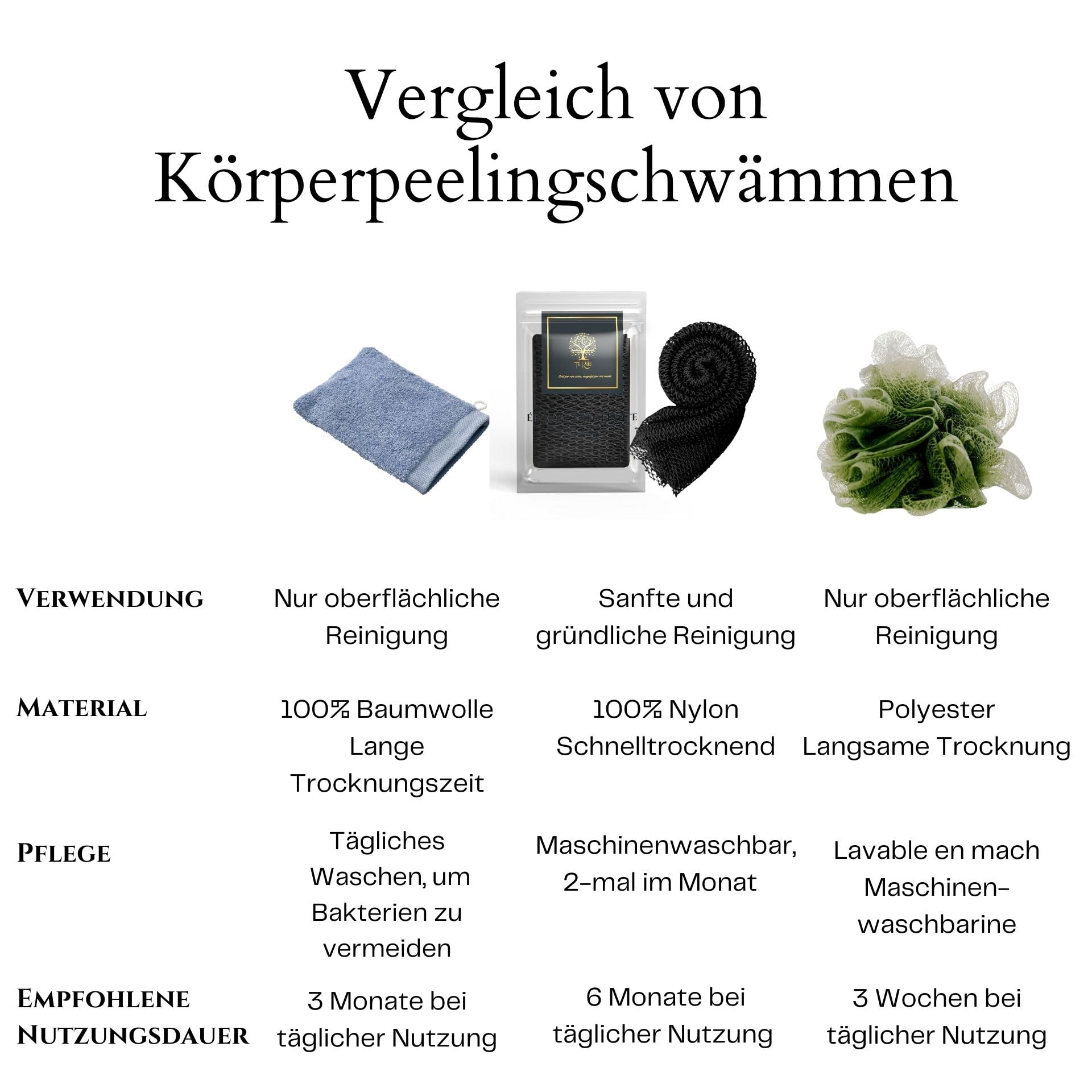 Für alle Hauttypen geeignet, ausser für Babys: Unser Peeling-Netz eignet sich für die ganze Familie – Männer, Frauen und Kinder können es täglich verwenden.