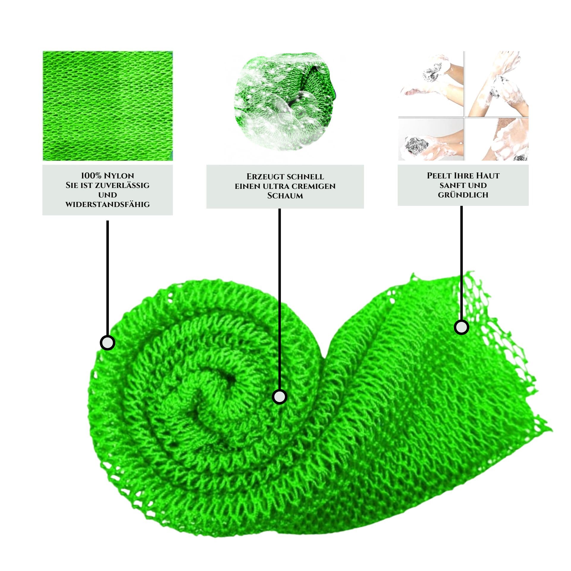 Sarhaana Djampe Afrikanisches Duschnetz – Badeschwamm, Peeling-Handschuh, XL, Grün, Für Damen, Herren & Kinder