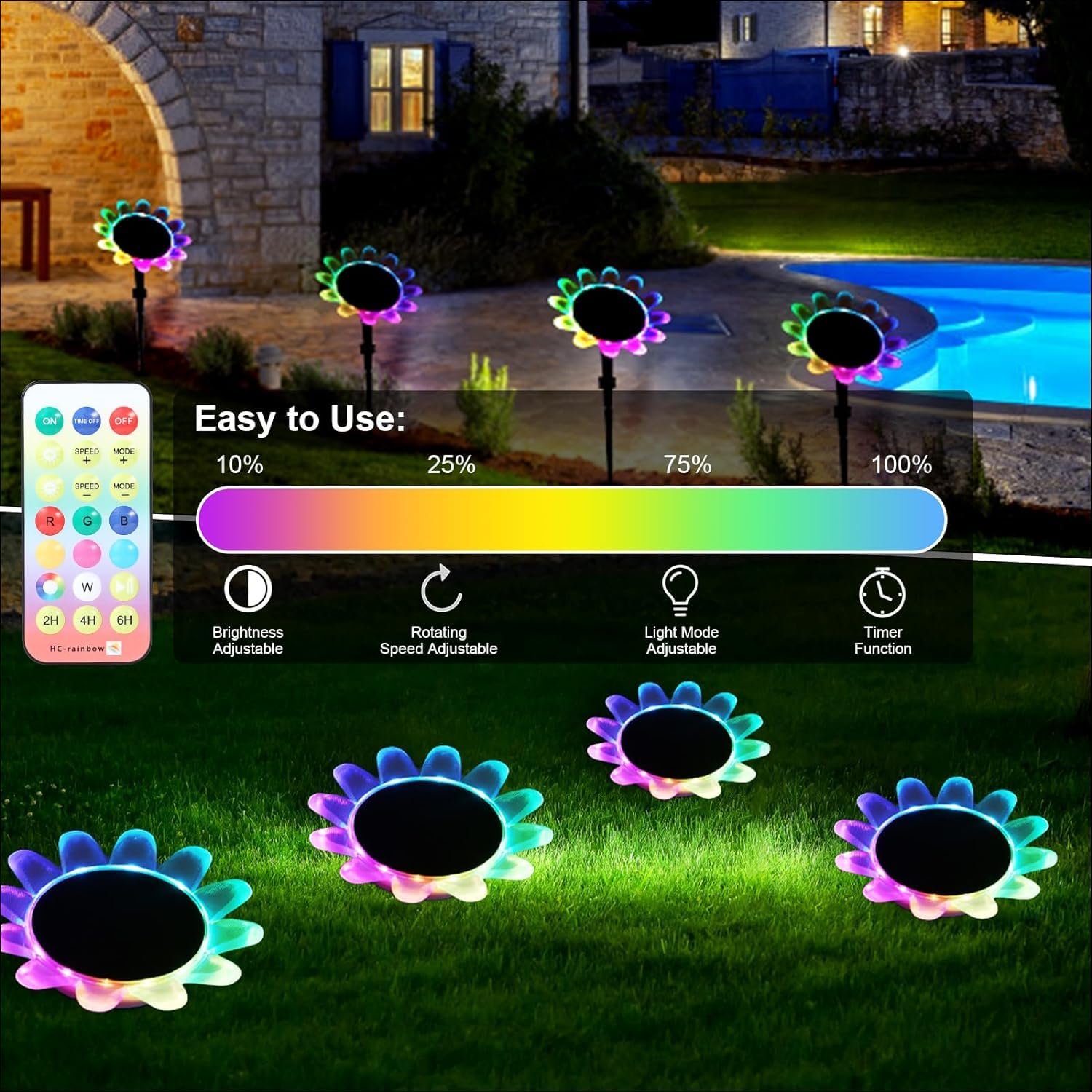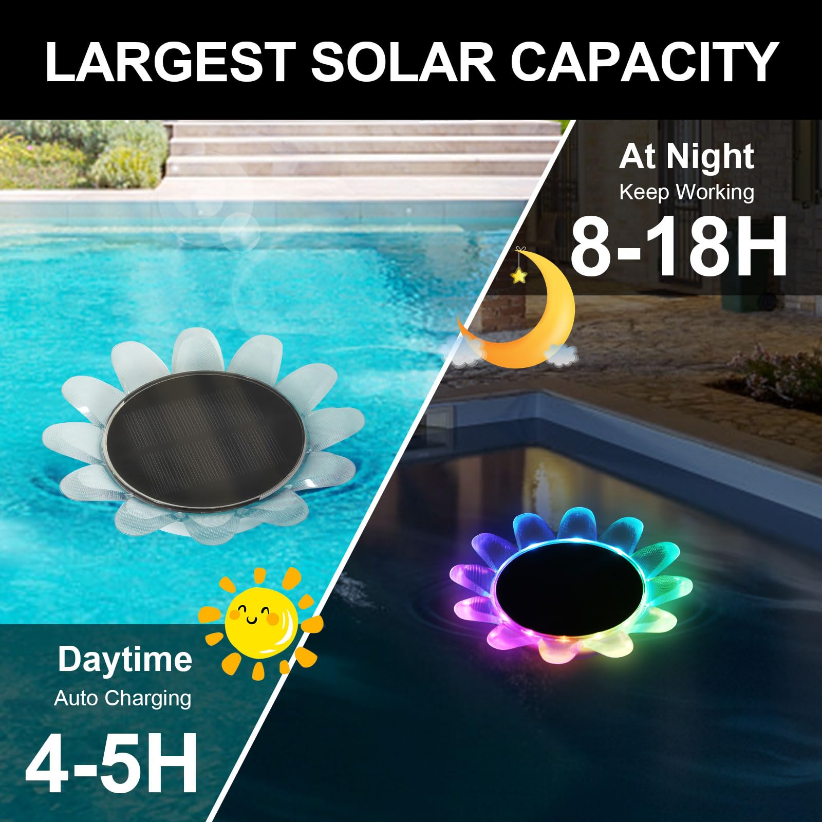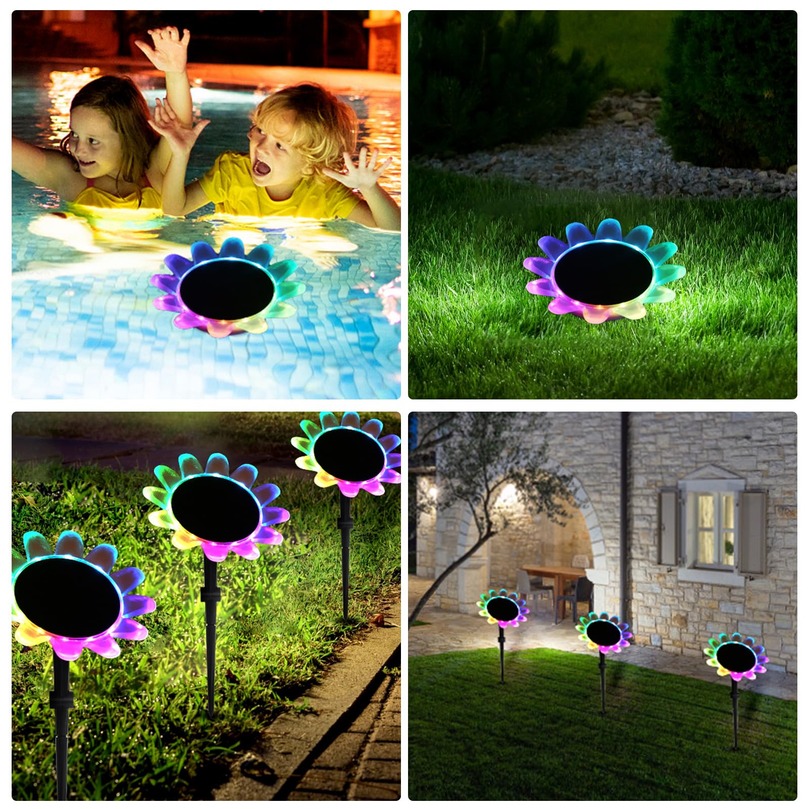 Die Lichter können mit der Fernbedienung umgeschaltet und nacheinander angezeigt werden: Rot, Orange, Gelb, Grün, Blau, Lila, Weiss, Farbverlaufslichter, sehr gut geeignet für Weihnachten, Schwimmpartys.