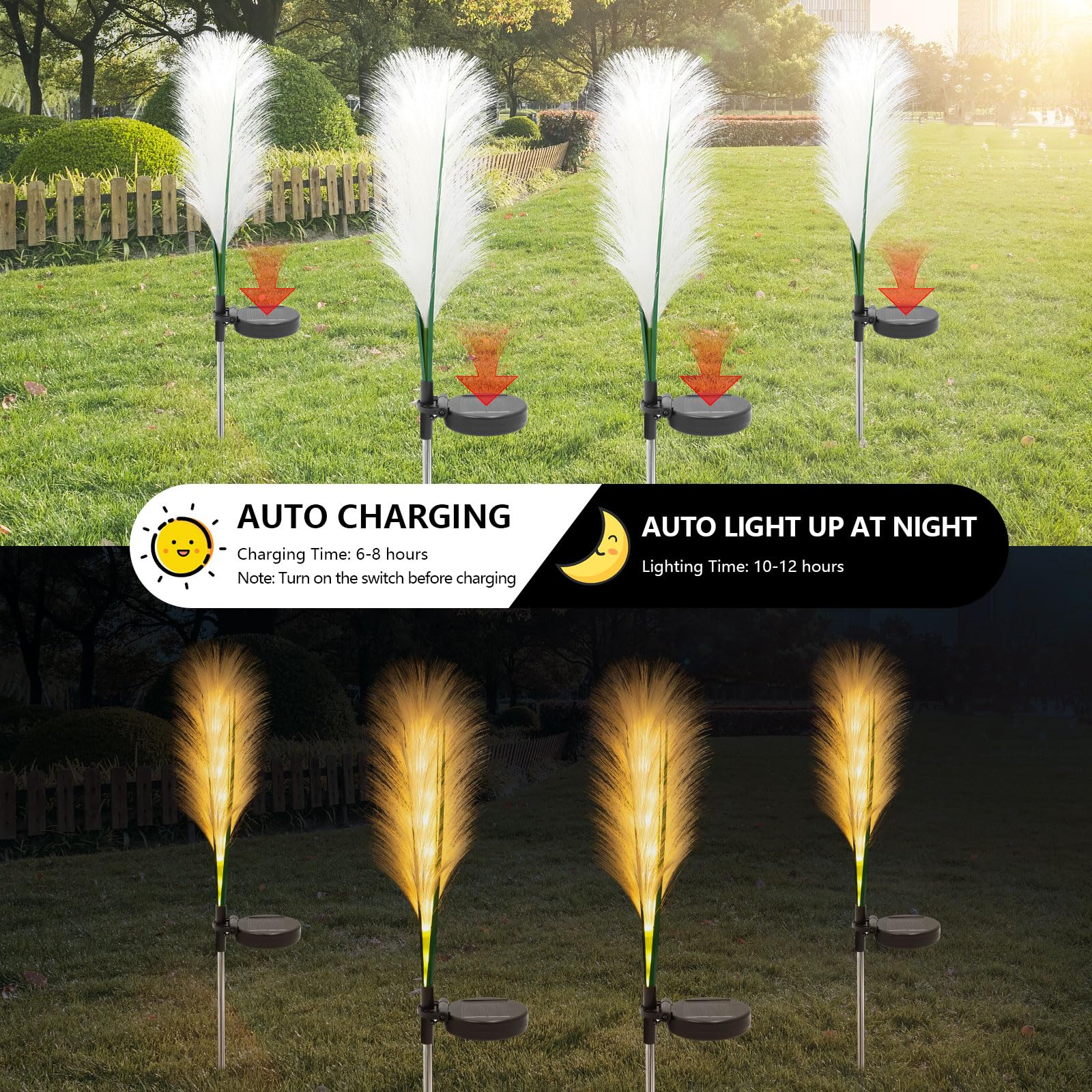 AGOTD Solarleuchte für den Aussenbereich, Garten, Schilf, 2 Stück, Solarleuchten für den Aussenbereich, mit Licht, wasserdichte Gartendekoration, für Allee, Terrasse, Terrasse, Gehweg, Balkon, Dec