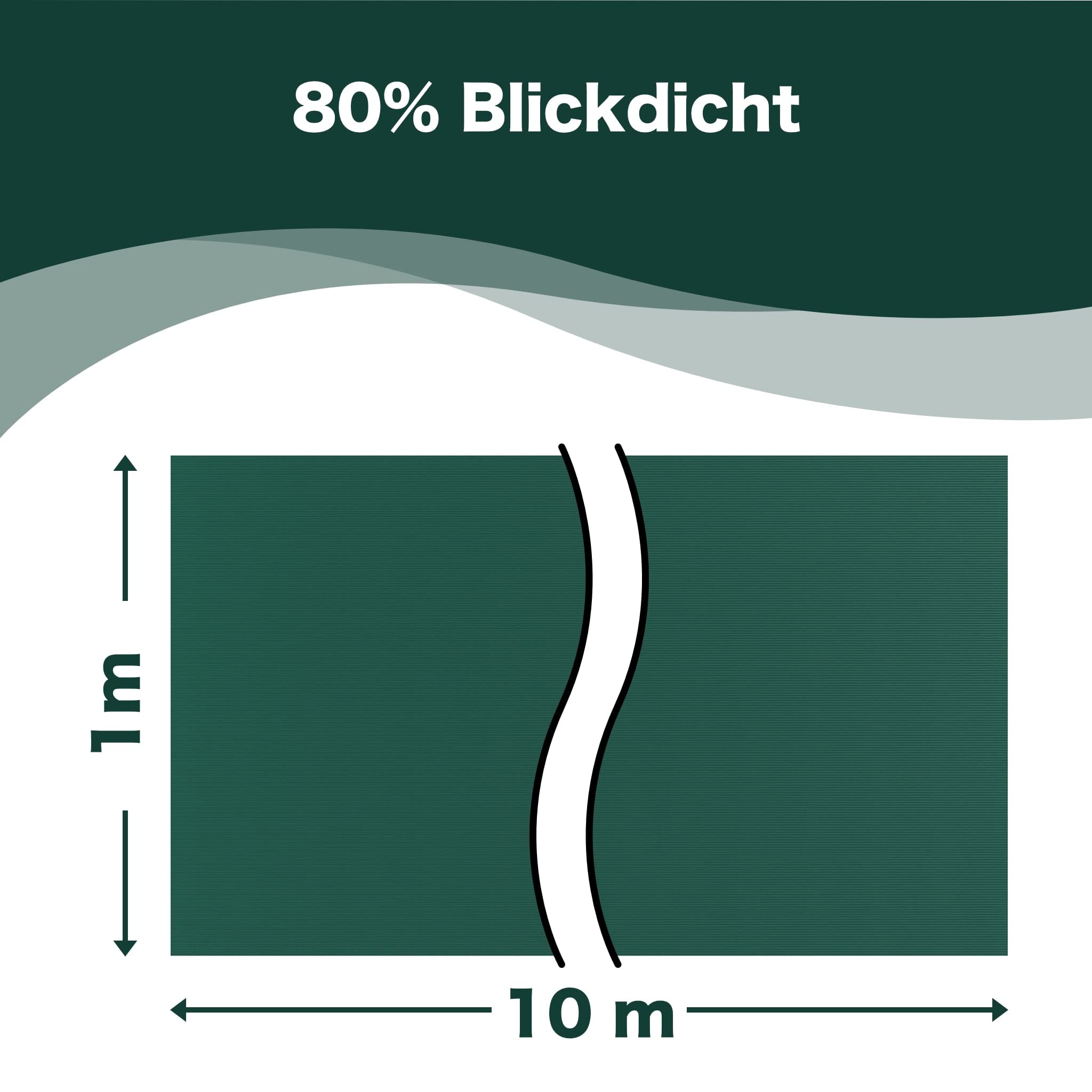 Schattierwert: ca. 80% Eigenschaften: 100% PE, wetterfest, reissfest, UV-stabilisiert, verrottungsfest, wasser- und säurefest, farbecht Konfektion: gewirkter Saum mit Knopflöchern alle 5 cm am Rand der Längsseiten Anwendungen: Schattiermatte, Sichtschutz, Windschutz, Staubschutz, Balkonblende Farbe: dunkelgrün Gewicht:150 g/m²