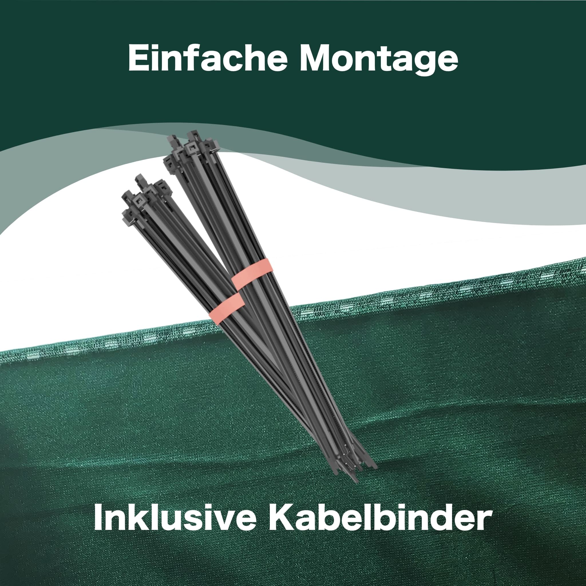 Schattierwert: ca. 80% Eigenschaften: 100% PE, wetterfest, reissfest, UV-stabilisiert, verrottungsfest, wasser- und säurefest, farbecht Konfektion: gewirkter Saum mit Knopflöchern alle 5 cm am Rand der Längsseiten Anwendungen: Schattiermatte, Sichtschutz, Windschutz, Staubschutz, Balkonblende Farbe: dunkelgrün Gewicht:150 g/m²