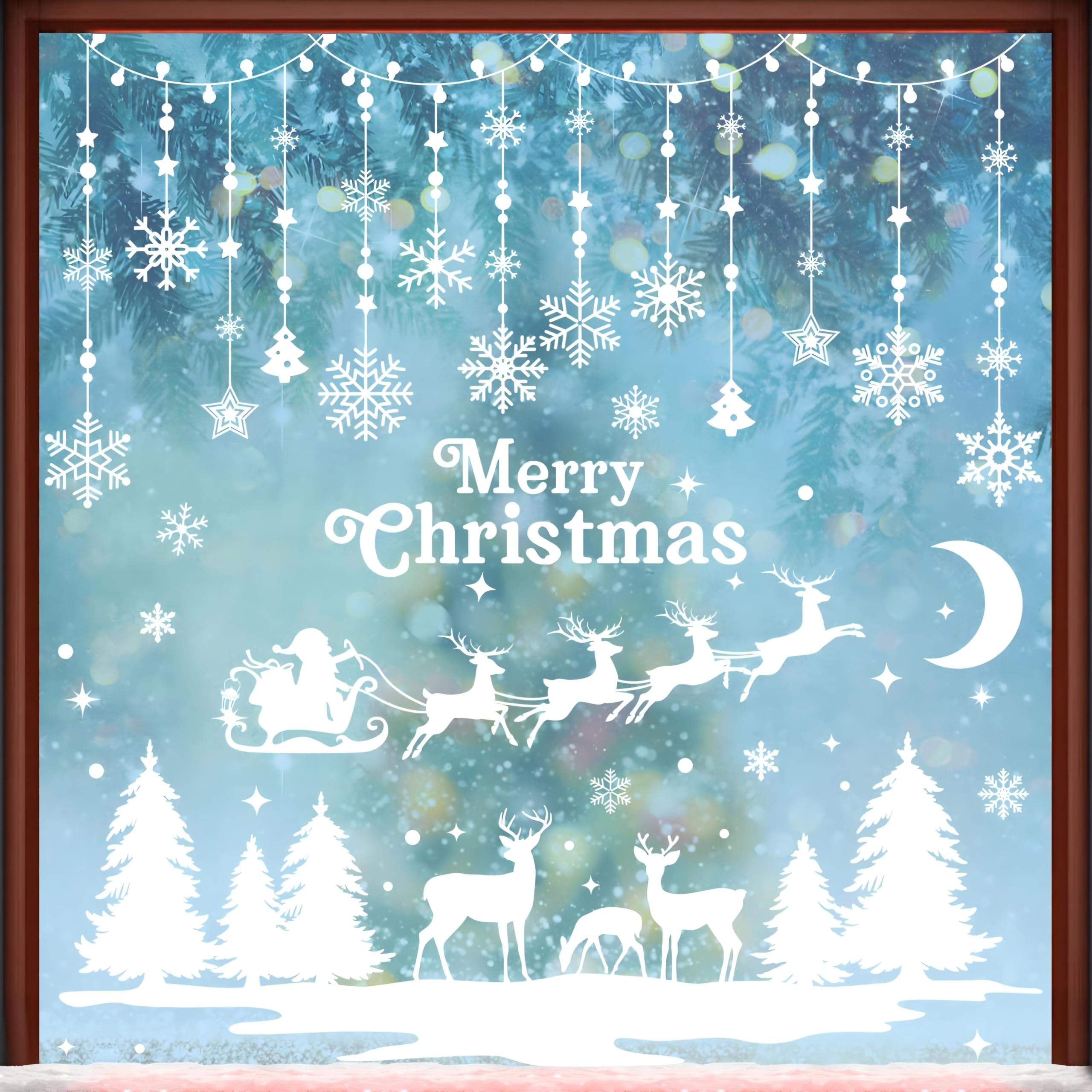 AhfuLife Fensterbilder Weihnachten, 209 Stück Fenstersticker Weihnachten Selbstklebend, Wiederverwendbar Doppelseitig Weihnachten Elch Weihnachtsbaum Fensterdeko für Winter Xmas Party Weihnachtsdeko