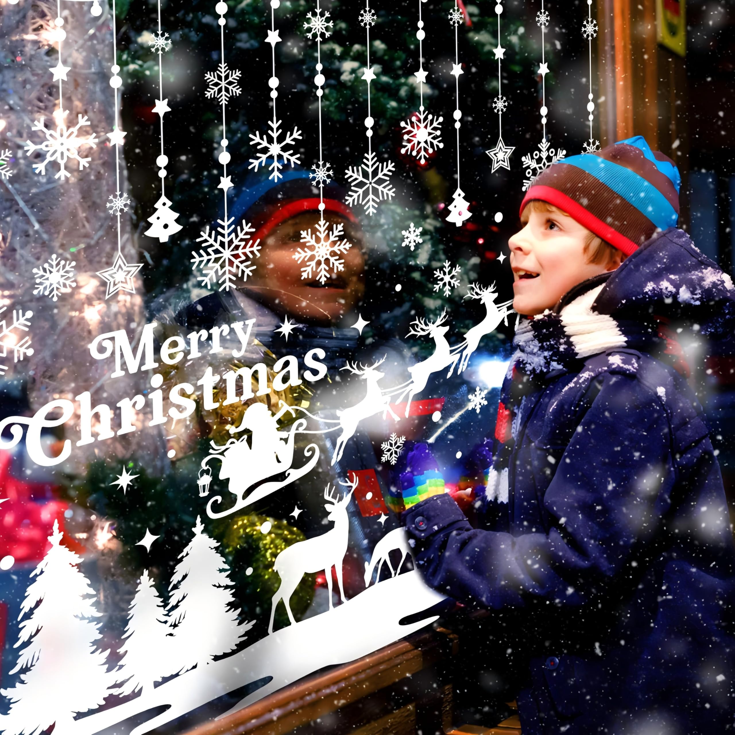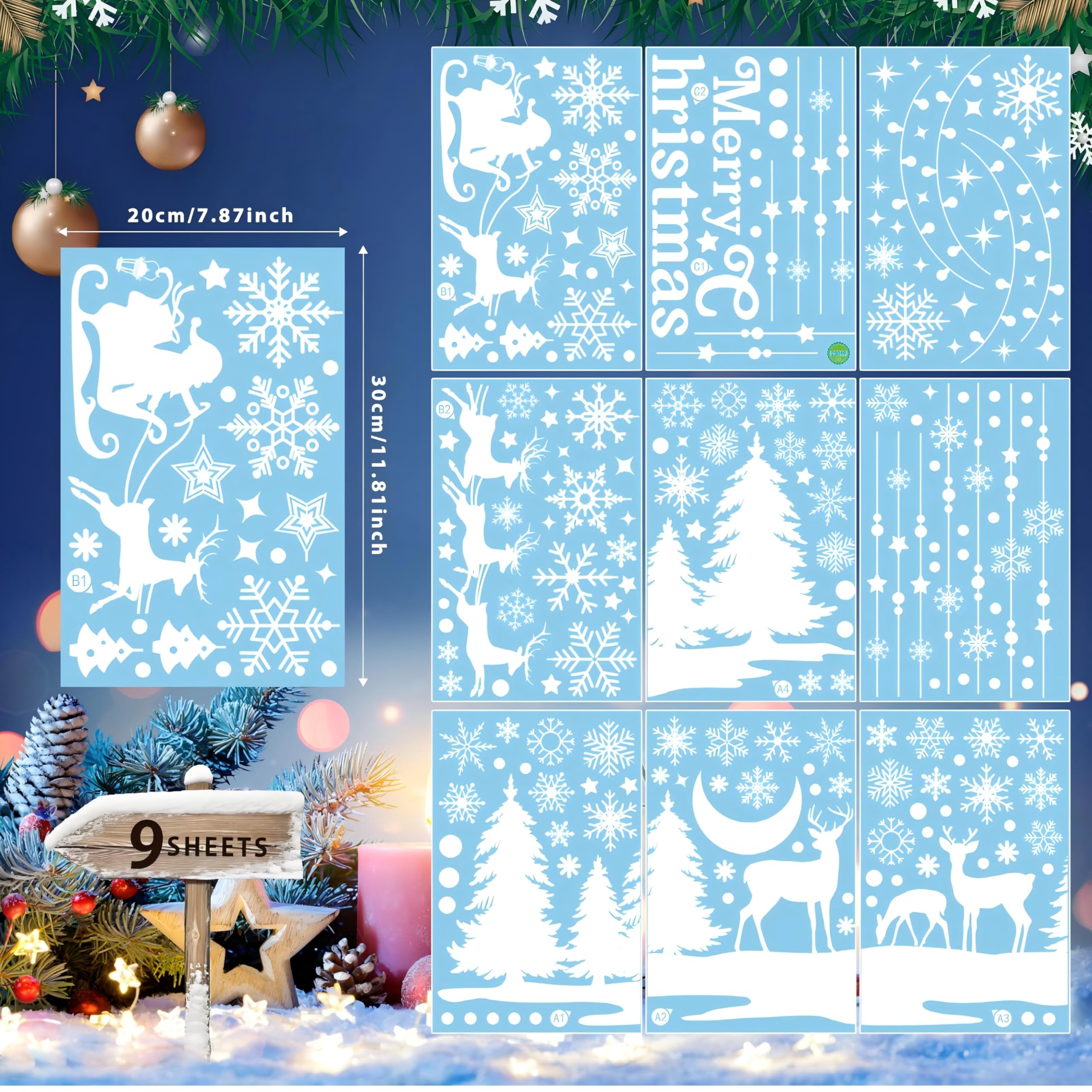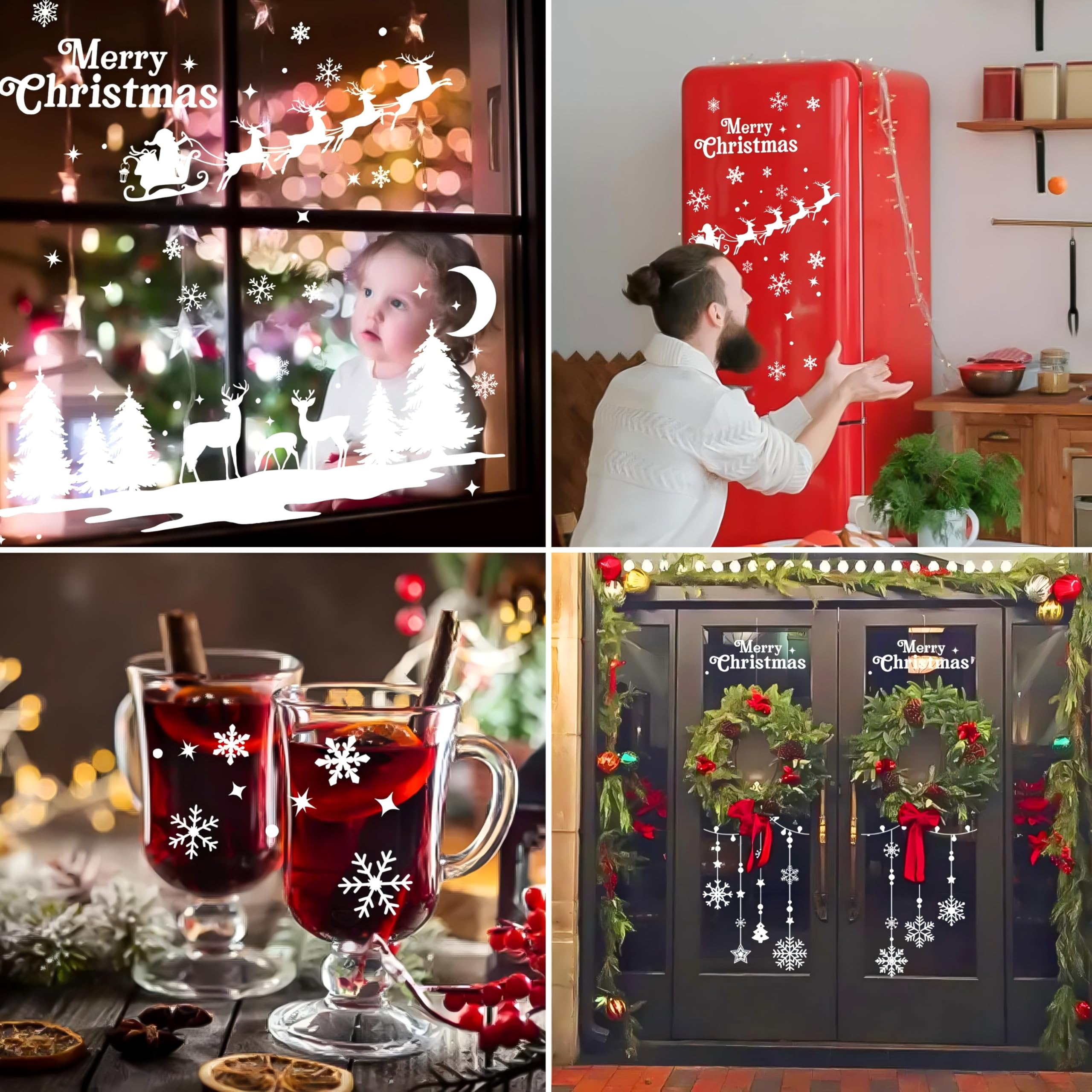 Weihnachten FensteraufkleberSpezifikationen:Sie erhalten 9 Blätter Weihnachten Fenster Aufkleber, Gewicht 147g, und die Grösse der einzelnen Aufkleber ist 11.81inch/30cm * 7.87inch /20cm. Rich Patterns:Die Aufkleber sind bunt, einschliesslich Schneeflocken in verschiedenen Grössen, sehr realistische Weihnachtsbäume, verschiedene Weihnachtsdekorationen, Weihnachtskutschen, niedliche Elche, Weihnachtsmänner, Schneemänner, Weihnachtsgeschenke, die Worte "Frohe Weihnachten" und vieles mehr. Diese realistischen und niedlichen Dekorationen sind bei Menschen jeden Alters beliebt. Hochwertiges Material: Unsere Fensterkleber sind aus hochwertigem, nicht anpassungsfähigem PVC-Material hergestellt und können wiederverwendet werden. Die Aufkleber können abgerissen und nach Weihnachten wieder auf das Papier geklebt werden und hinterlassen beim Abreissen keine Spuren. Weihnachtsaufkleber mit verschiedenen Mustern ermöglichen es Ihnen, den Ort für das Aufkleben selbst zu gestalten. Unsere weihnachtliche Fensterfolie eignet sich für Fenster, Glastüren, Spiegel, Kühlschränke, Keramikfliesen und Metall in Wohnungen, Büros und Klassenzimmern. Sie wird fest aufgeklebt und schrumpft nicht. Wie man sie verwendet1. Vergewissern Sie sich, dass die Oberfläche des Objekts glatt und frei von jeglicher Textur ist. 2. Reinigen Sie das Fenster mit einem Tuch, um Staub und Fett auf der Oberfläche zu vermeiden. 3. Kleben Sie einen Aufkleber auf und drücken Sie den Aufkleber an, damit er besser klebt. 4. Wischen Sie das restliche Wasser ab. Hinweis:1. Diese weihnachtlichen Fensteraufkleber können NICHT als Wandaufkleber oder für Ascheflächen verwendet werden. 2. Wenn Blasen auftreten, reinigen Sie die Fenster, sprühen Sie Seifenwasser und verwenden Sie eine Karte, eine Hand oder ein Tuch, um die Blasen auszudrücken. Fröhliche WeihnachtenWeihnachtsfeier Dekoration: Unsere Weihnachts-Fensteraufkleber sind perfekt für Weihnachtsfeiern und Familientreffen. Dekorieren Sie Ihr Haus, Büro, Klassenzimmer, Kirche, Geschäft, etc. Schaffen Sie mehr Weihnachtsatmosphäre und festlichen Spass durch unsere Aufkleber. Tolles Geschenk für Weihnachten: Die weihnachtliche Fensterfolie voller Weihnachtselemente ist das perfekte Geschenk für Kinder, Freunde und Familie, damit sie sich angesprochen fühlen.
