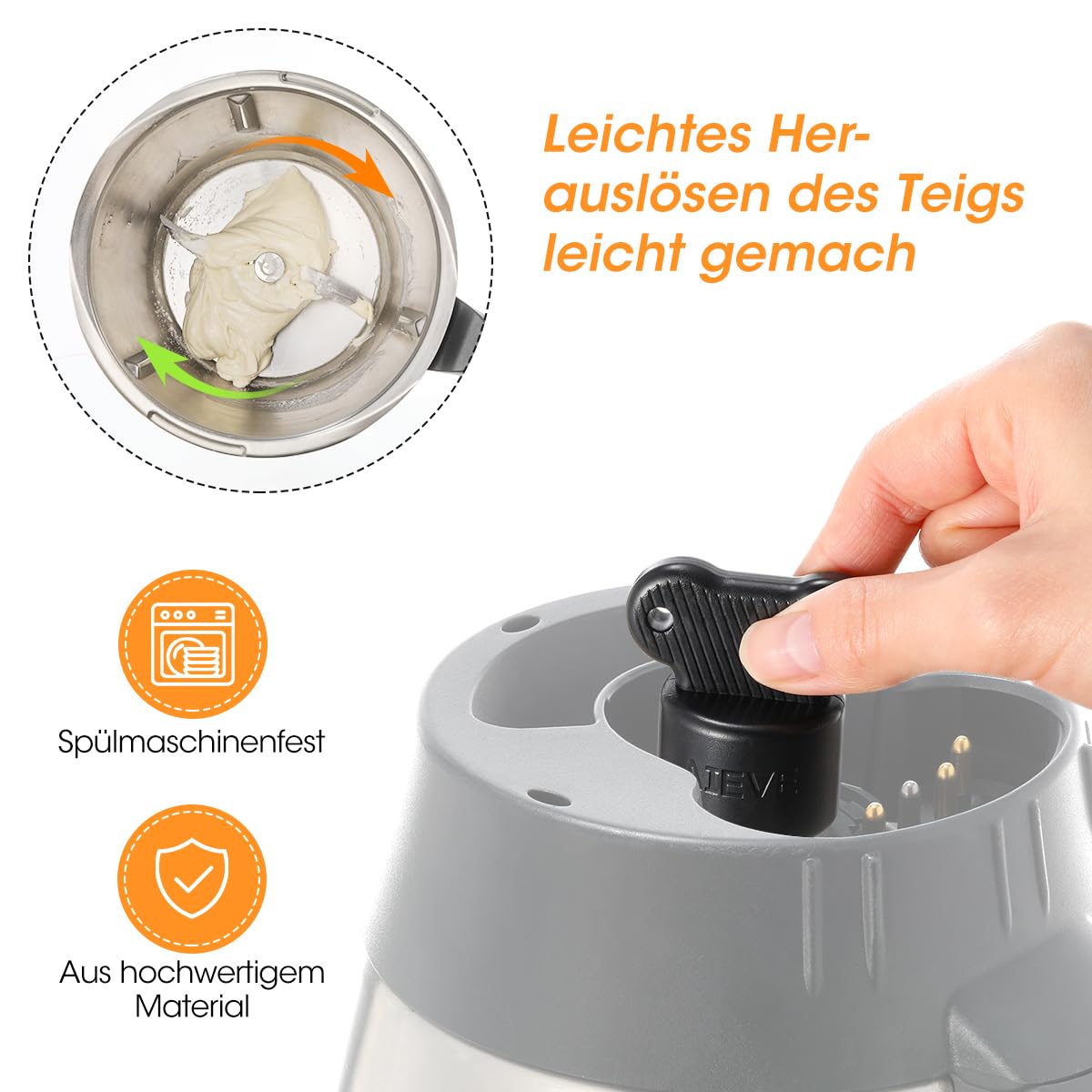 - Hilfe beim Ausdrehen von Teig: Der Thermomix Teiglöser löst festsitzenden Teig durch Drehen des Rührmessers schnell und einfach aus dem Mixtopf