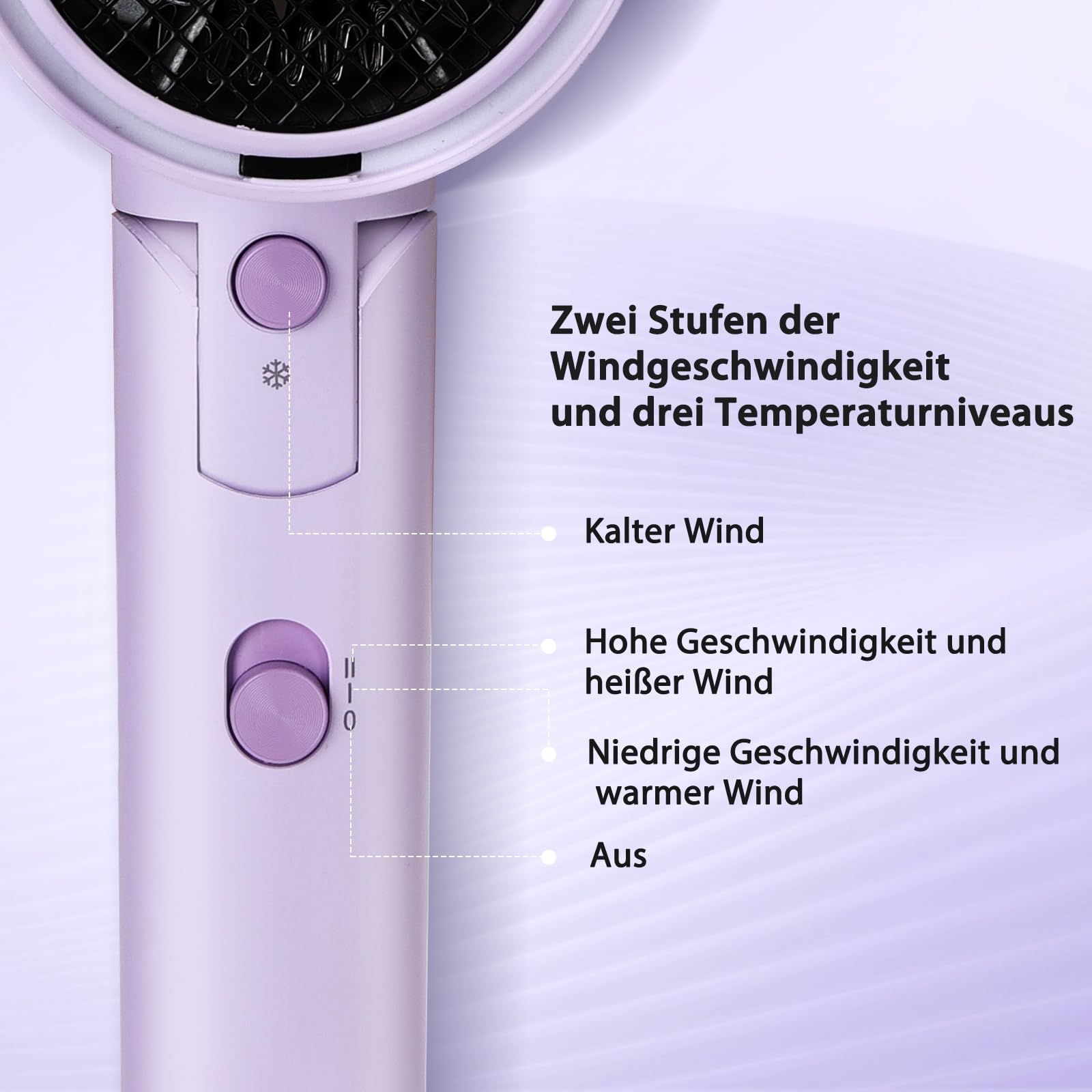 • [Anpassbare Einstellungen] - Geniesse 3 Temperaturstufen und 2 Geschwindigkeitsoptionen für ein personalisiertes Trocknerlebnis, das sich an alle Haartypen anpasst