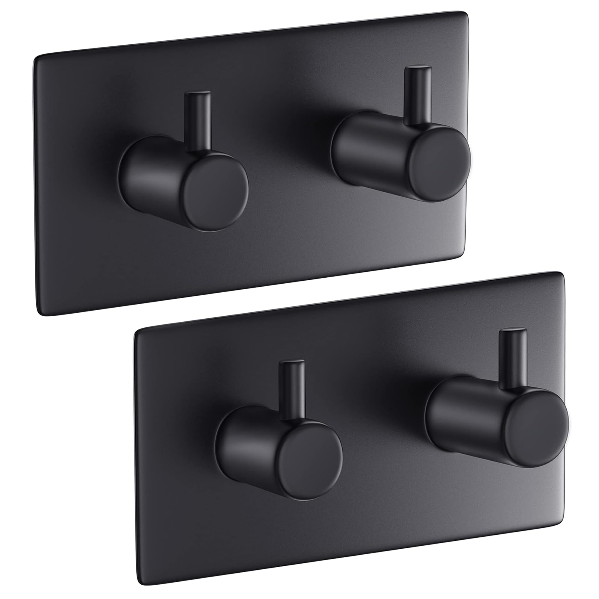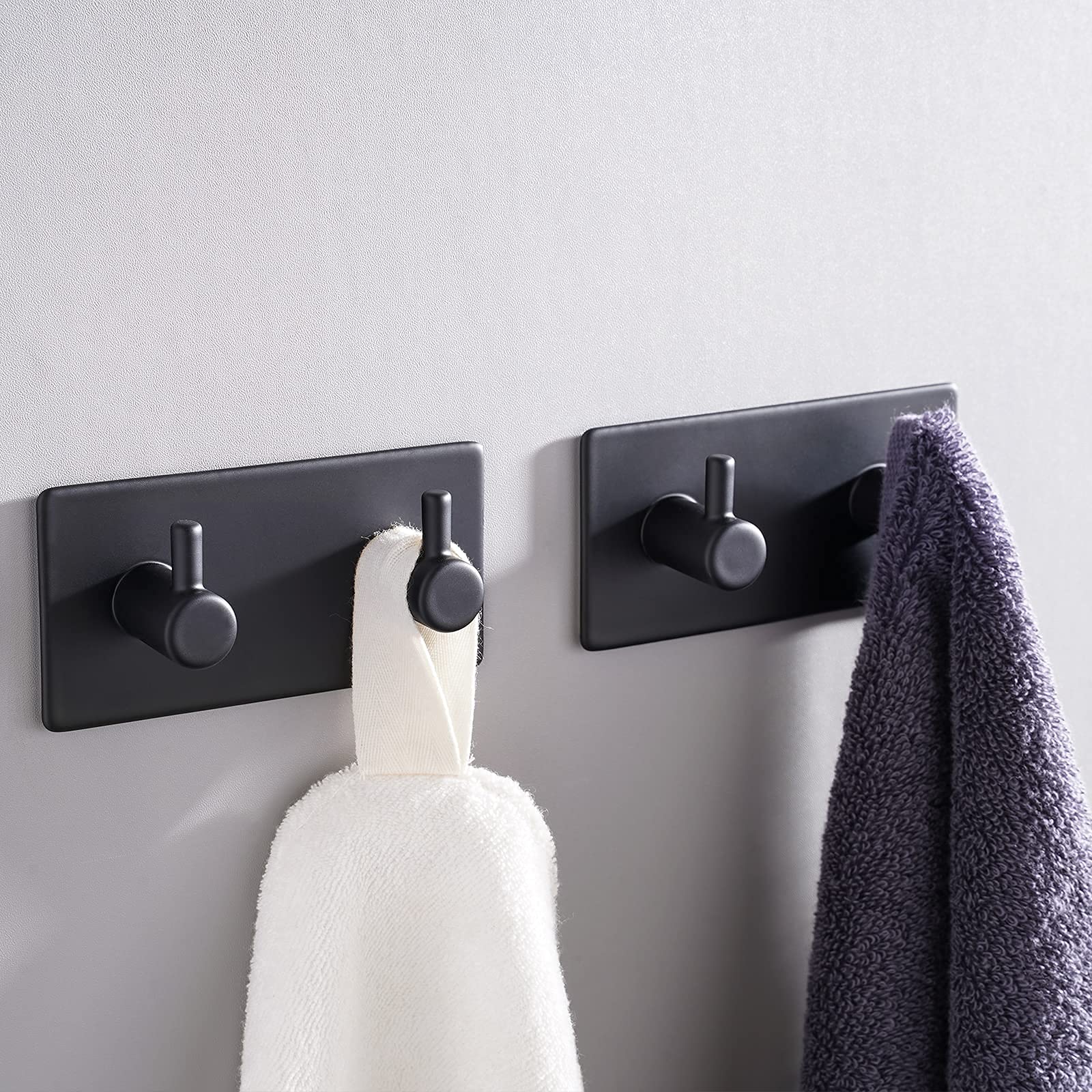 Aikzik Handtuchhalter ohne Bohren, 2er Set, Badezimmer Handtuchhalter aus Edelstahl, Klebehaken extra stark, Selbstklebend Haken für Bad und Küche, Schwarz