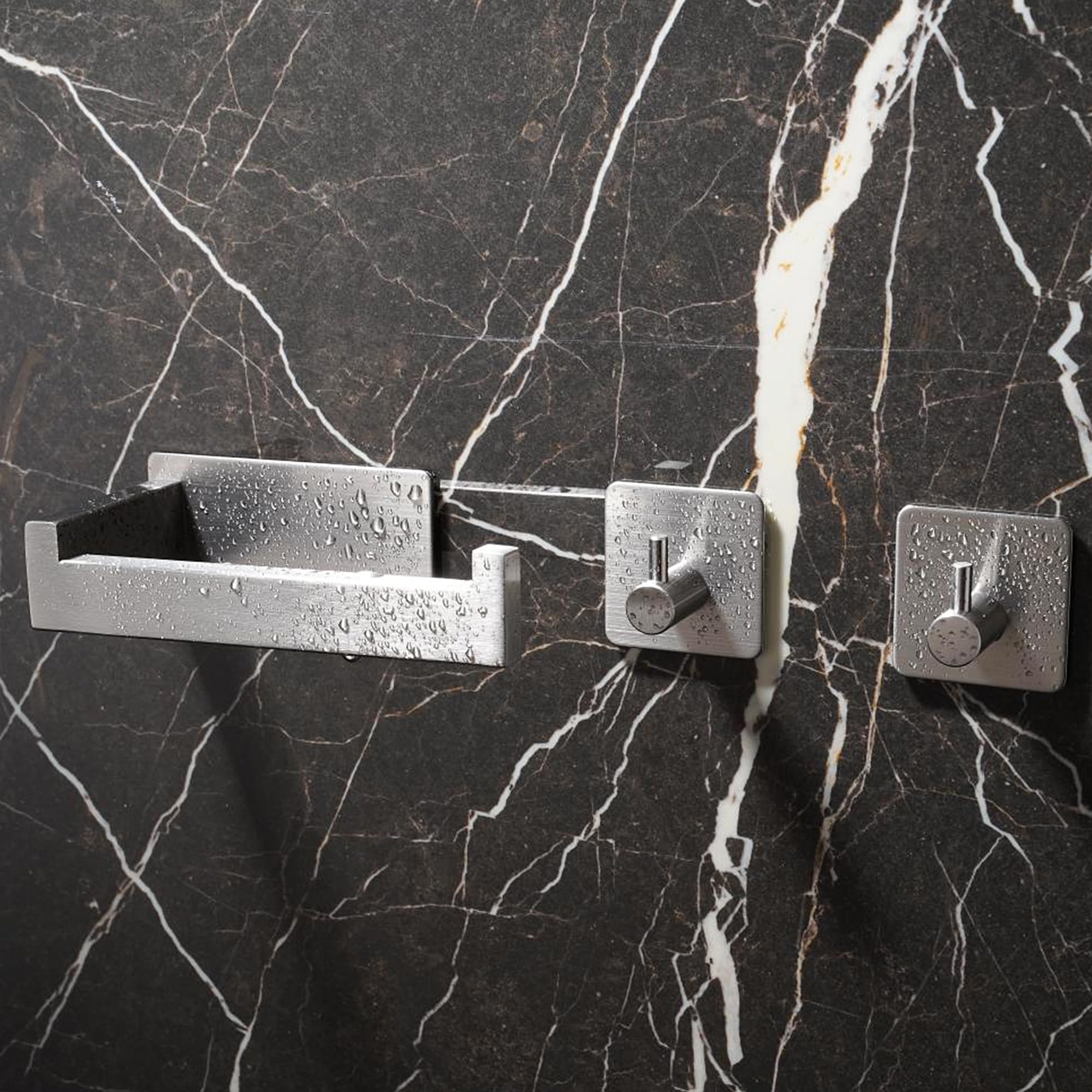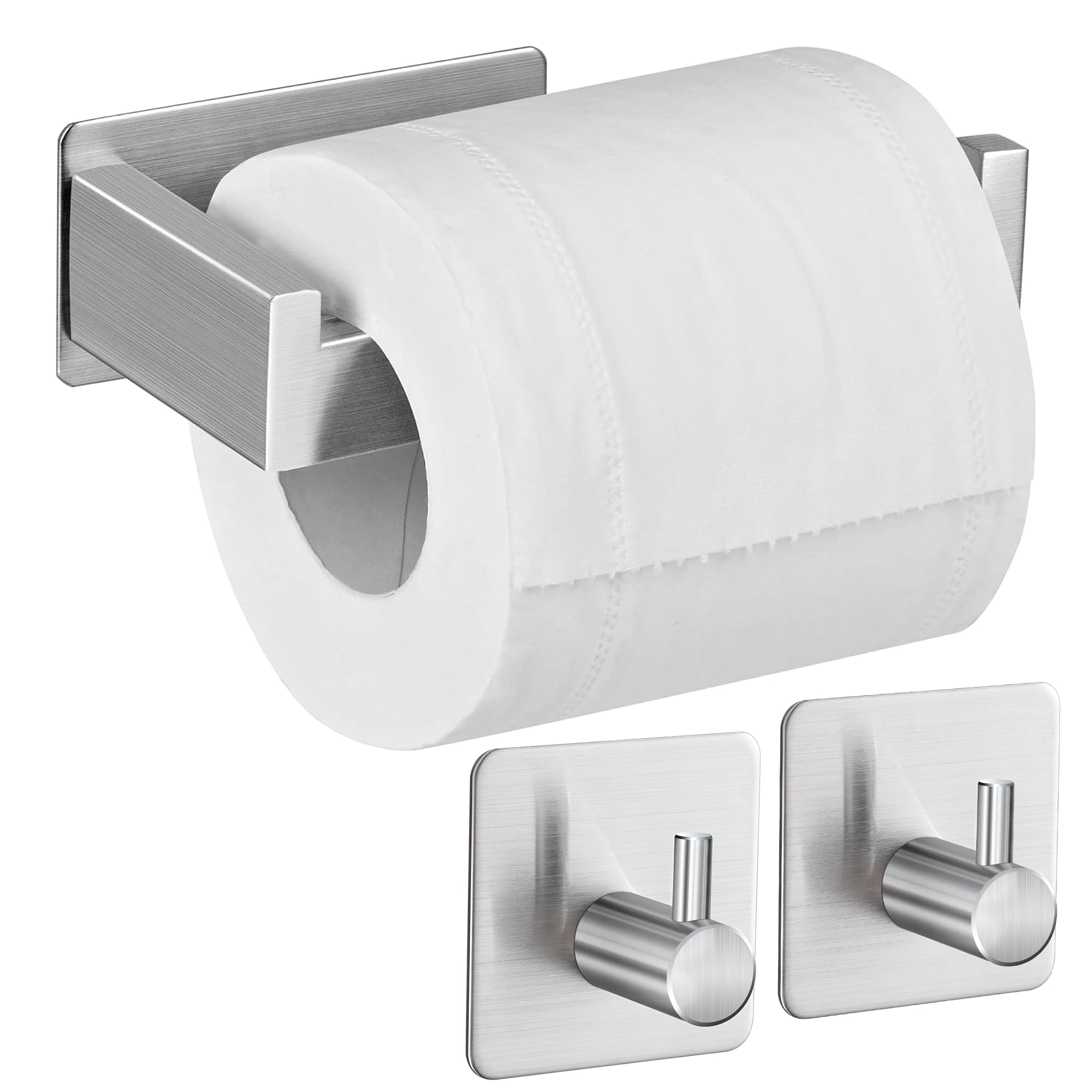 Aikzik Toilettenpapierhalter ohne Bohren, Selbstklebend Toilettenpapierrollenhalter Edelstahl Klopapierhalter Wc Halter Klorollenhalter mit 2 Stück Handtuchhaken für Küche und Badzimmer, Silber