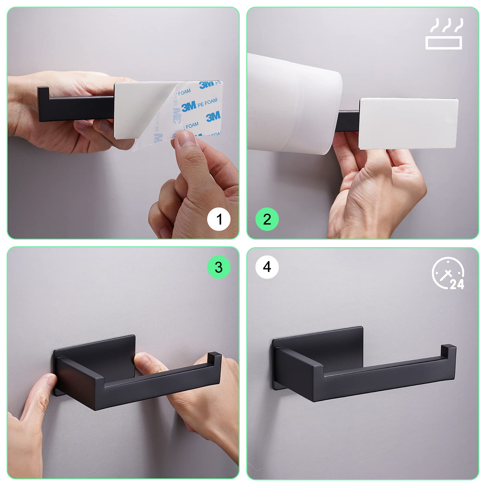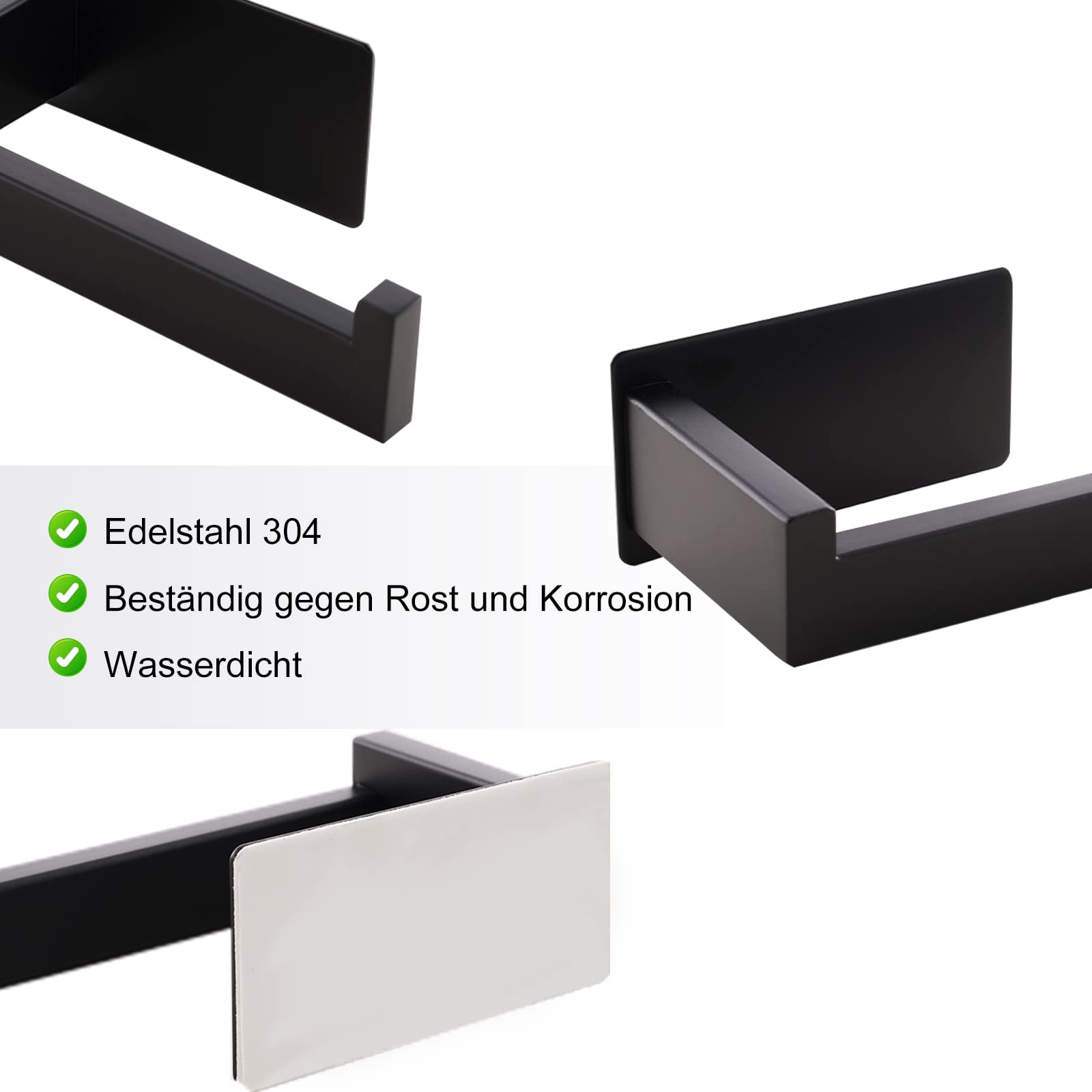 Aikzik Toilettenpapierhalter, Klopapierhalter ohne Bohren, Toilettenpapierhalter Schwarz, Edelstahl Klorollenhalter, Wc Papier Halterung Rollenhalter mit Kleber für Badzimmer