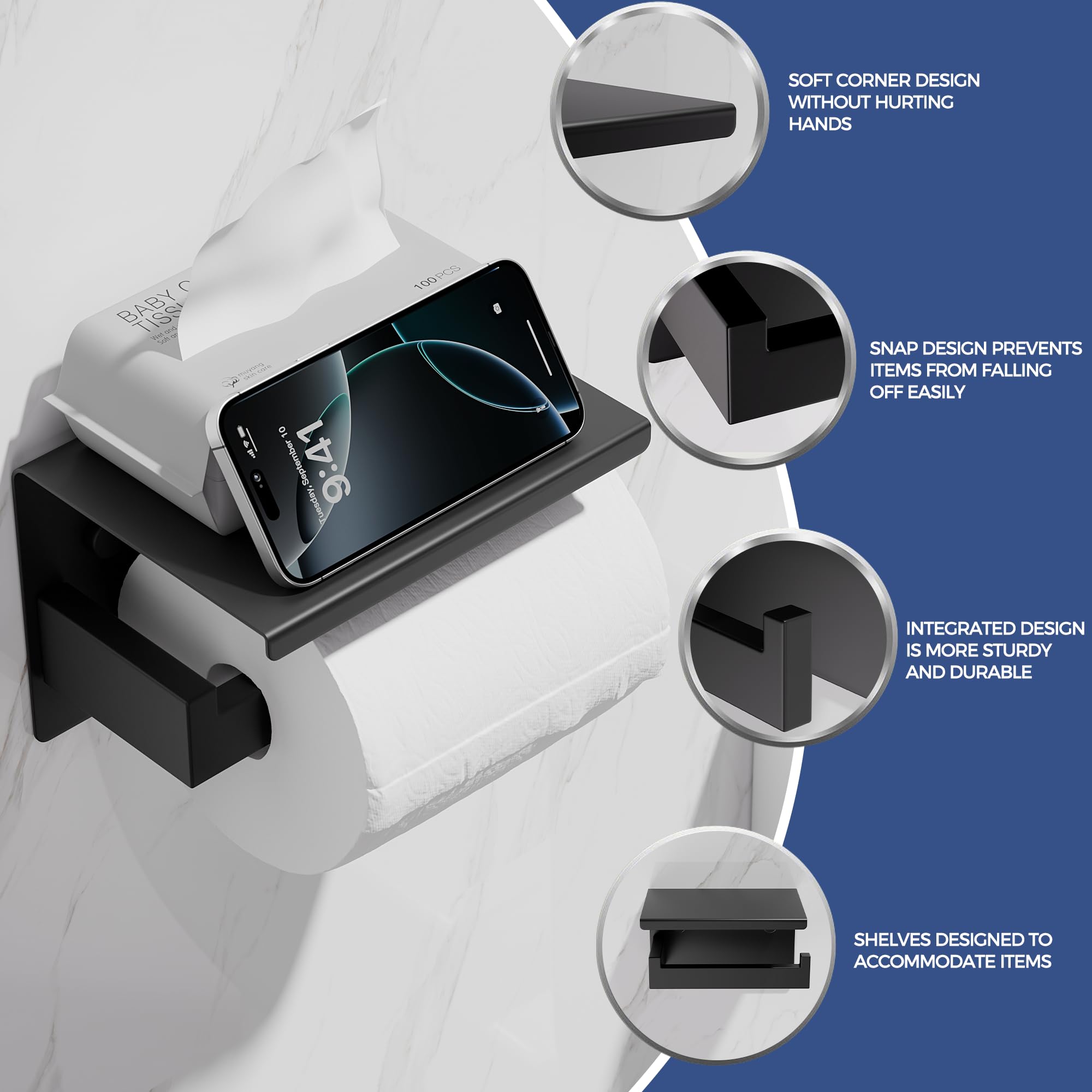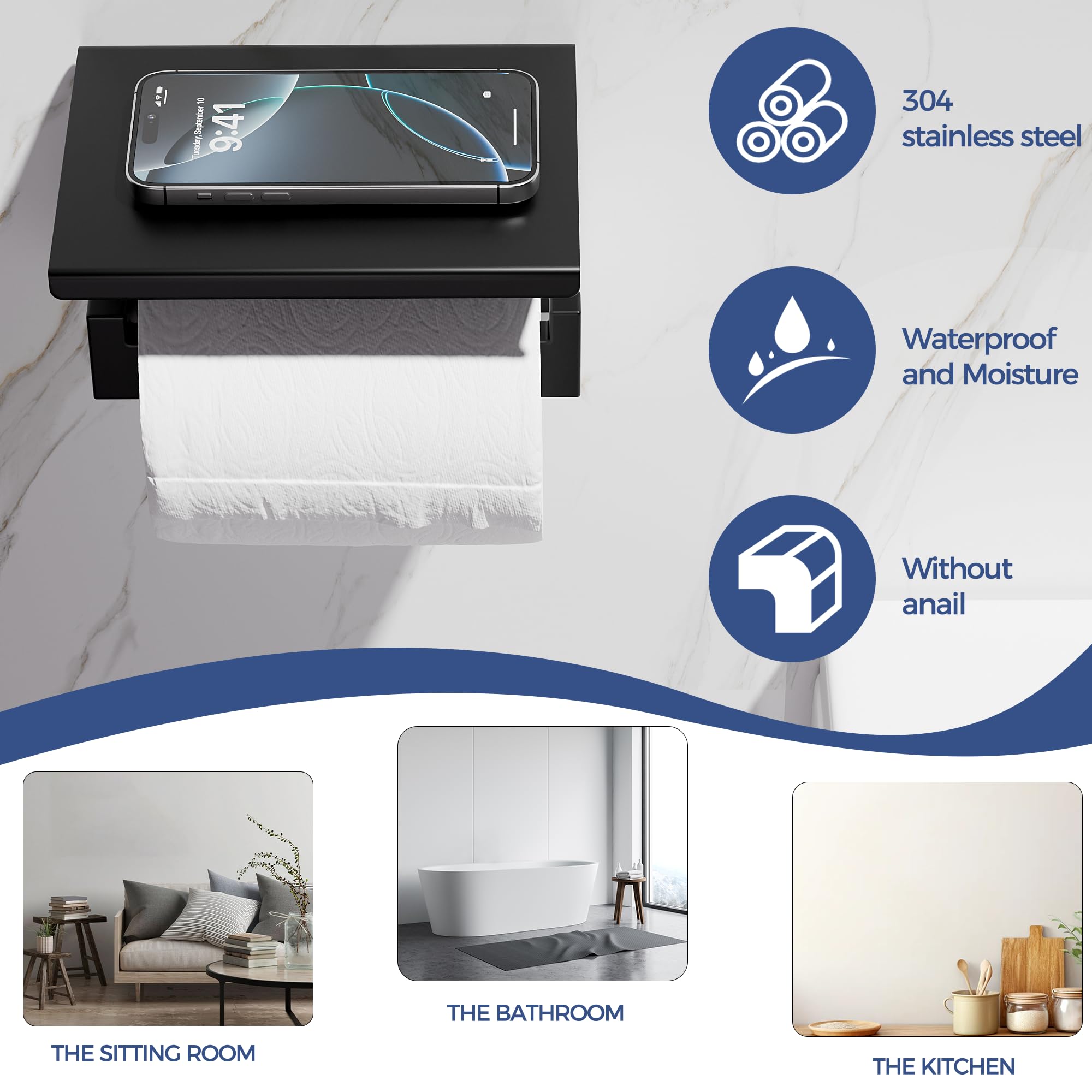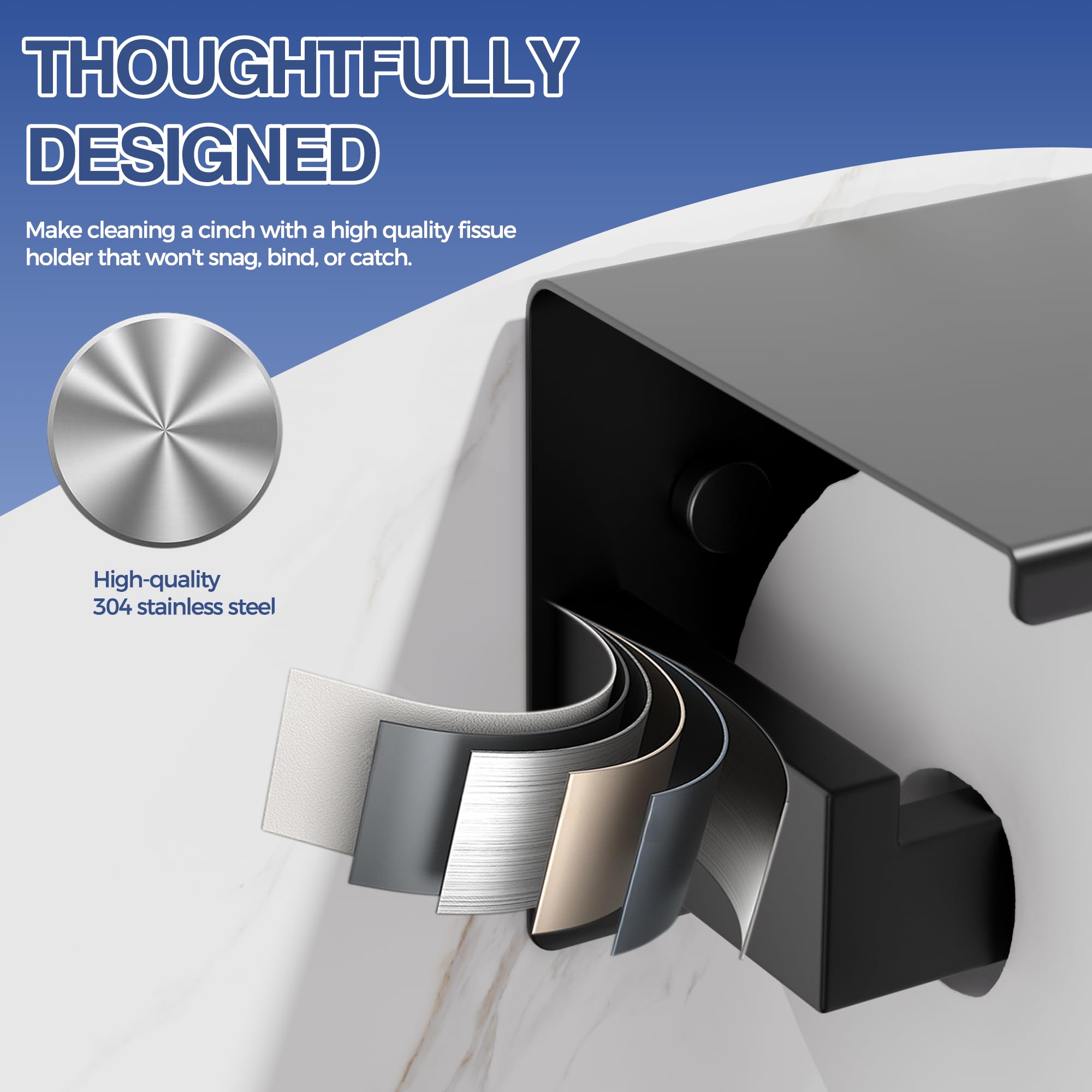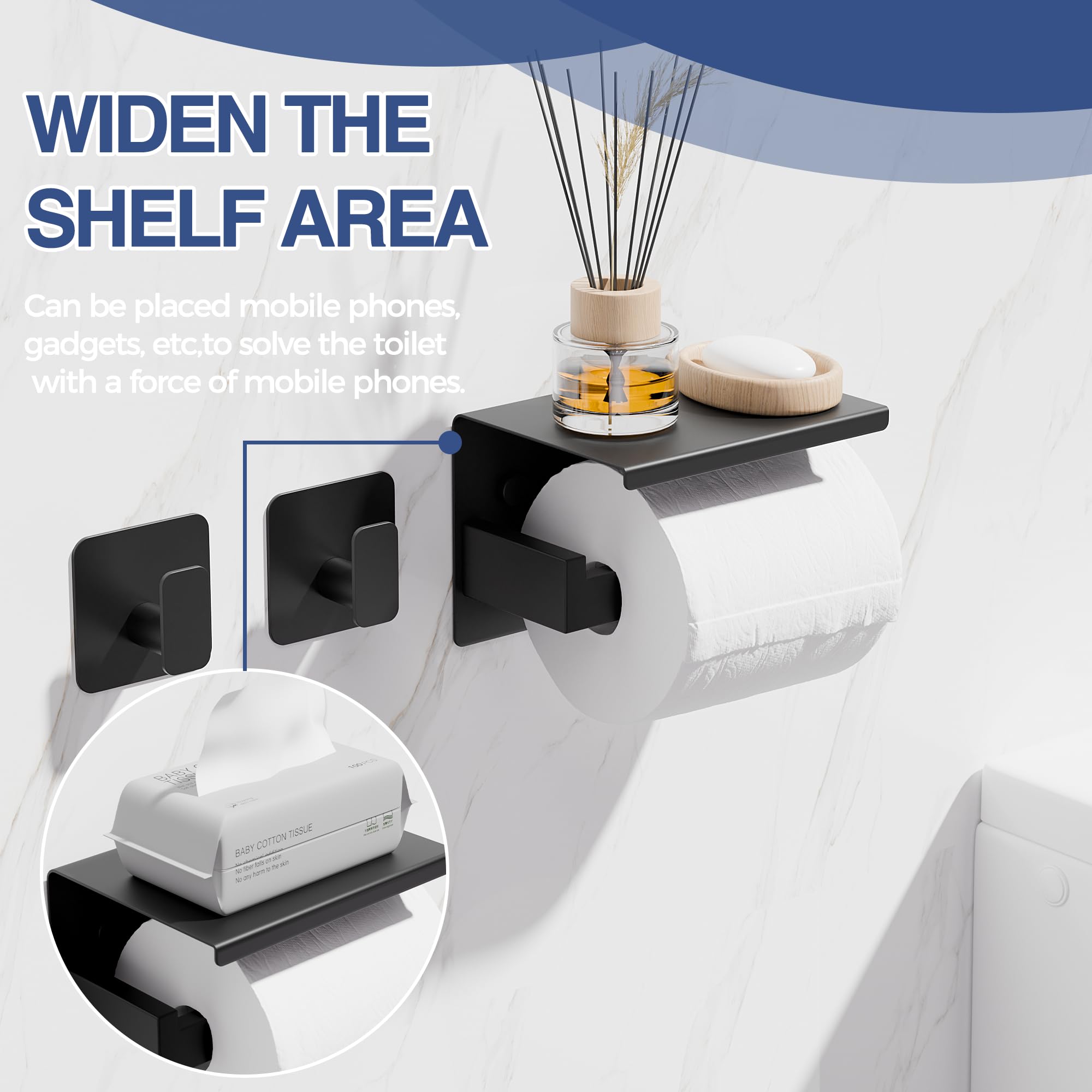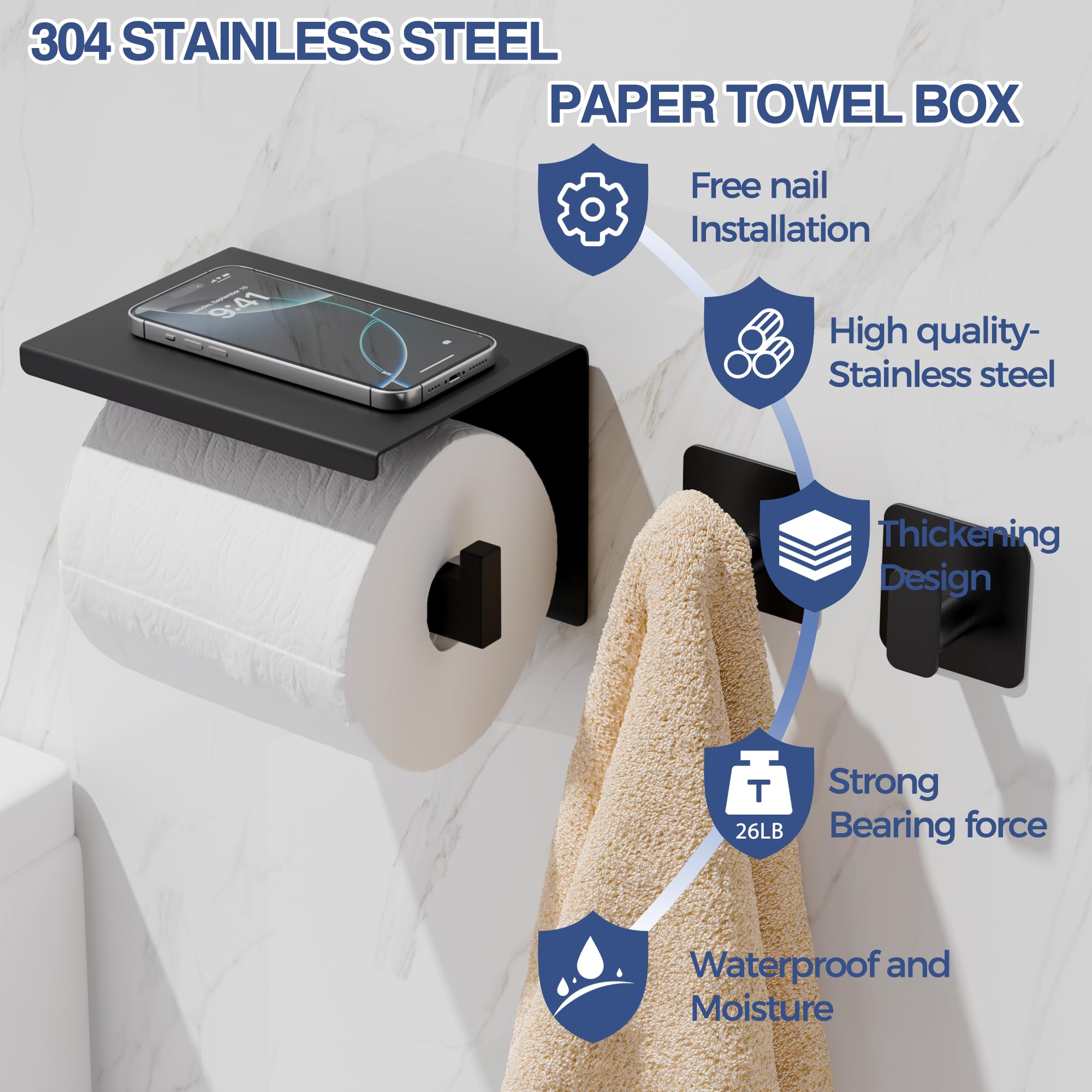 Aikzik Klopapierhalter ohne Bohren, Toilettenpapierhalter und 2 Stück Klebehaken, Edelstahl Klorollenhalter, Wc Papier Halterung Rollenhalter mit Kleber für Badzimmer, Schwarz
