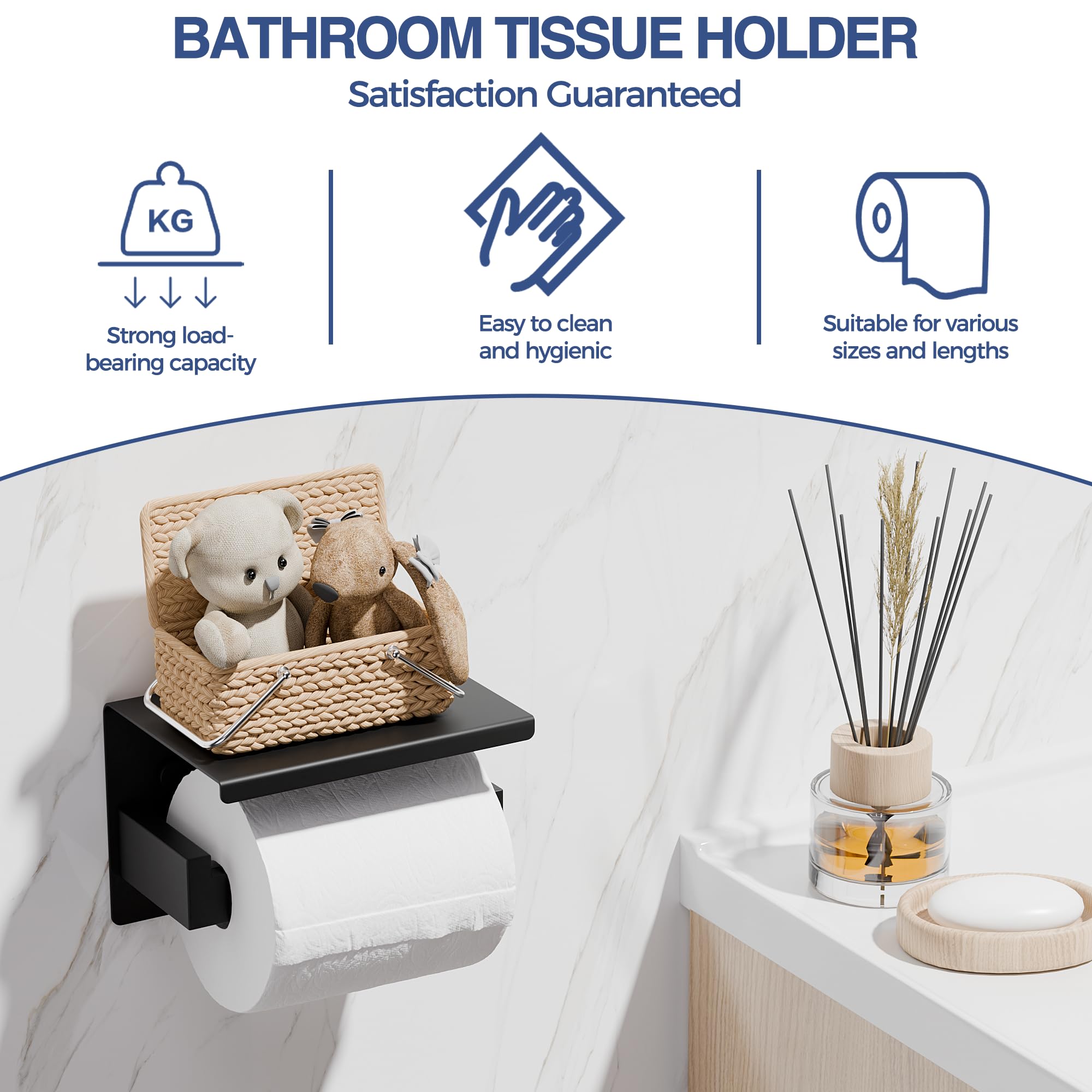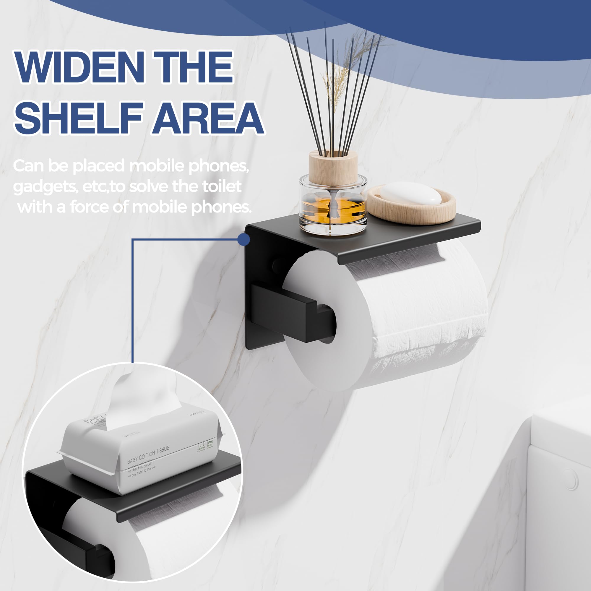 Aikzik Toilettenpapierhalter Ohne Bohren, Selbstklebend Toilettenpapierrollenhalter Edelstahl Klopapierhalter Wc Halter Rollenhalter Klorollenhalter Papierhalter für Küche und Badzimmer, Schwarz