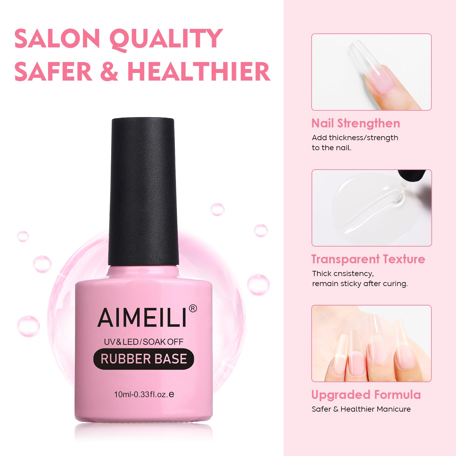 Das AIMEILI Rubber Base Gel ist dicker als ein herkömmlicher Base Coat und ideal für unregelmässige, dünne und brüchige Nägel. Es glättet Dellen und Unebenheiten auf der Nageloberfläche und schafft eine perfekte, gleichmässige Grundlage für Ihre Maniküre.