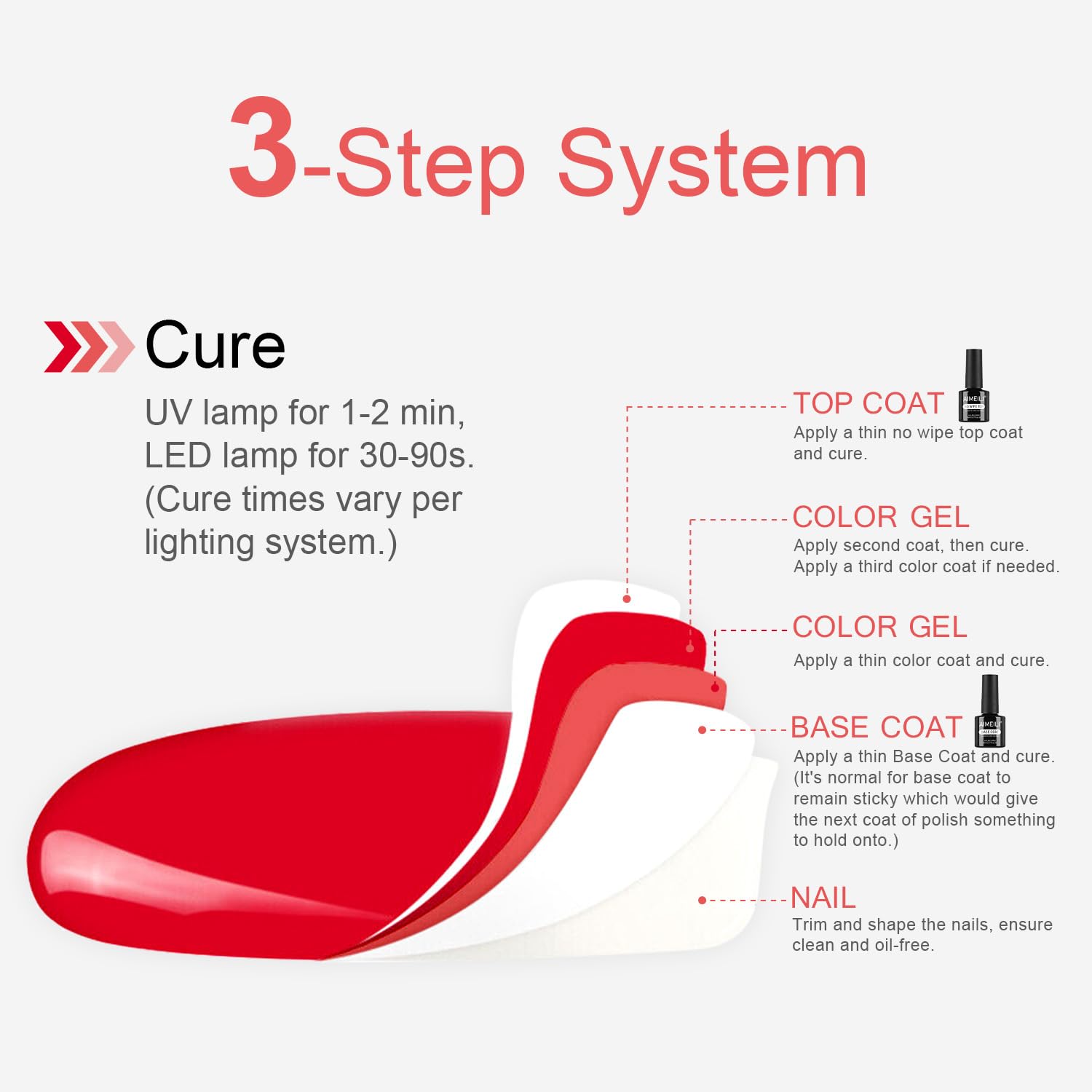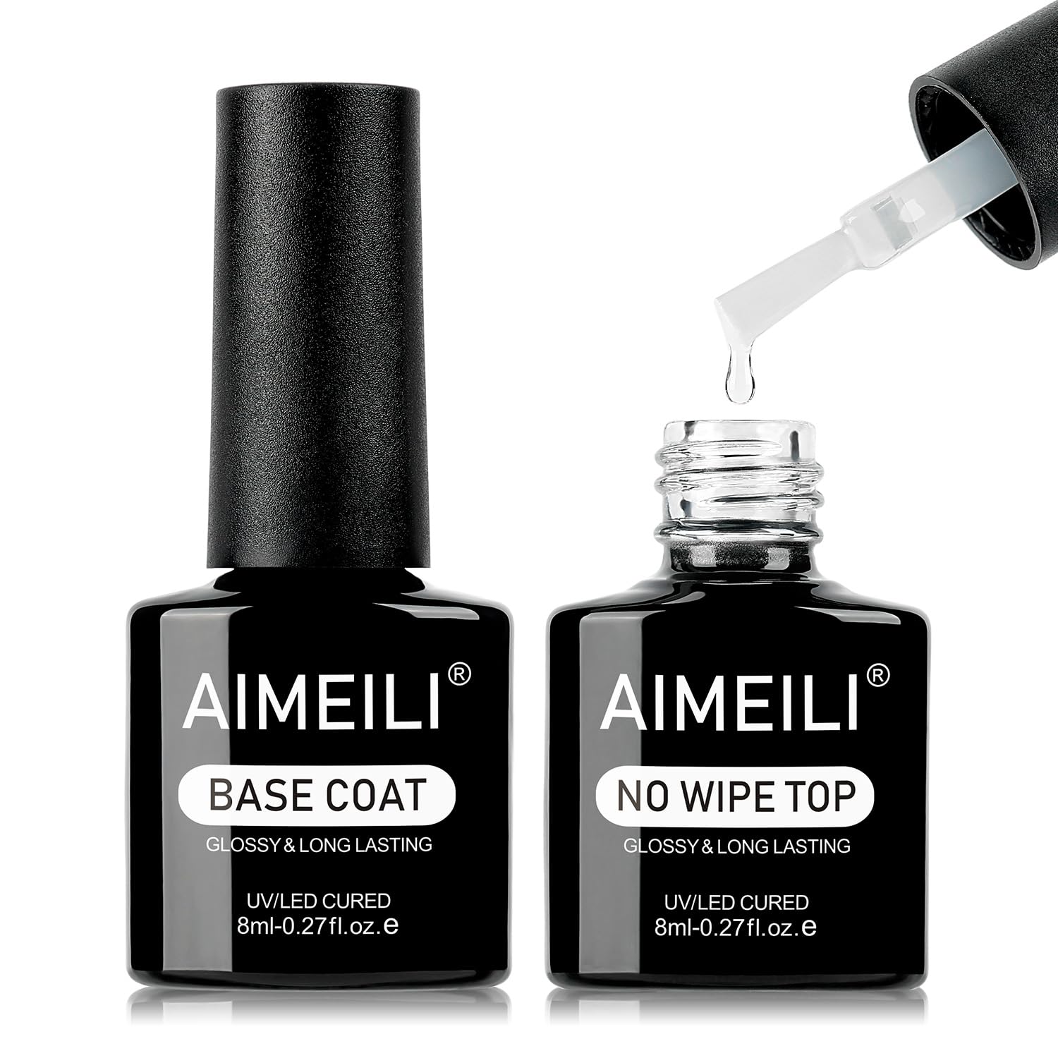 • Perfektes Duo fuer langanhaltende Manikuere Das AIMEILI Set enthaelt einen UV Base Coat und einen No Wipe Top Coat mit je 8 ml. Der Unterlack bereitet die Naegel optimal vor, waehrend der Ueberlack den Gel Nagellack sicher versiegelt.