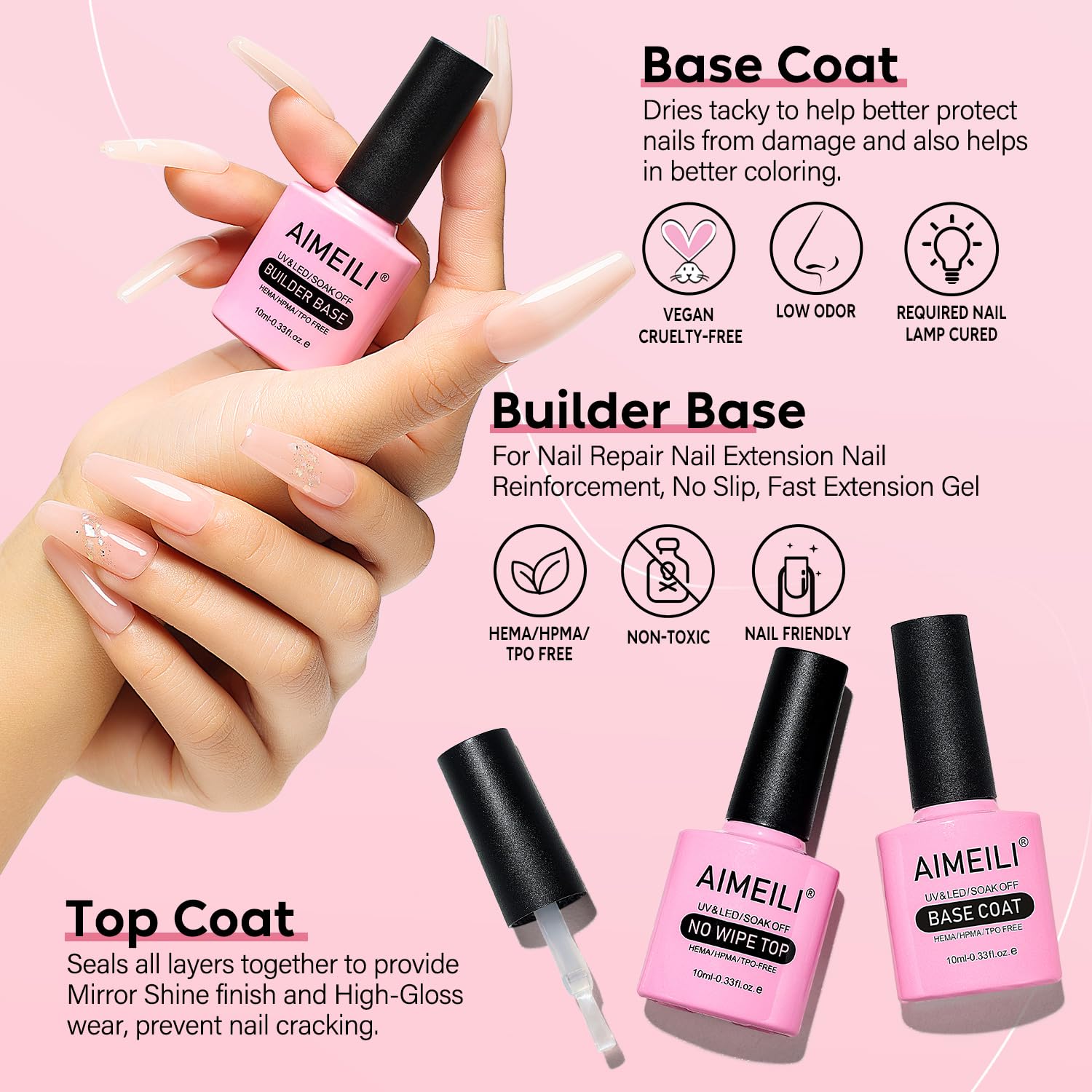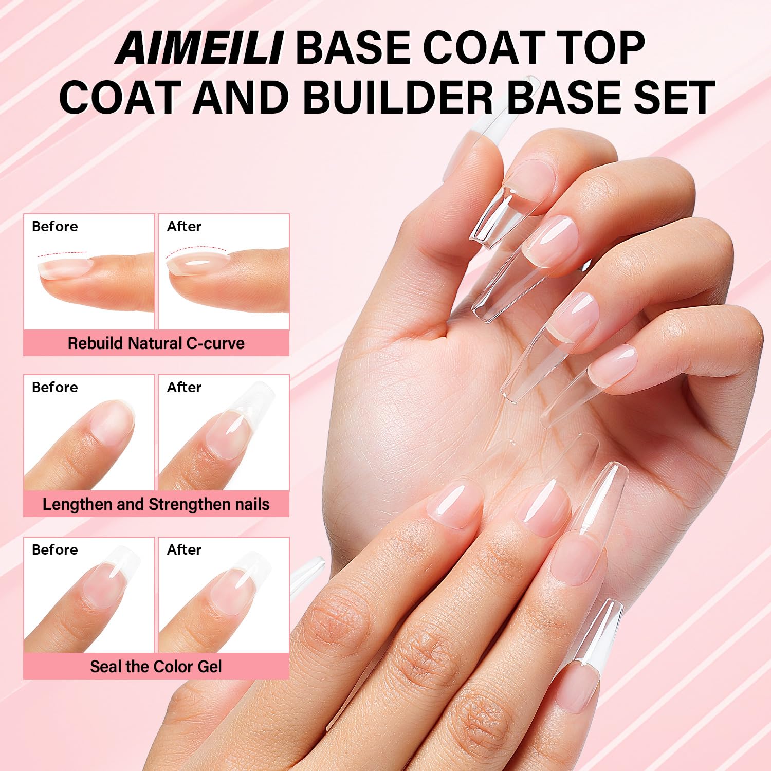 AIMEILI UV Gel Set Base Coat Top Coat Matte und Builder Base, 4 x 10 ml Unter- und Ueberlack