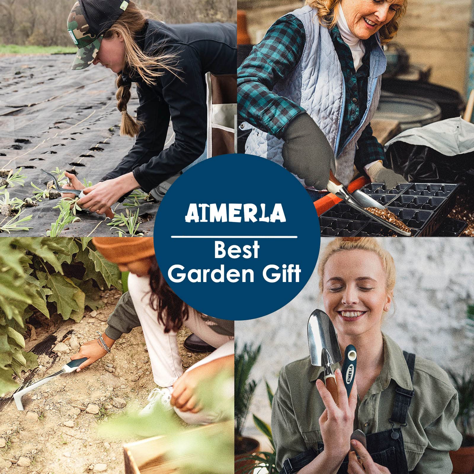 Aimerla Gartengeräte Set mit 9 robusten Gartengeräten mit rutschfestem Gummigriff mit grosser Gartentasche, langlebig für Garten, Jäten, Geschenke für Frauen, Männer