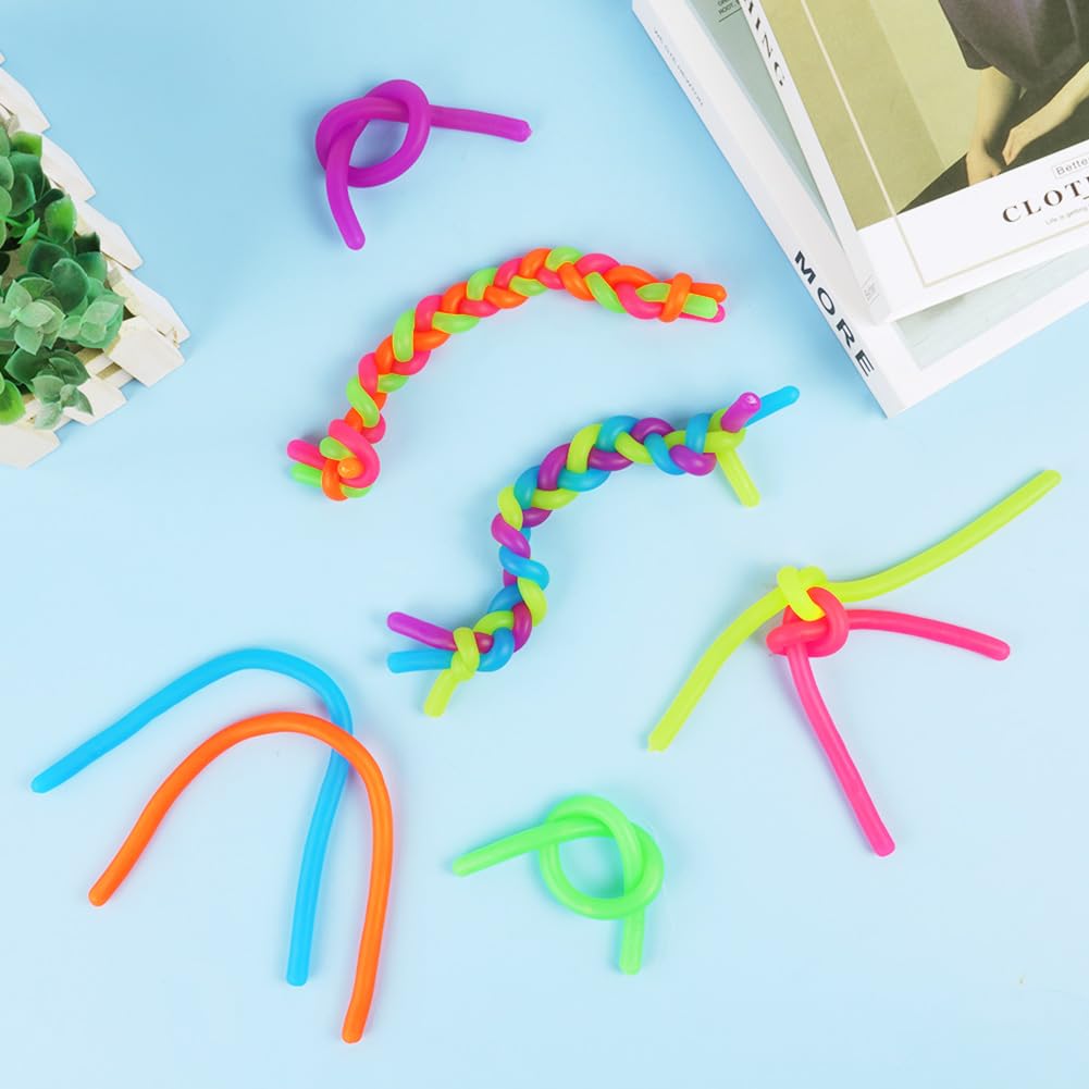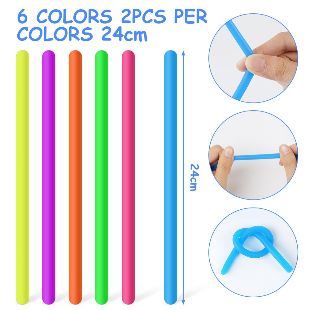 Ainiv 12 Stück Bunte Dehnbare Saiten, Sensory Noodles Fidget Toys, 24 cm Sensorische Dehnbar Schnur Fidget Toys Stretch Spielzeug Set, Spielzeug Stress Relief Zappeln für ADD, ADHS, Autismus(6 Farben)