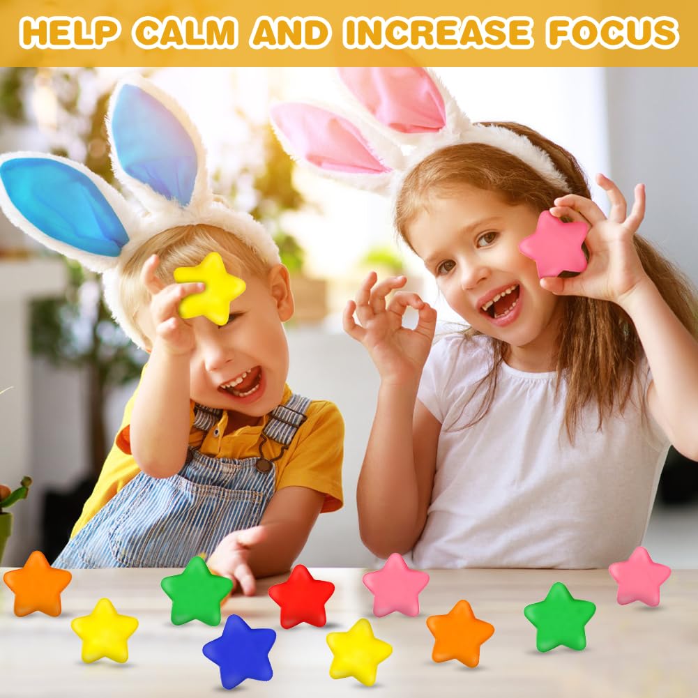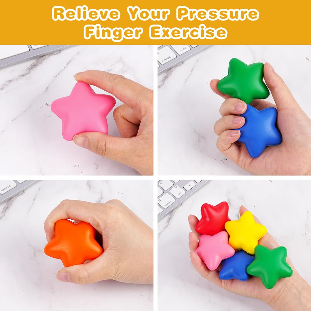 Ainiv 24 Stück Stern Antistressball, Stressbälle Schlüsselanhänger für Angst Abbauen Beruhigung Kinder Erwachsene Stern Schaum Antistressball für Schule Belohnung Student Party Tasche Füllstoffe