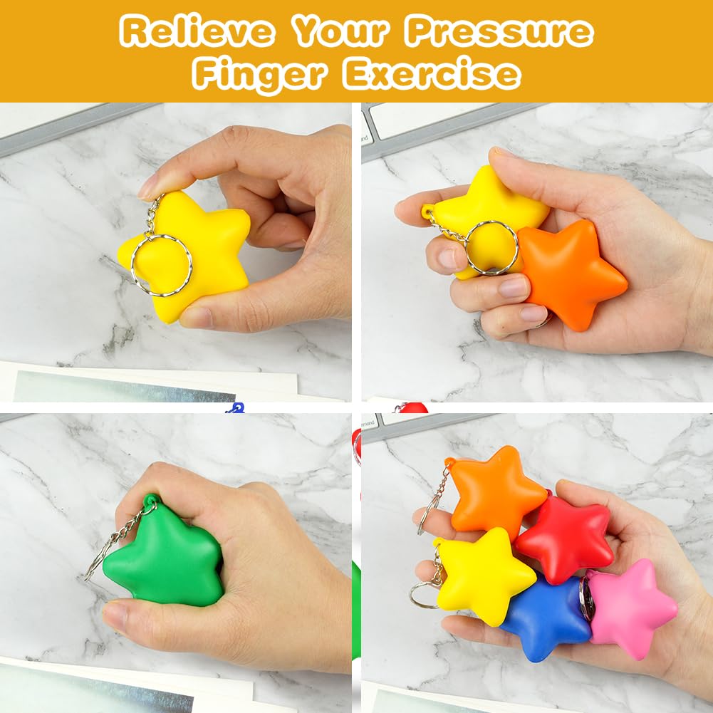 Ainiv 24 Stück Stern Antistressball, Stressbälle Schlüsselanhänger für Angst Abbauen Beruhigung Kinder Erwachsene Stern Schaum Antistressball für Schule Belohnung Student Party Tasche Füllstoffe