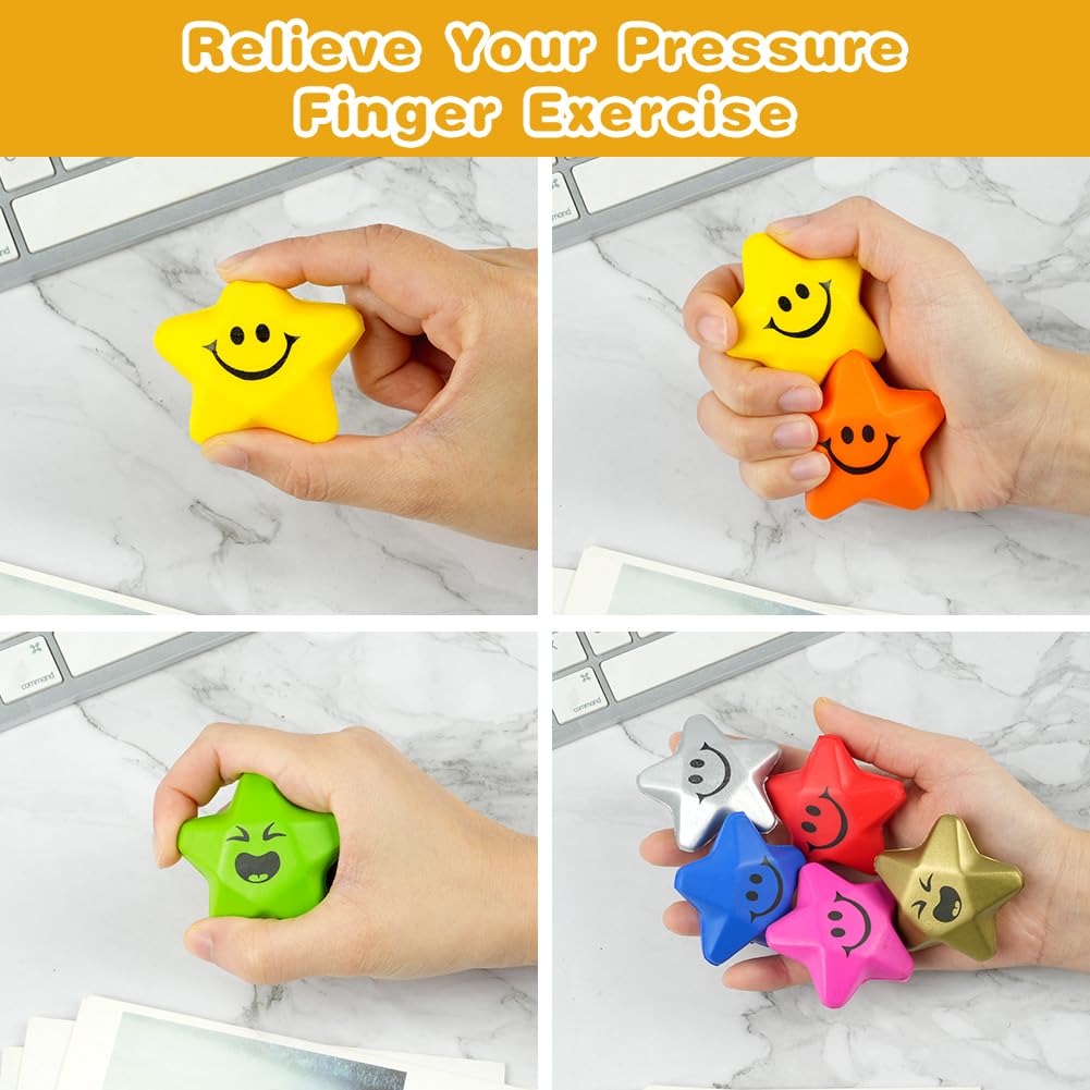 Ainiv 24 Stück Stressbälle in Sternform, Stern Schaum Antistressball für Schule Belohnung Student Party Tasche Füllstoffe, Stressbälle Squeeze Ball für Angst Abbauen Beruhigung Kinder Erwachsene