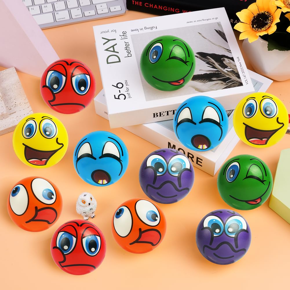 Ainiv Anti Stress Spielzeug Bälle, 12 Verschiedene Emoticons Stressball, 6cm Schaum Stressabbau Bälle, Stressabbau Spielzeug für Erwachsene Mitgebsel Gastgeschenke Weihnachten