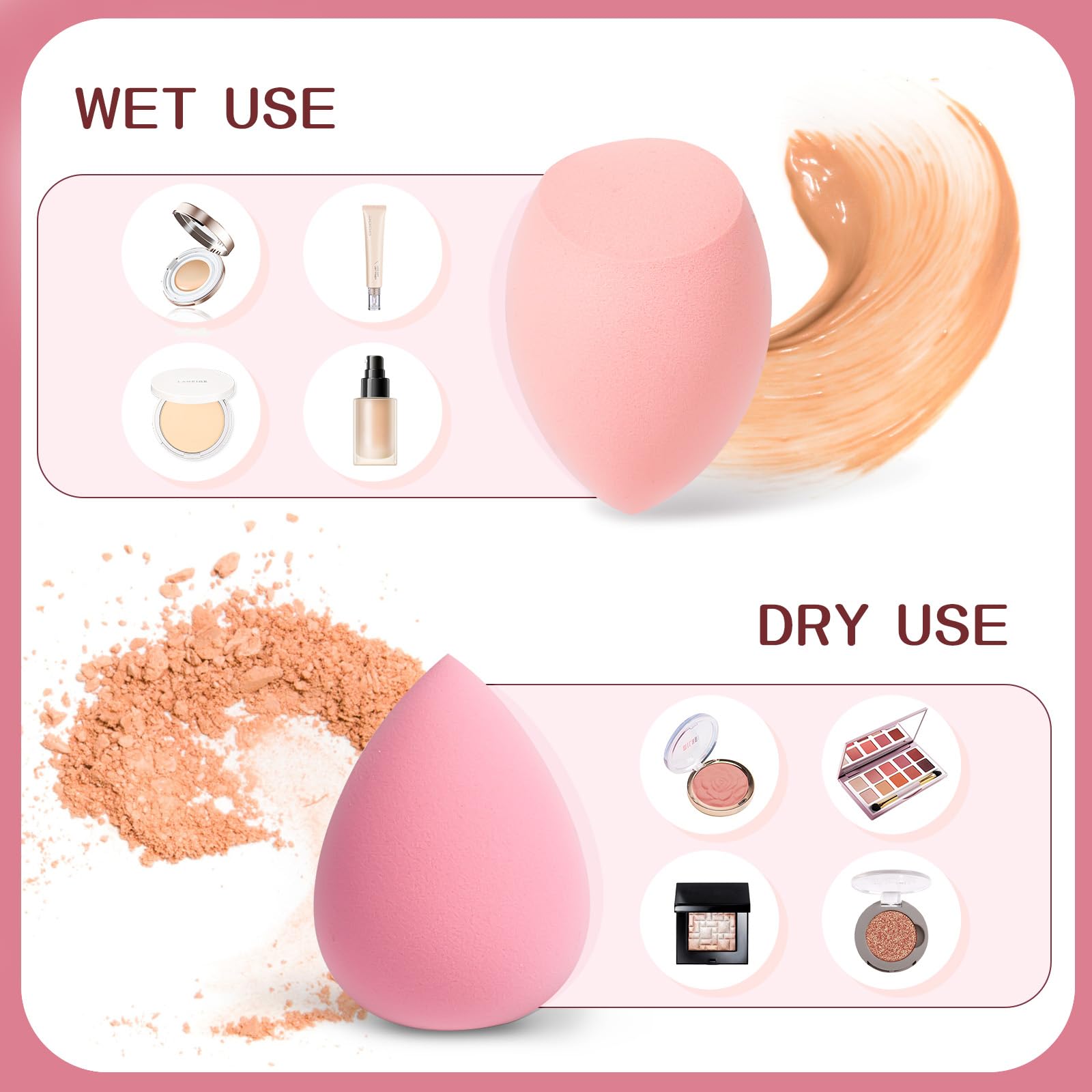 Die AiQInu Beauty Blender eignen sich fuer nahezu alle Kosmetikarten: