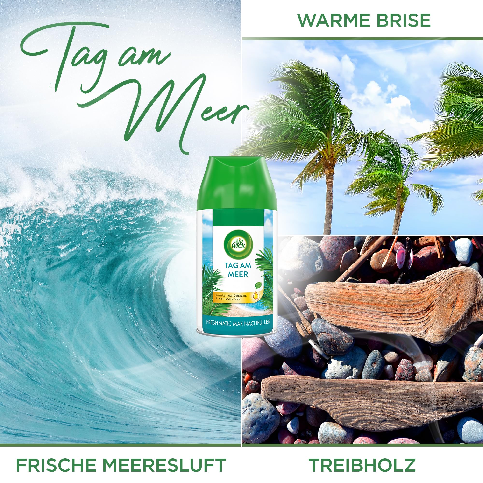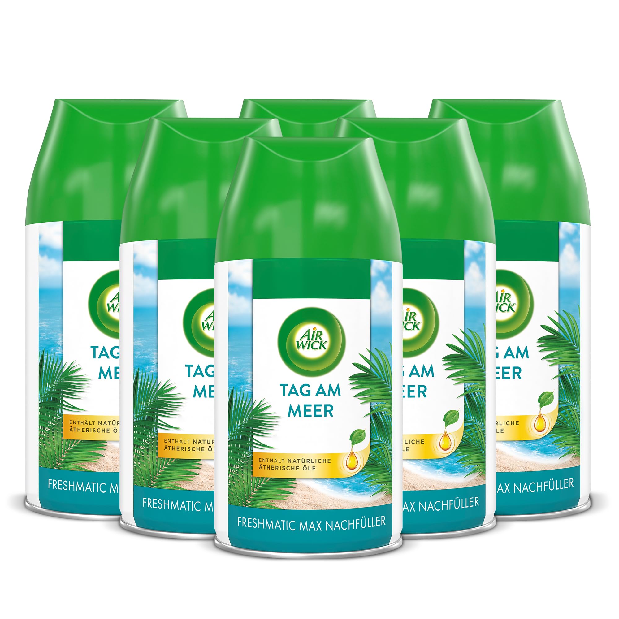 Air Wick Freshmatic Max – Nachfüller Set – Automatisches Raumspray – Raumduft Tag am Meer – 6 x 250 ml Nachfüller