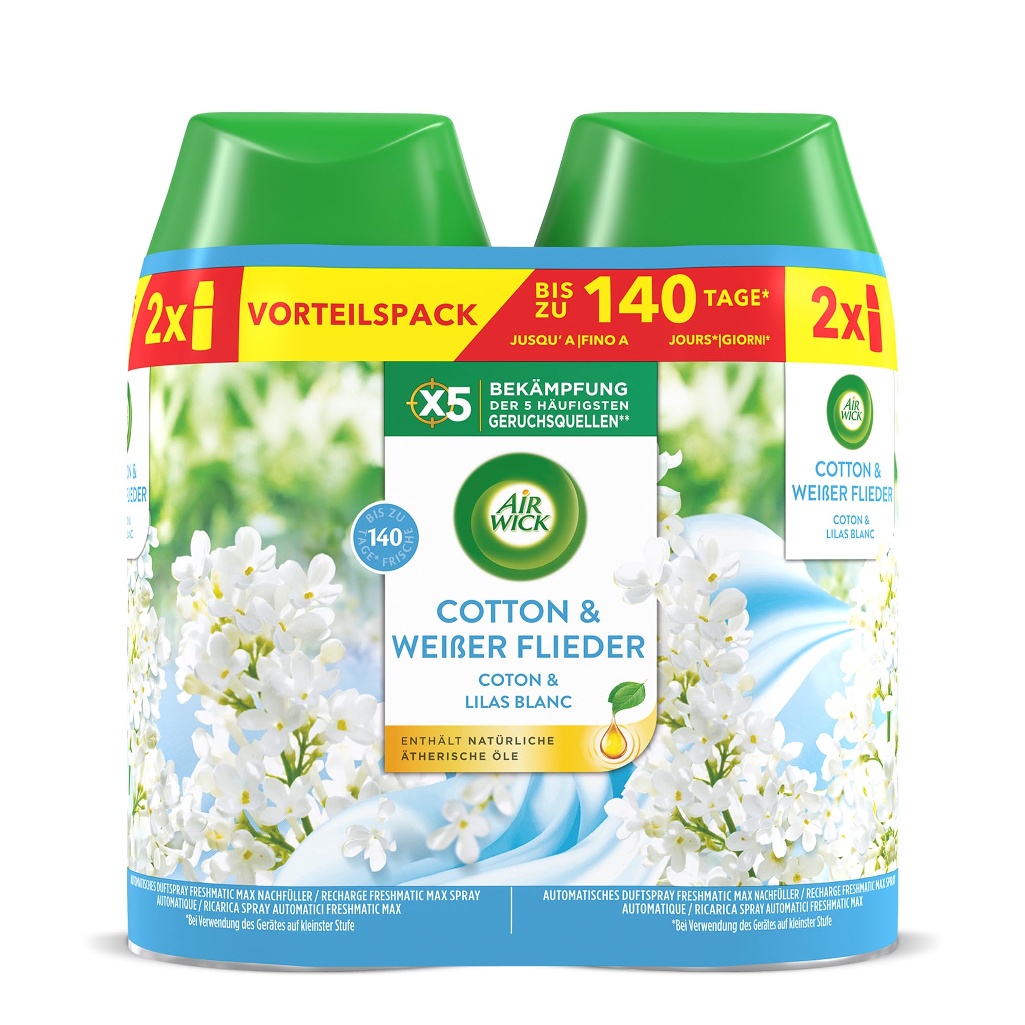 Air Wick Freshmatic Max Raumspray DUO – Nachfüller für den Air Wick Freshmatic Max – Duft: Cotton und Weisser Flieder – 2 x 250 ml Nachfüller Raumduft und Lufterfrischer