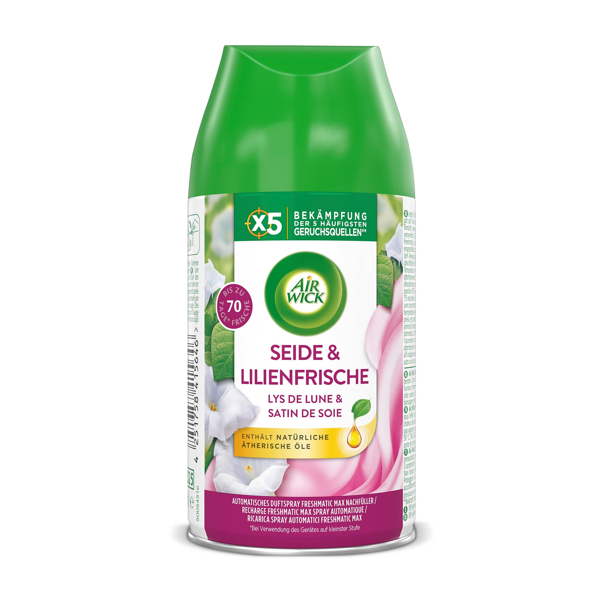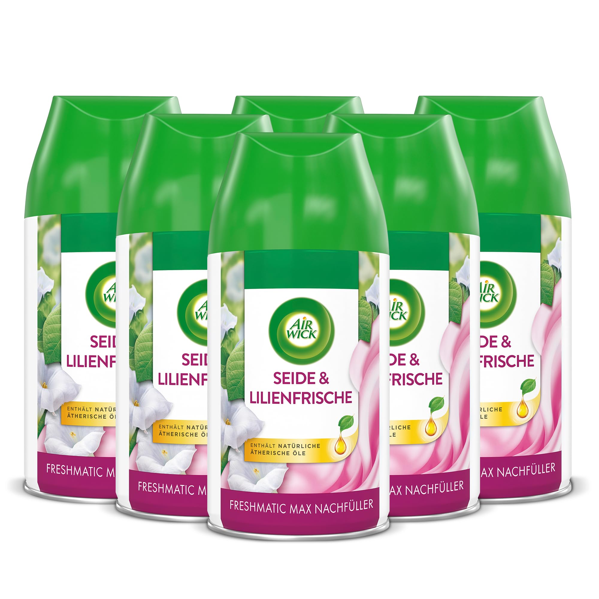 Air Wick Freshmatic Max Raumspray – Nachfüller für den Air Wick Freshmatic Max – Duft: Seide und Lilienfrische – 6 x 250 ml Nachfüller
