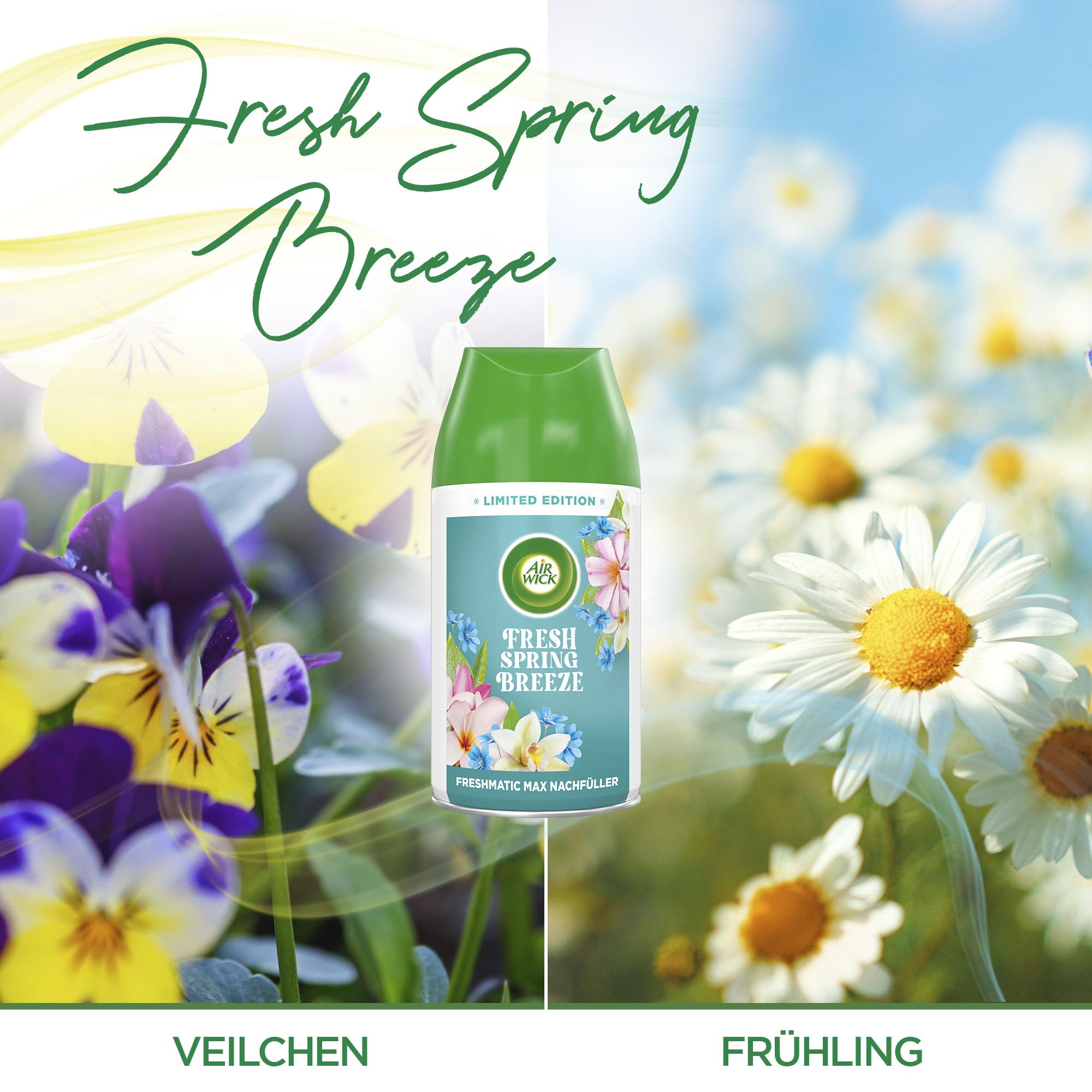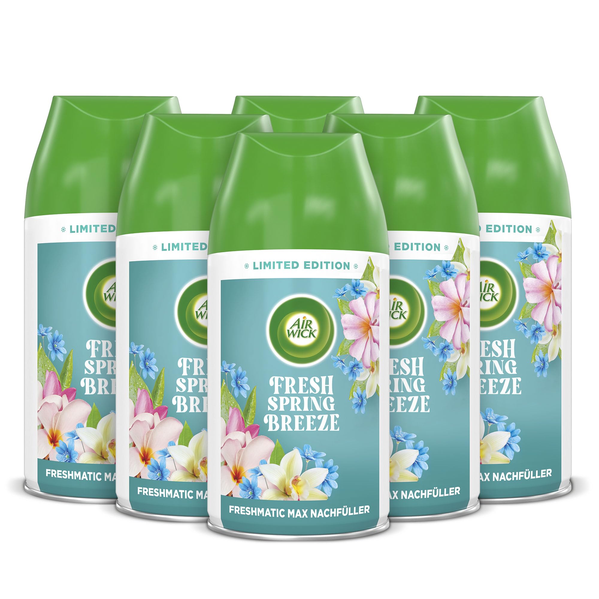 • LIEFERUMFANG: 6 x 250ml Air Wick Nachfüller Raumspray für Air Wick Freshmatic Max / Duft: Fresh Spring Breeze / Mit ätherischen Ölen / Kompatibel mit den meisten handelsüblichen Geräten