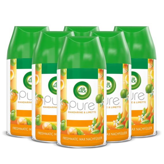 Air Wick Freshmatic Max Raumspray – Nachfüller für den Air Wick Freshmatic Max – Duft: Pure Mandarine und Limette – 6 x 250 ml Nachfüller