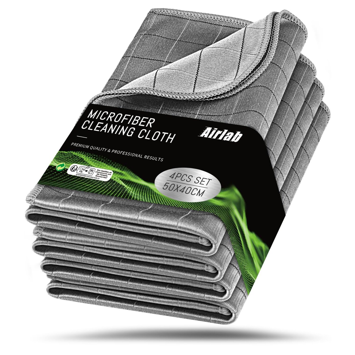 Airlab 4X Mikrofasertuch Carbon Tücher Auto, 50x40 cm Fenstertuch Poliertuch für Kristallklare & Streifenfreie Scheiben, Carbon Mikrofaser Putztücher Glastücher Reinigungstücher, Grau, 400GSM
