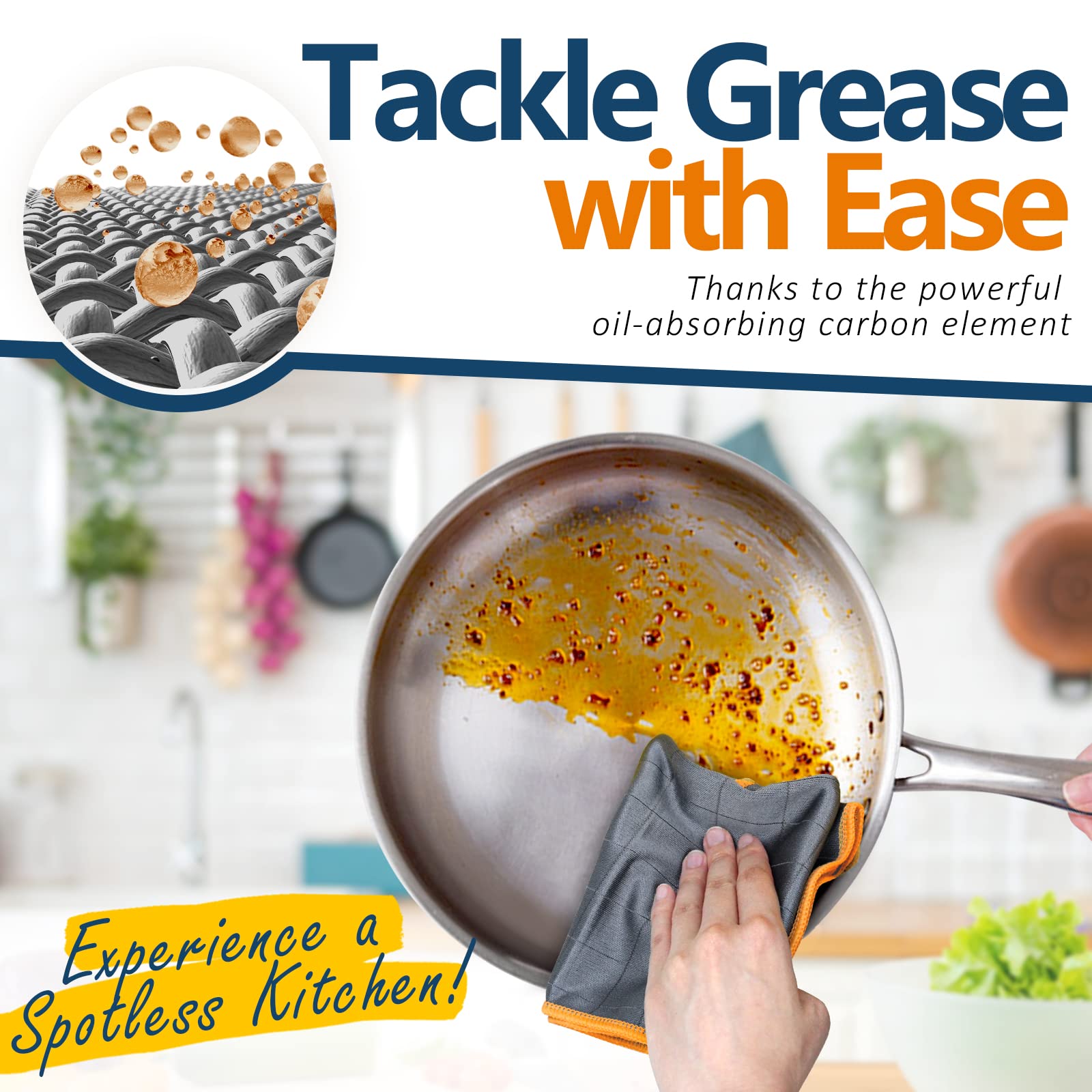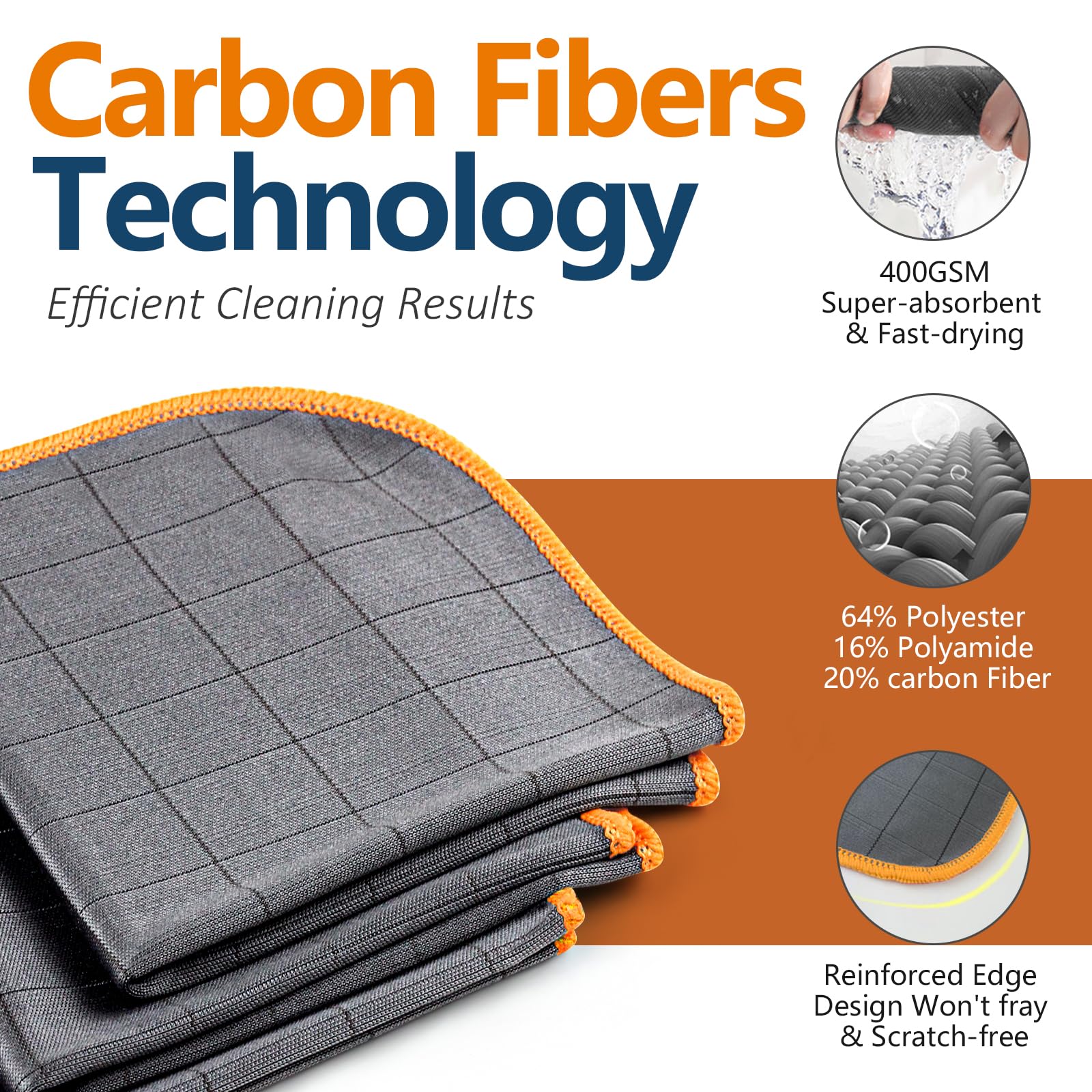 Airlab 3X Carbon Tücher Fensterputztücher, Mikrofasertücher Auto Fenstertuch Streifenfrei, Mikrofaser Putztücher Glastuch Carbon Lappen für Kristallklare & Streifenfreie Scheiben, Orange, 400 GSM