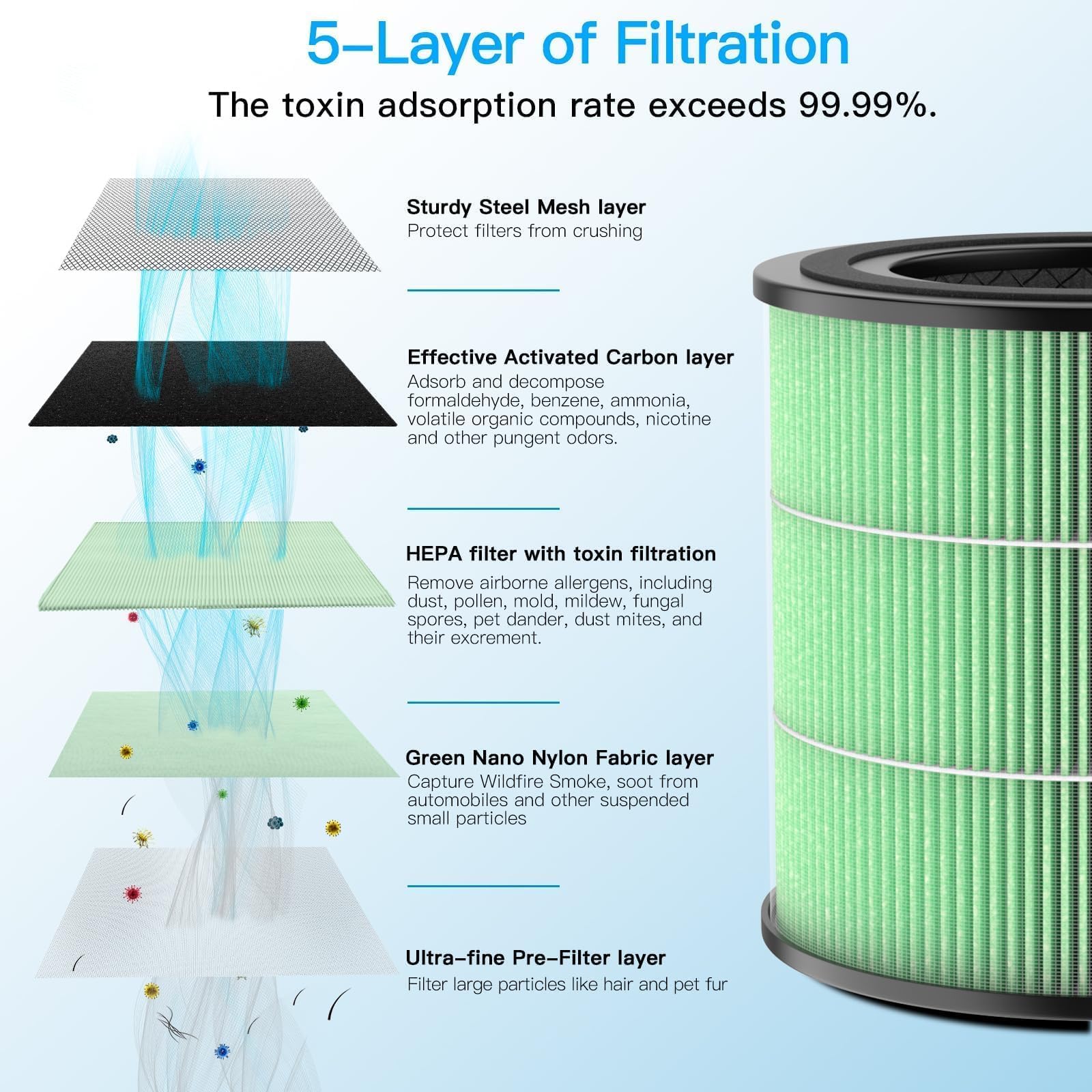 AIRTOK Luftreiniger AP0601 Ersatzfilter 2er Set, 4-Stufiges Filtersystem, H13 True HEPA Filter (Nur für Luftreiniger AP0601)