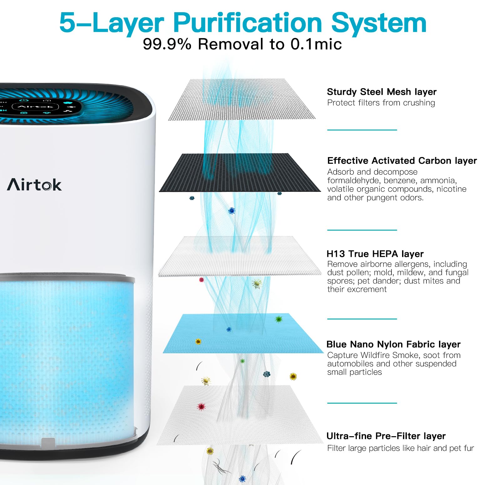 AIRTOK Luftreiniger AP1001 Ersatzfilter, 5-Stufiges Filtersystem, H13 True HEPA und Aktivkohlefilter (nur für Luftreiniger AP1001)