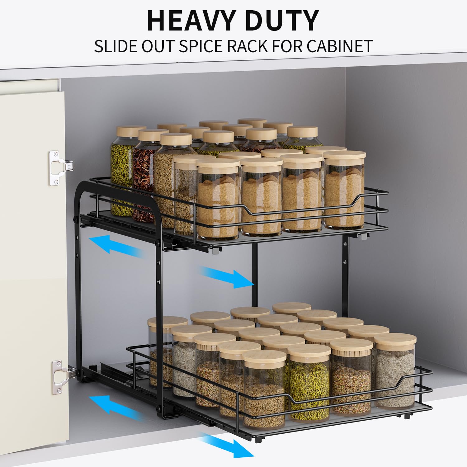 AIRUJIA Gewürzregal Ausziehbar, 2 Etagen Spülschrank Organizer, Gewürzregal Schrank, Spice Rack, Anhebbares Waschbecken Regal, Gewürz Organizerfür Für Küche, L26.4*B23.2*H23CM