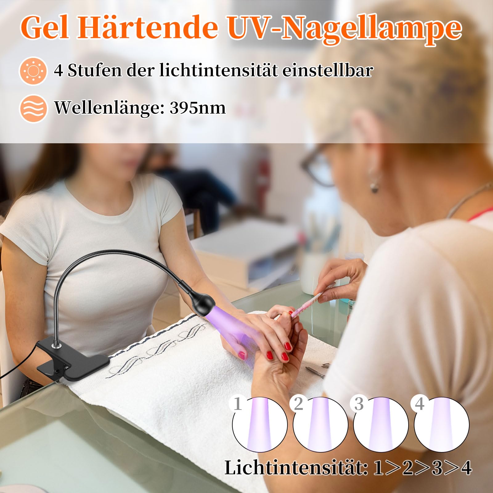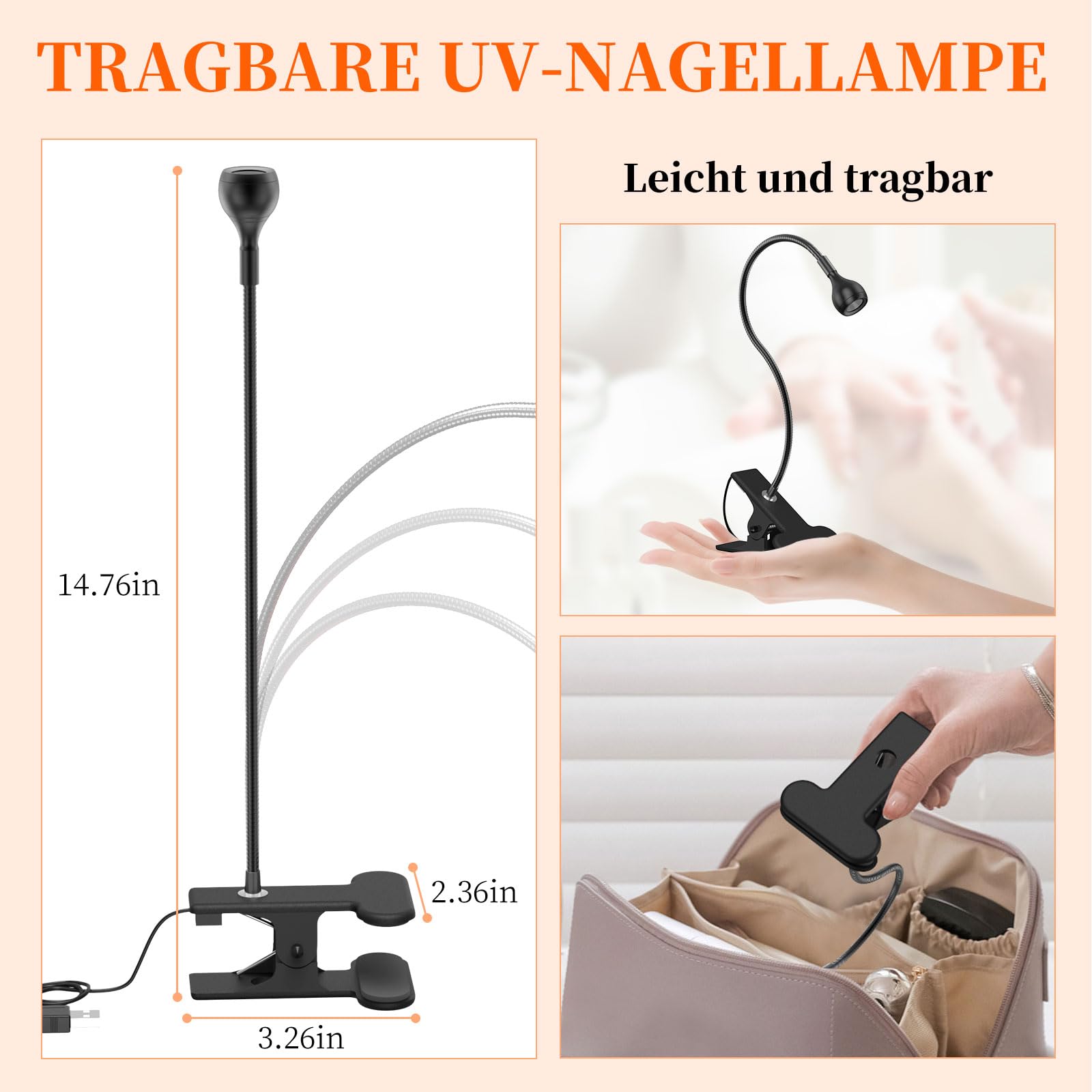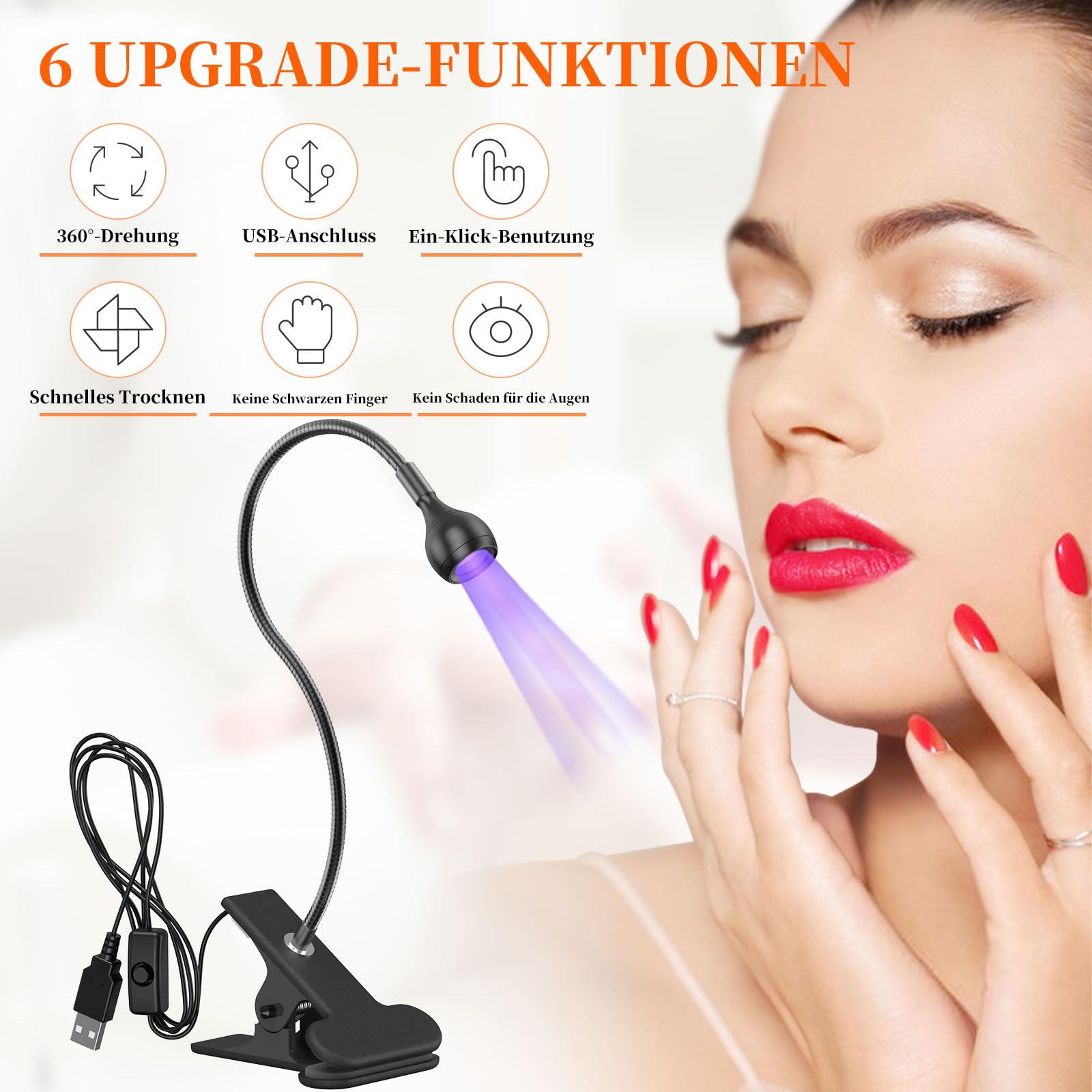 Die AISEELY UV Nagellampe mit 3 W Leistung ist ein kompakter und praktischer Nageltrockner, der speziell fuer Anfaenger und den privaten Gebrauch entwickelt wurde. Dank der drehbaren UV-LED-Lampe, der USB-Stromversorgung und der integrierten Klemme eignet sich diese UV-Lampe ideal zum Haerten von Gelnaegeln zu Hause oder unterwegs.