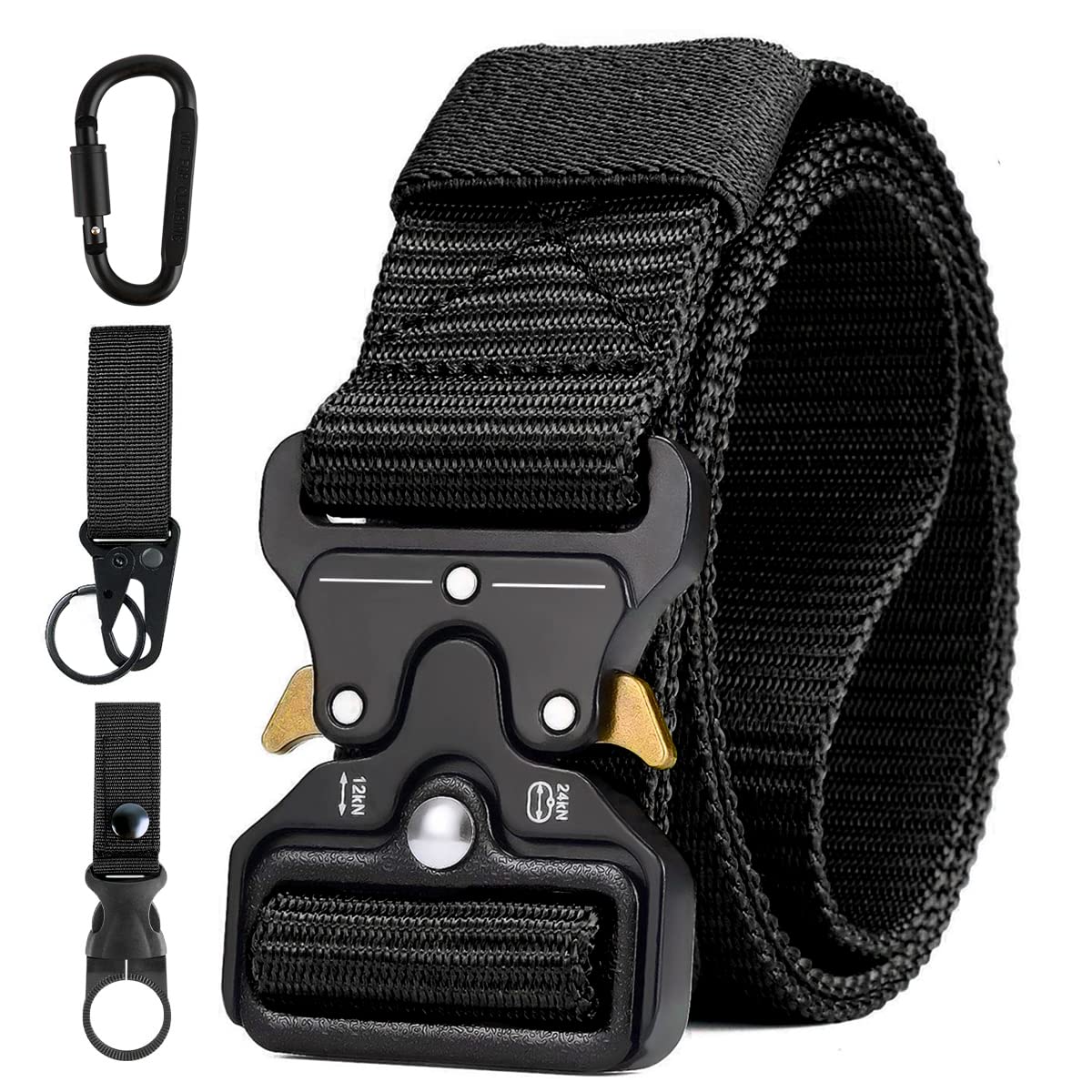 - ????♂️【Hochwertiges Nylon】Der Tactical Gürtel aus hochfestem, schnell trocknendem, umweltfreundlichem 1000D-Nylonmaterial. Es ist atmungsaktiv und sehr bequem für den täglichen Gebrauch.Geschenk mit 1 Schlüsselanhänger, 1 wasserflasche schnalle und 1 Karabiner