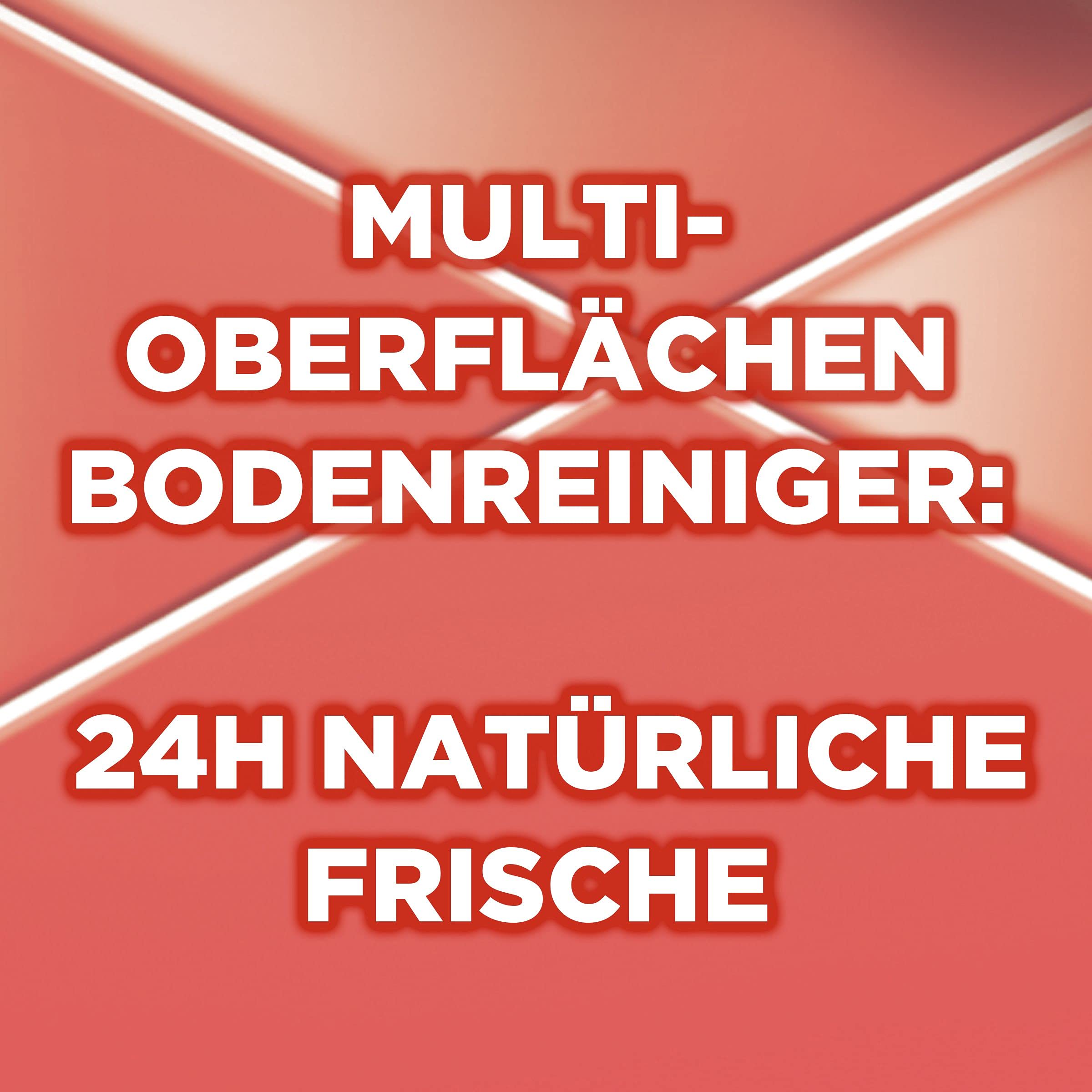 Bringen Sie mit dem Ajax Fête des Fleurs Hibiskusblüten Allzweckreiniger den verführerischen Duft von Hibiskus auf jede Oberfläche Ihres Zuhauses. Dieser Multi-Oberflächen-Reiniger wurde mit Hibiskusölen angereichert und sorgt 24h lang für natürliche Frische. Der Ajax Allzweckreiniger hat eine neue Formel, die für Ihr Zuhause wirksamer ist und schont selbst empfindliche Oberflächen wie Marmor oder Keramik. Der Ajax Hibiskusblüten Allzweckreiniger kommt in einer neuen Flasche, die aus recyceltem Plastik hergestellt ist. Flasche und Verschluss sind recycelbar und die Formel ist zu 90Prozent biologisch abbaubar. Sie können sich sicher sein, dass Ajax rücksichtsvoller mit unserem Planeten ist und sich mit Ihnen weiterentwickelt, wenn Sie sich um die kleinen Verschmutzungen des Lebens kümmern.