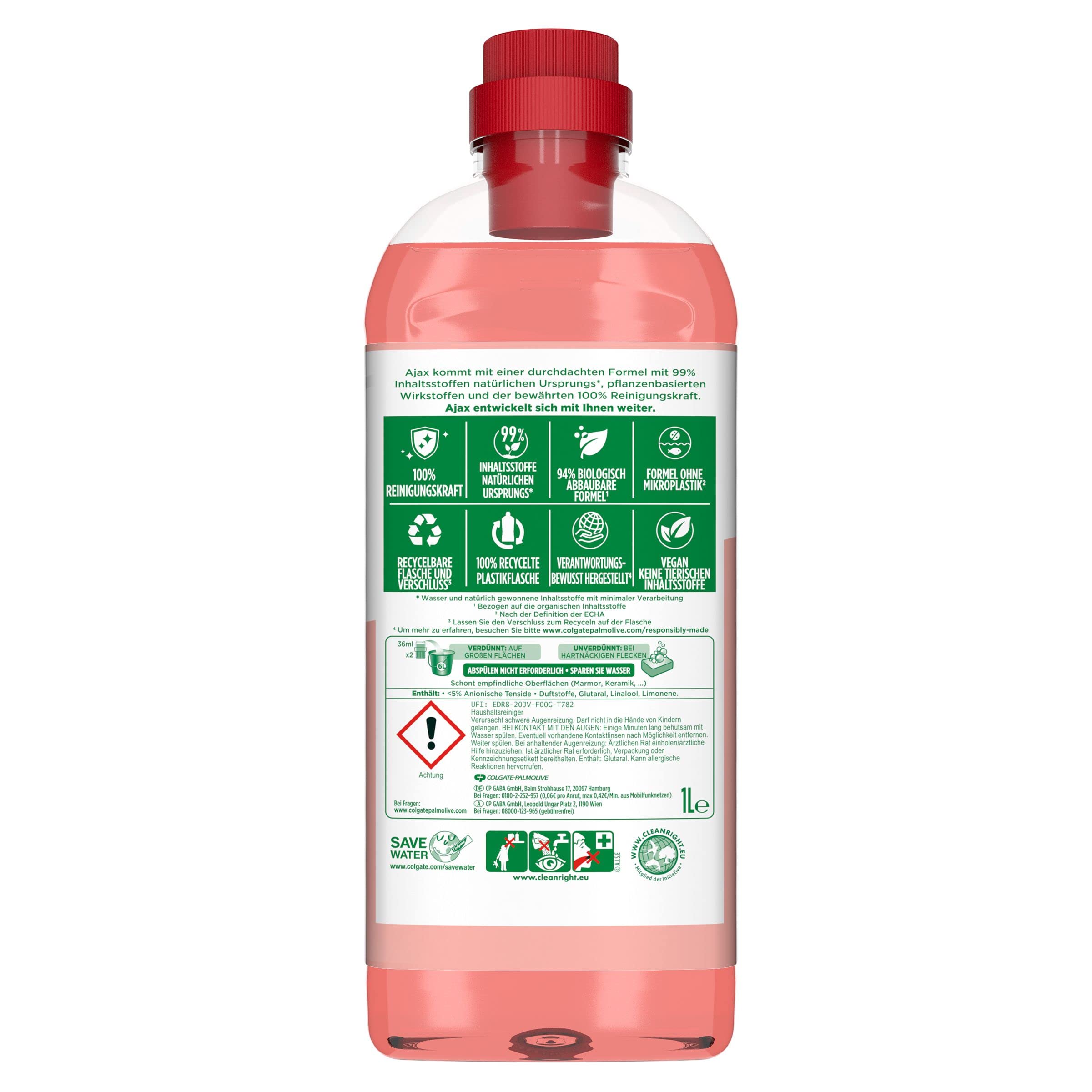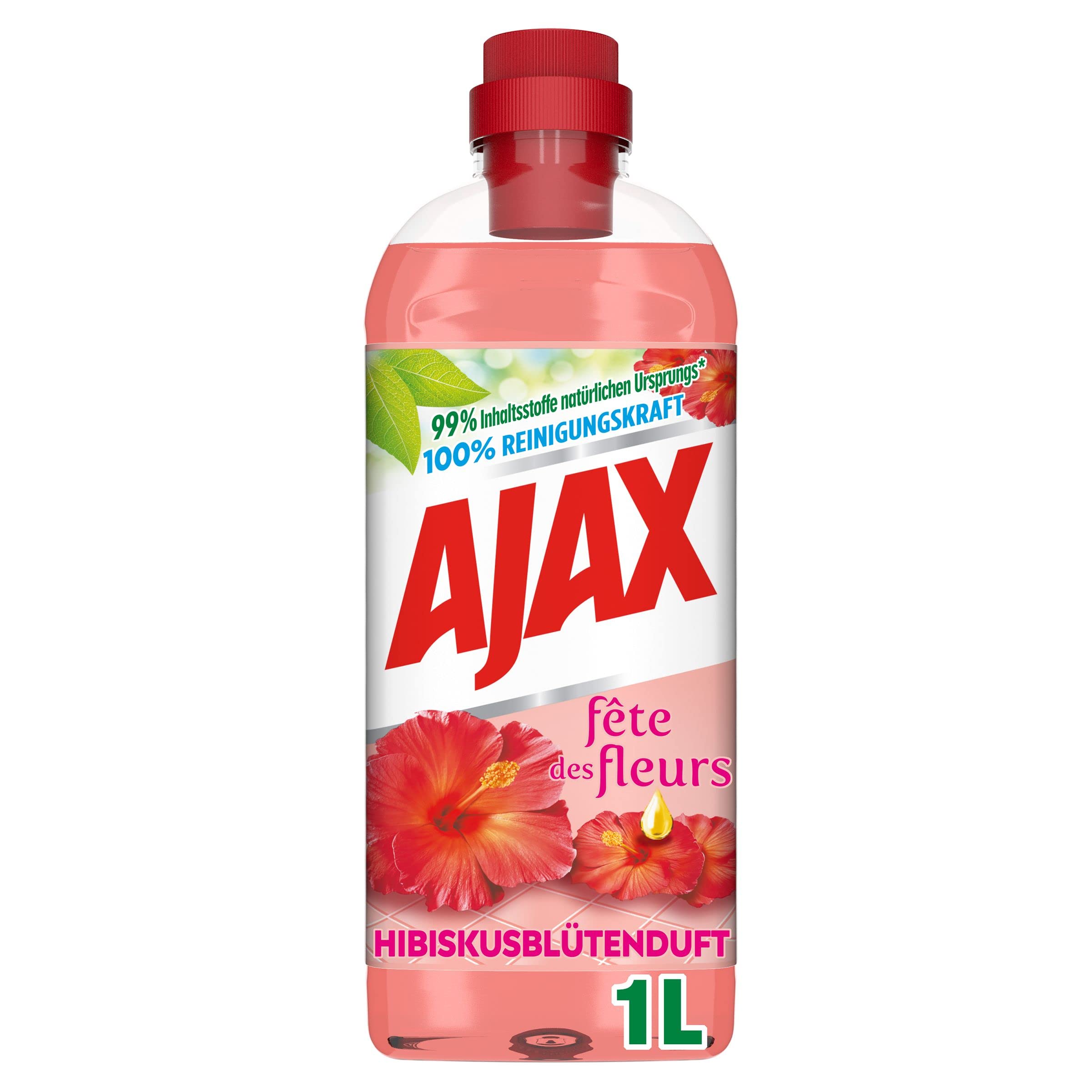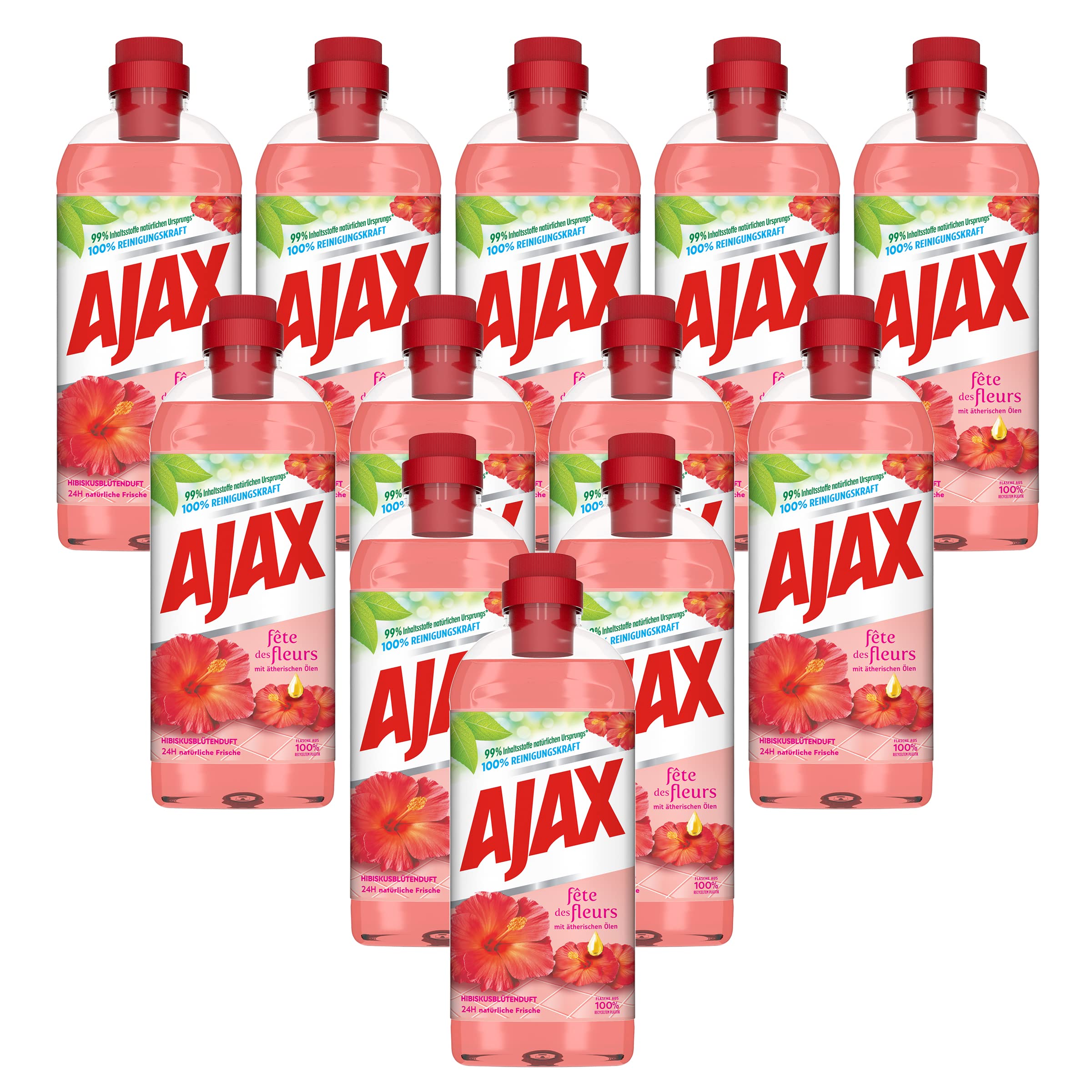 Ajax Allzweckreiniger Hibiskusblütenduft 12 x 1L - Multi-Oberflächen-Reiniger mit ätherischen Ölen