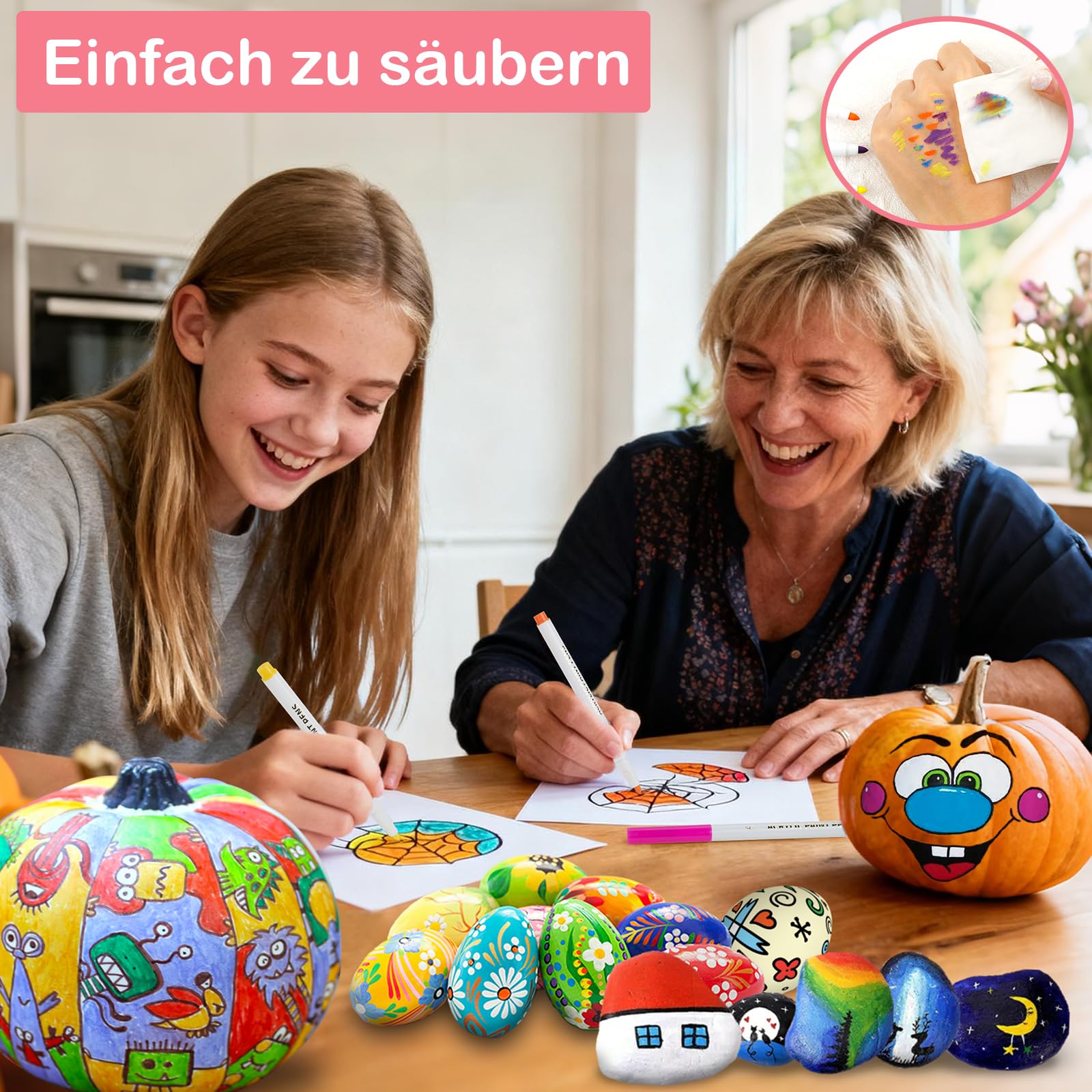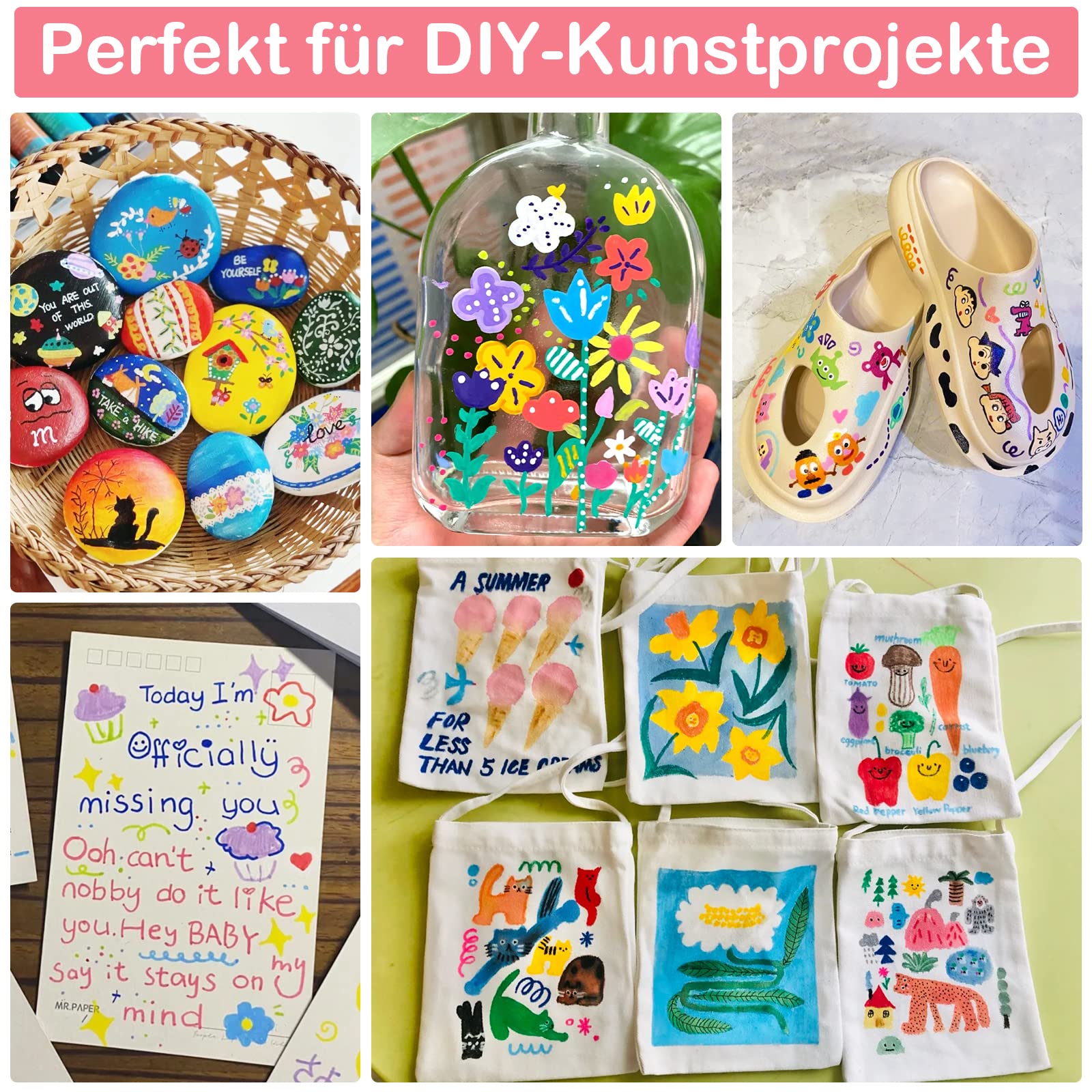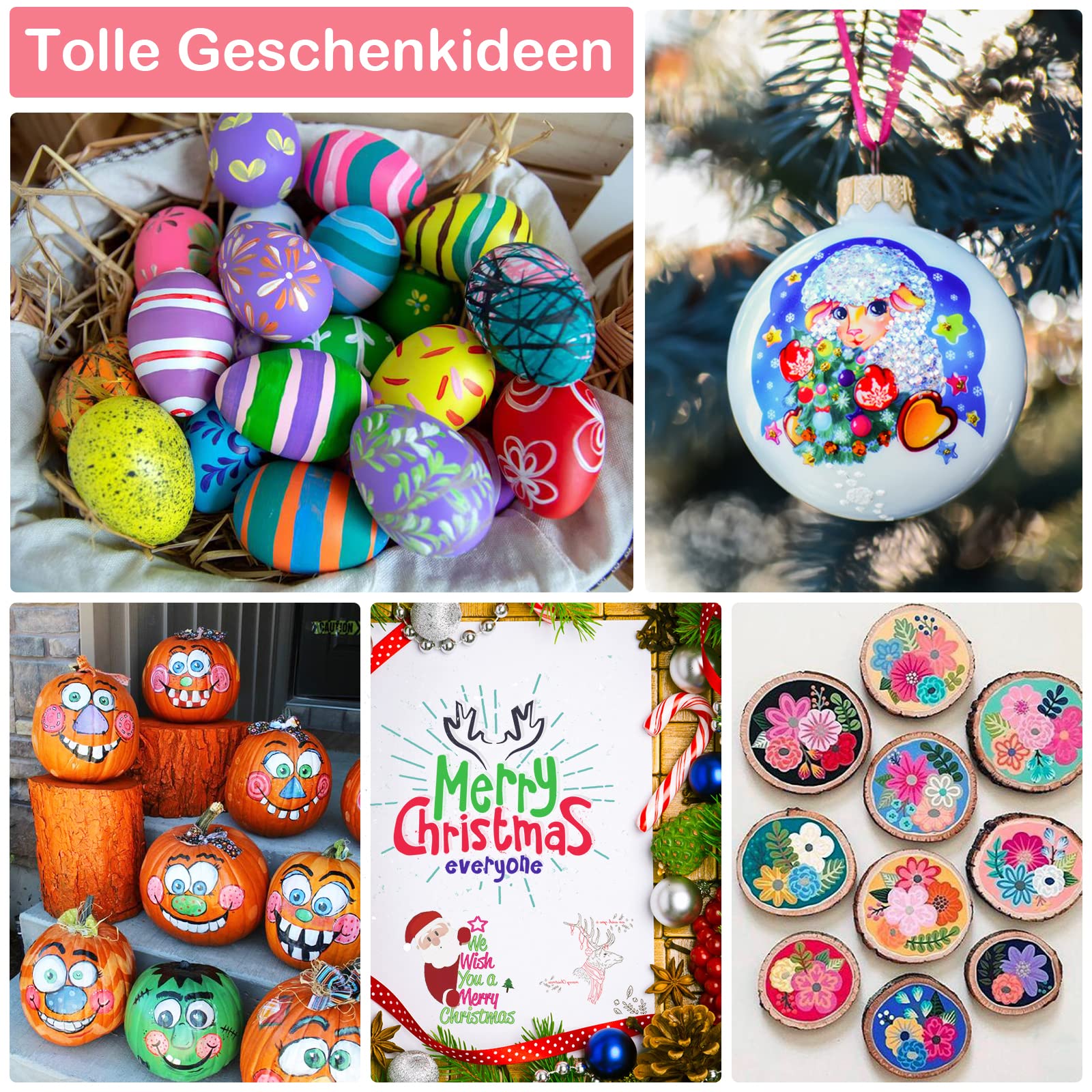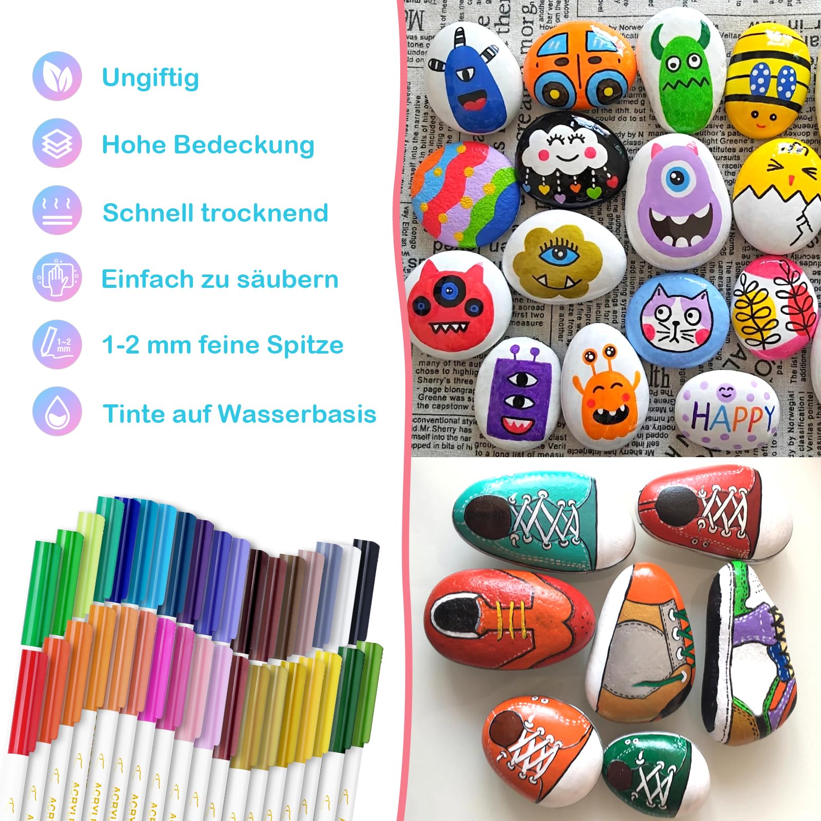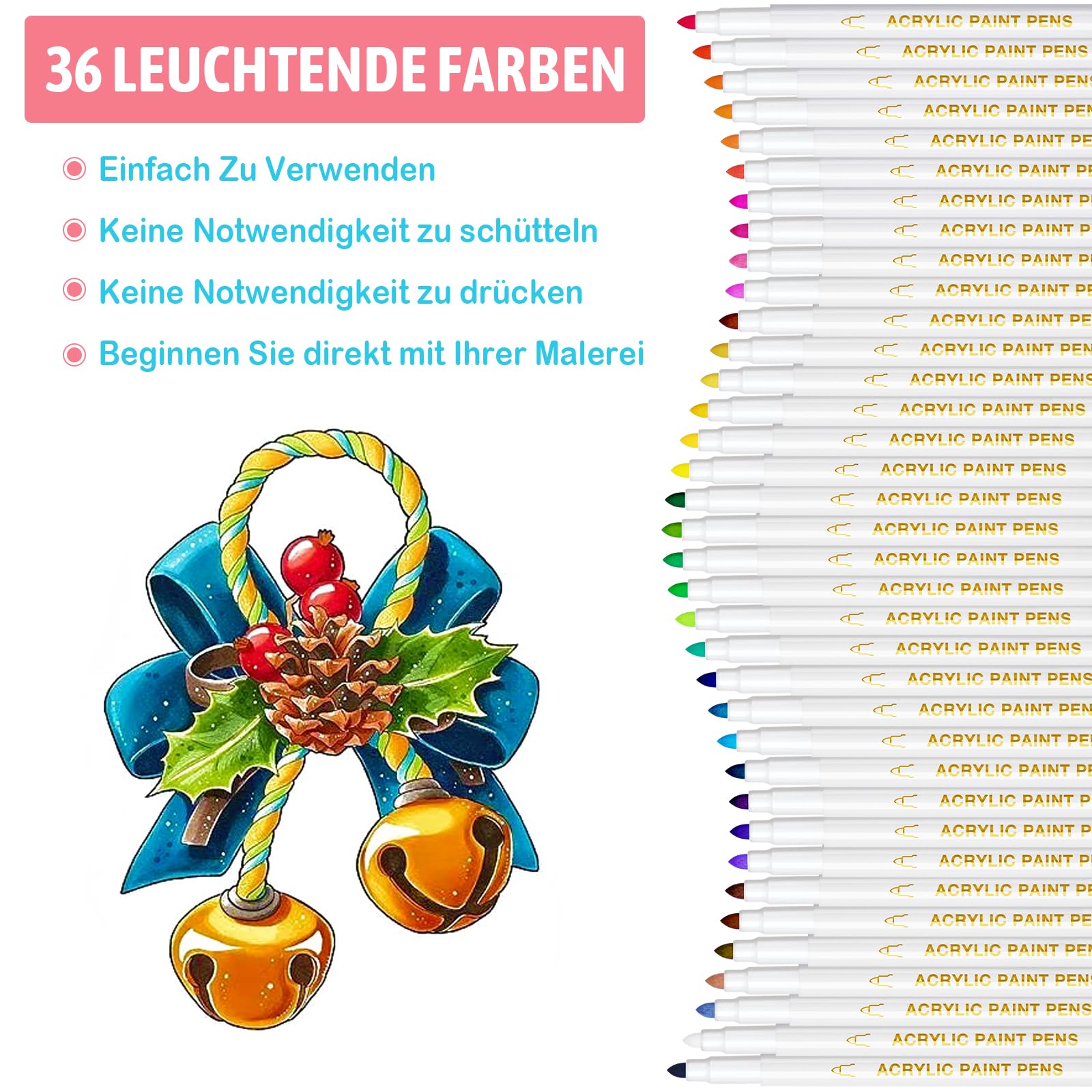 AKARUED 36 Farben Marker Acrylstifte, Acrylfarben Stifte für Holz Glas Papier Leinwand Geschenkekarte DIY Fotoalben Ostereier Deko Kunststoff Stoff Becher, Steine bemalen Set
