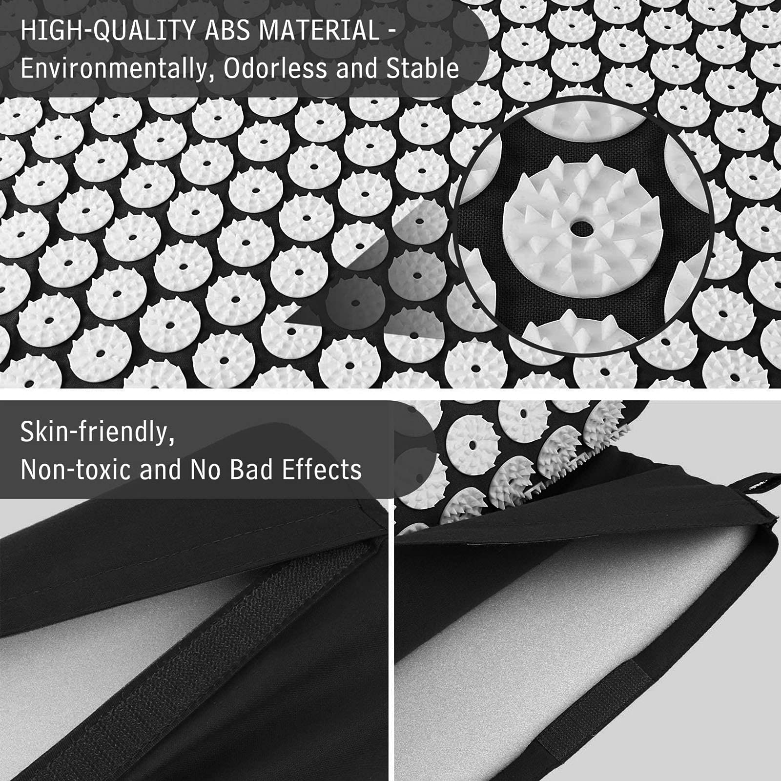 Angelkiss Akupressur-Set Akupressurmatte mit Kissen zur Wohltuenden Entspannung und Massage, Linderung von Rückenschmerzen Kopf-Nackenschmerzen, Stress Schlafstörungen zu Hause, ins Büro, Schwarz-Weiß