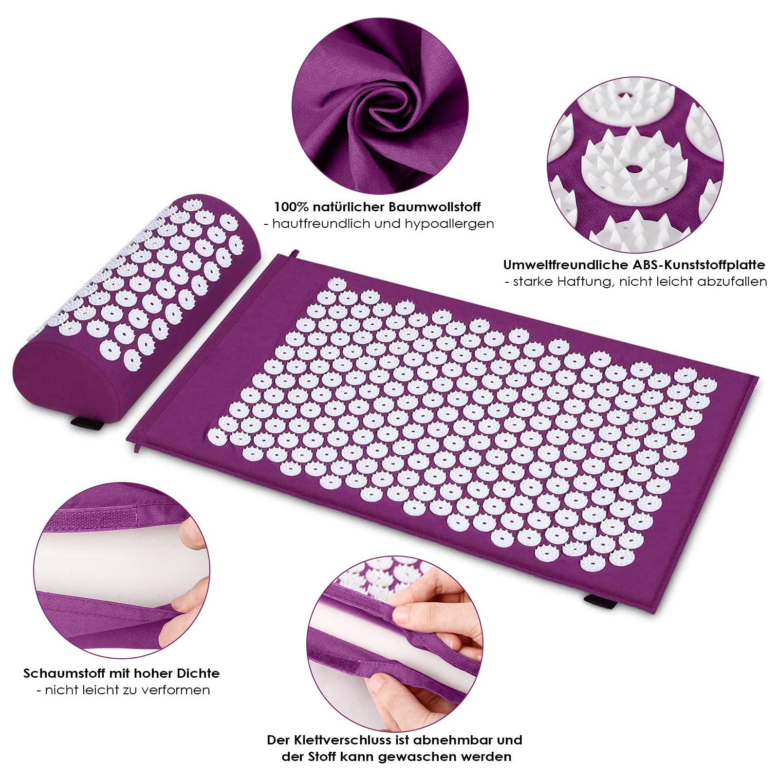 Akupressur Set,Akupressurmatte mit Kissen gegen Nacken und Rückenschmerzen,Magnetfeldtherapie und Akupressur zur mit einer Tragetasche,Akupressur Massagematte ideal für Frauen und Männer geeignet