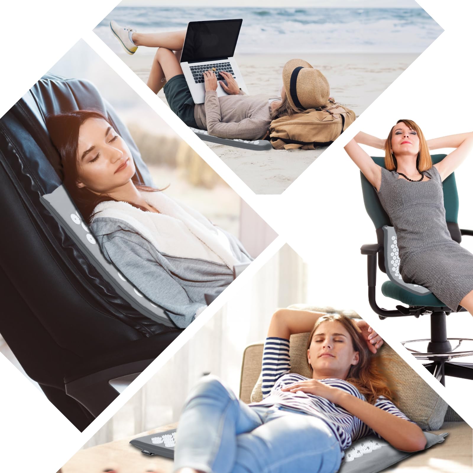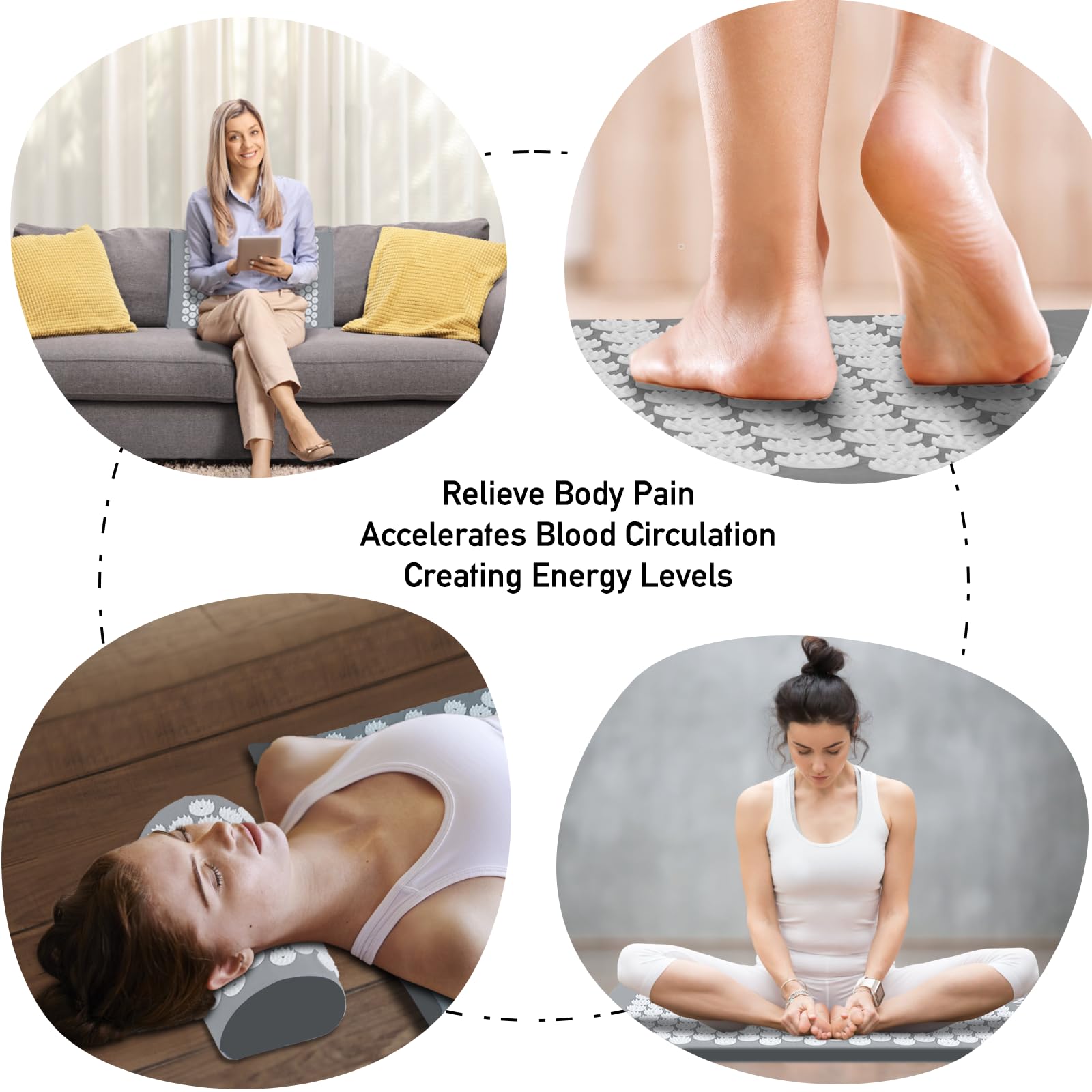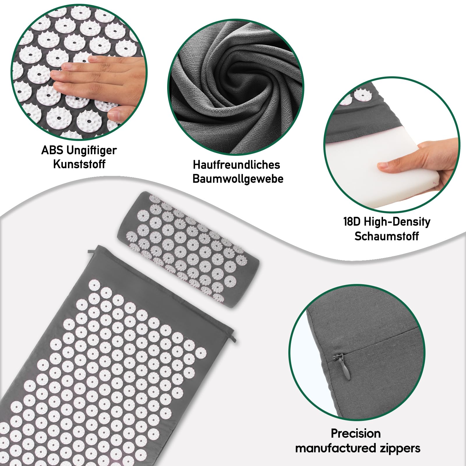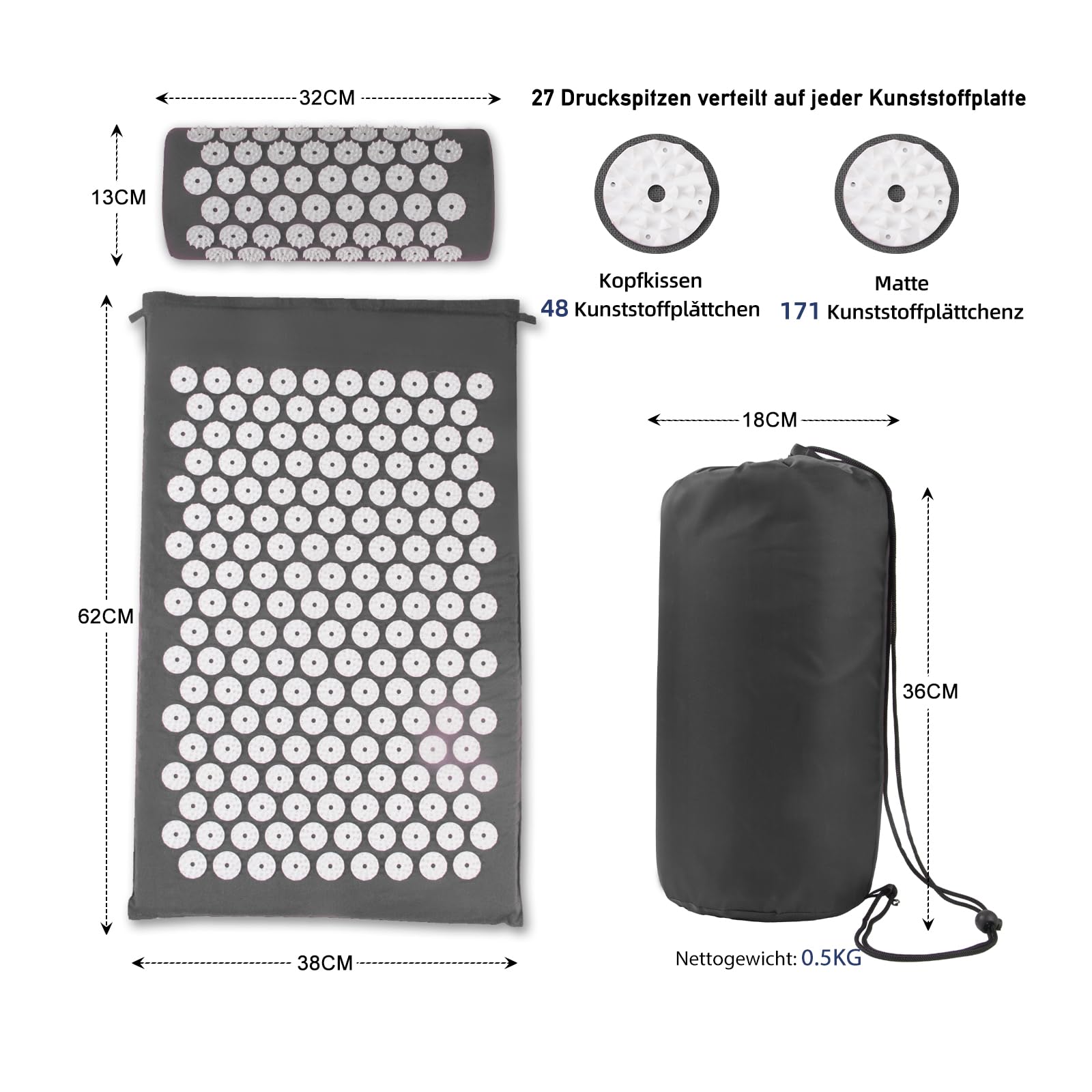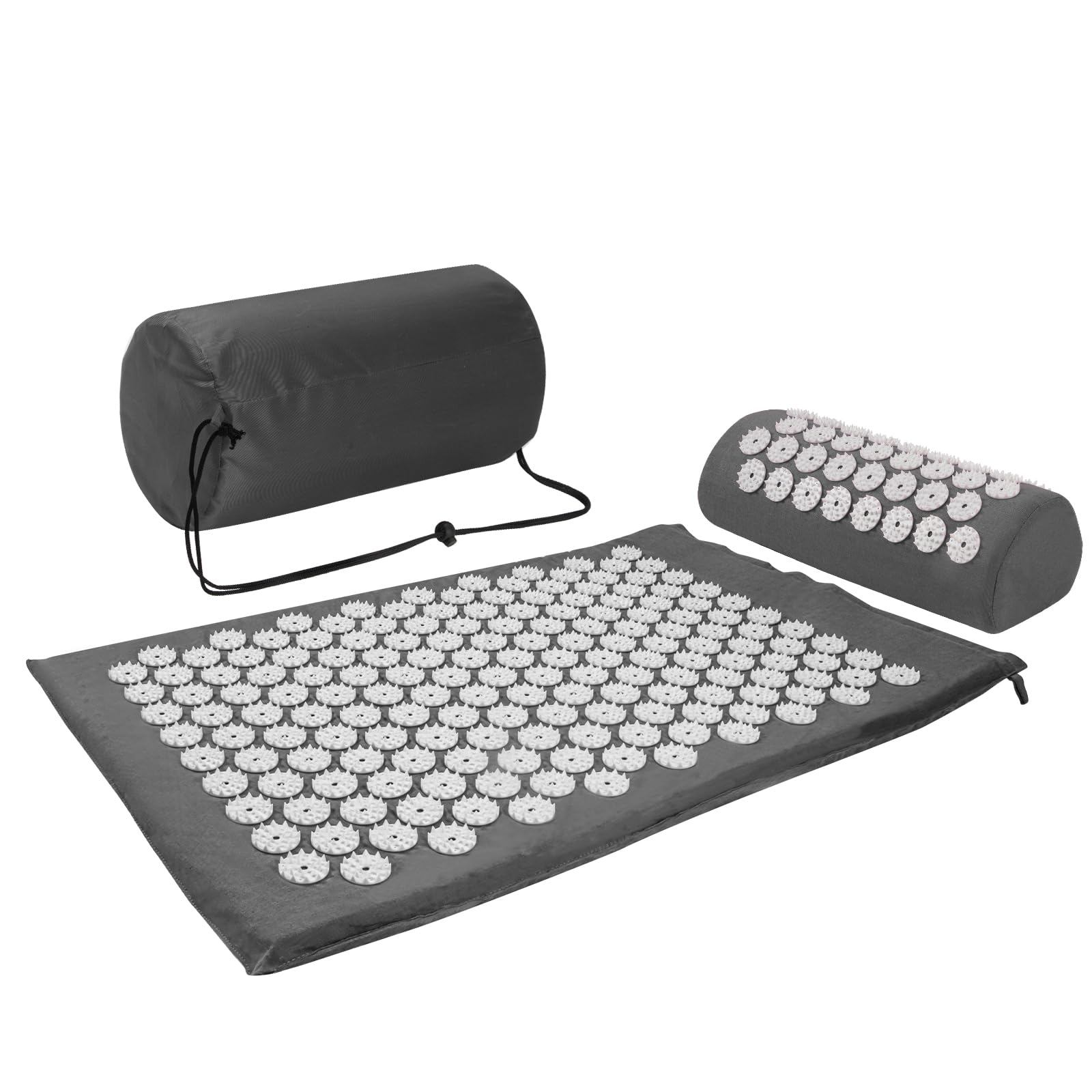 Akupressurmatte, Akupunktur matte, Akkupressmatte mit Kissen, Akkupressurmatte, Massagematte, Acupressure mat, Nadelkissen, Matte mit Stacheln, Akupressurmatte Rücken, Akupressure Set Gray